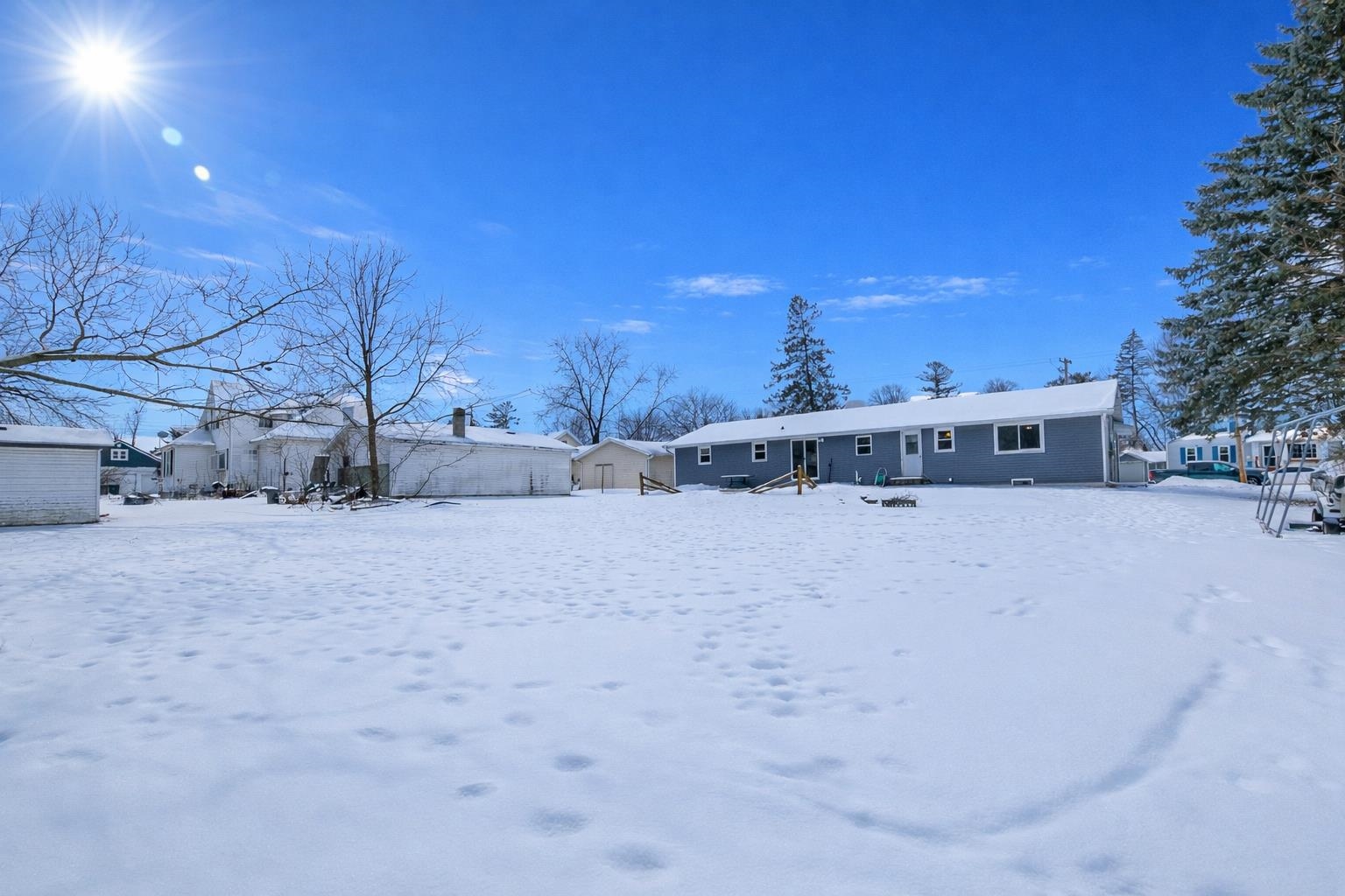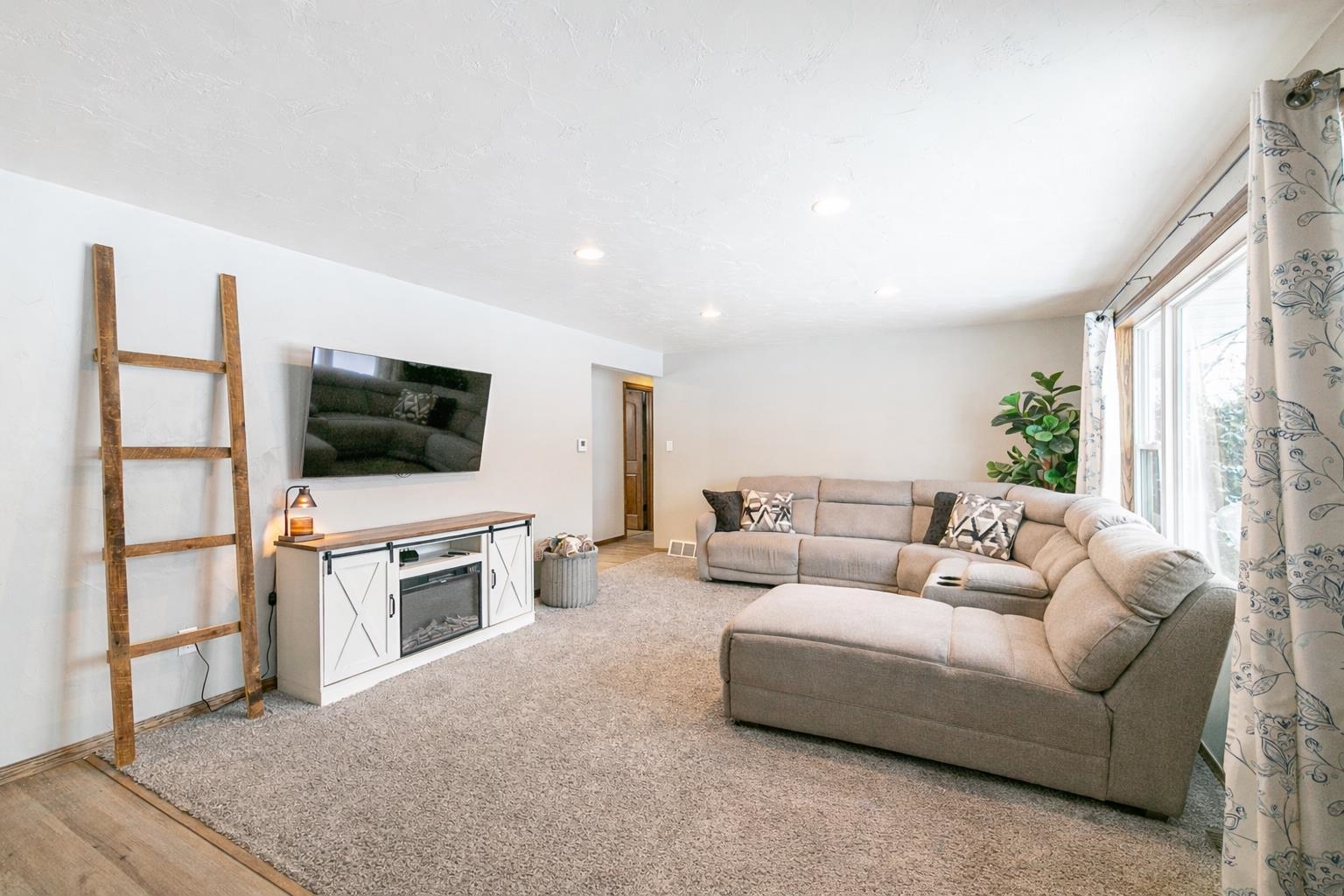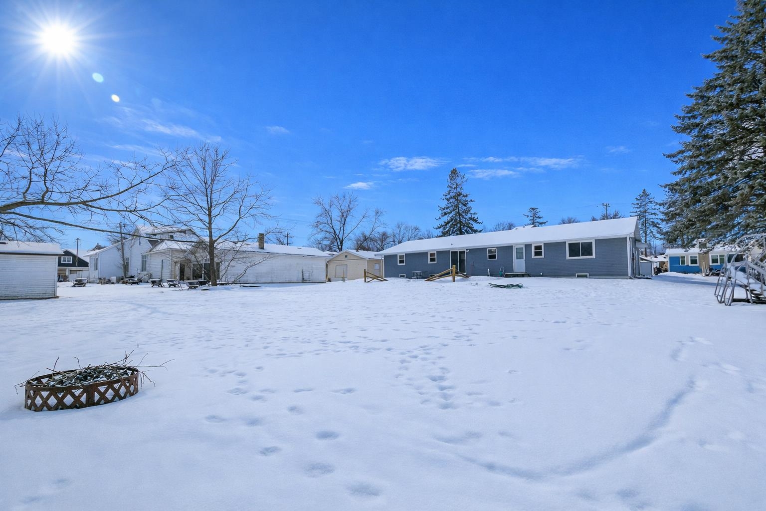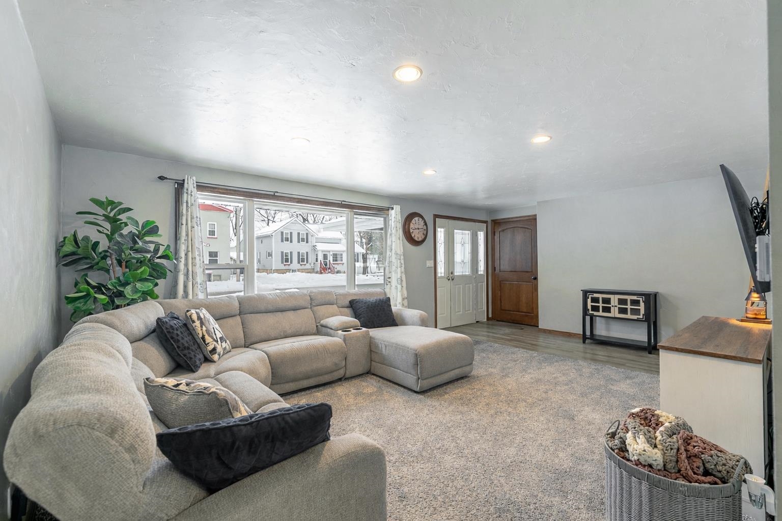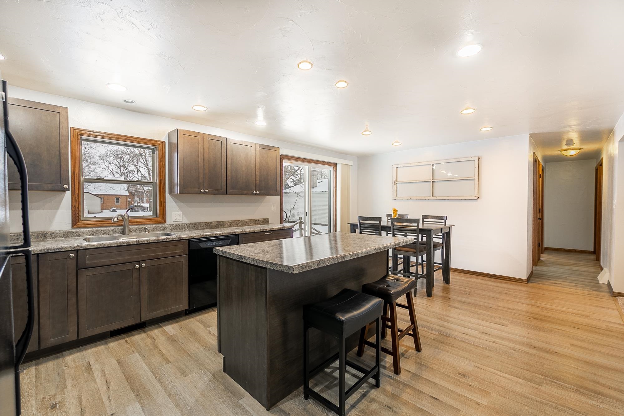 Move-in ready and thoughtfully updated ranch offering 4 bedrooms and 1,700 sq ft on a spacious .38-acre lot. Desirable split-bedroom layout, designed for comfortable everyday living. Kitchen updated in 2018 with modern finishes and plank flooring, plus walk-in pantry. Full bath updated in 2019. Sliding patio door off dining area and second exterior door near the half bath provide backyard access. Lower level includes partially finished space with dry bar and built-in entertainment area. Extra-deep backyard features concrete patio (2016), fire pit, and invisible fencing. Attached 2-stall garage plus additional parking alongside. Siding and roof replaced in 2016; windows and HVAC updated in 2009. Conveniently located near schools and community amenities.