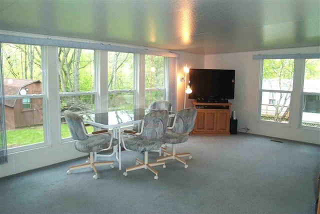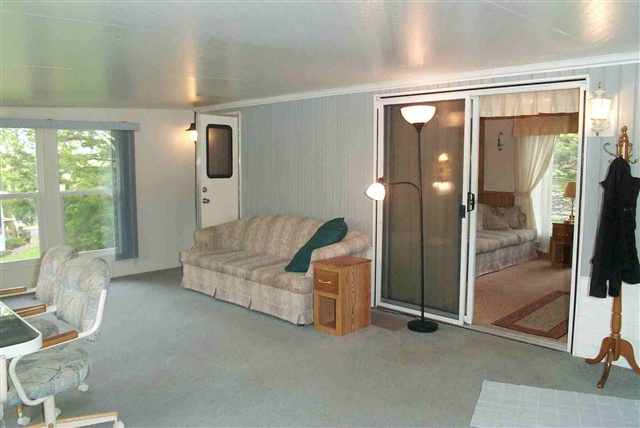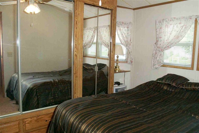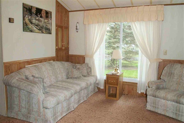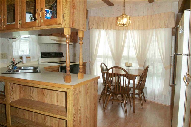 Large wooded well landscaped lot backing to greenspace! Great privacy!! Located on a convenient double driveway for parking & ease of entry. Newer 732 sq/ft home offers an eat-in kitchen, living rm w/built-ins & huge family rm w/cathedral clgs & wall of windows to enjoy wooded bkyrd viewing. Many built-ins for ample storage. C/A & surround sound. Very well insulated! Lrg shed w/golf cart & mower storage. Close to golf course, 2 outside pools, tennis courts & fishing pond. New "on-demand" hot water heater!