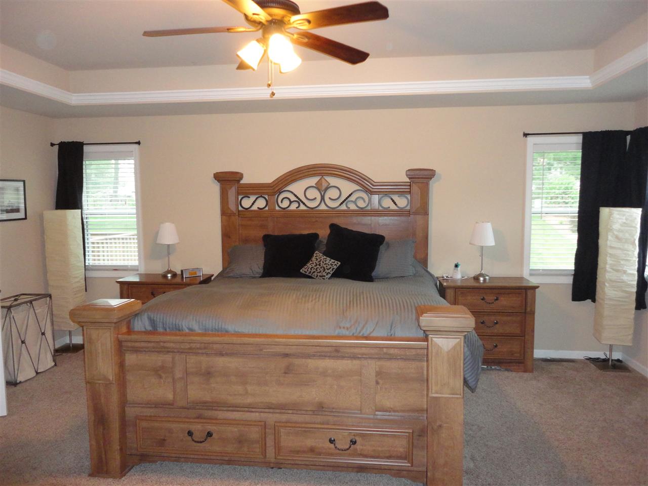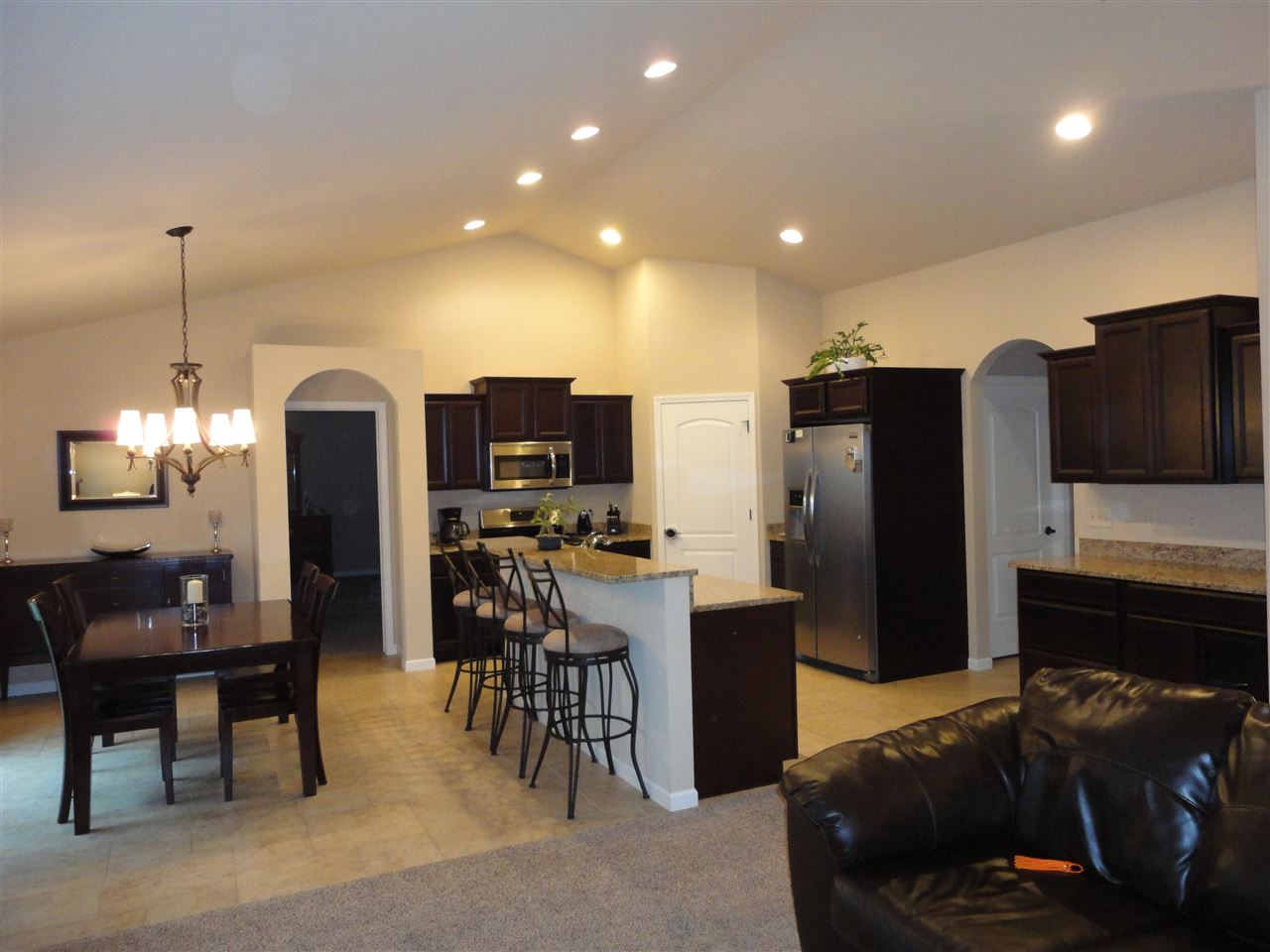 JUST LIKE BRAND NEW. Impeccable & loaded with upgrades. Open floor plan, vaulted ceilings, can lights, painted trim, stone FR with TV mount, huge kitchen island, walk-in pantry, solid surface counters & so much more. Master has tray ceiling, walk-in closet, double vanity, step in tiled shower, 2 shower heads, no shower door needed. Split bdrm design. LL offers large family room, bedroom, full bath, tons of storage & access to the garage. Cedar deck! The list goes on. Attention to details. Sure to impress!