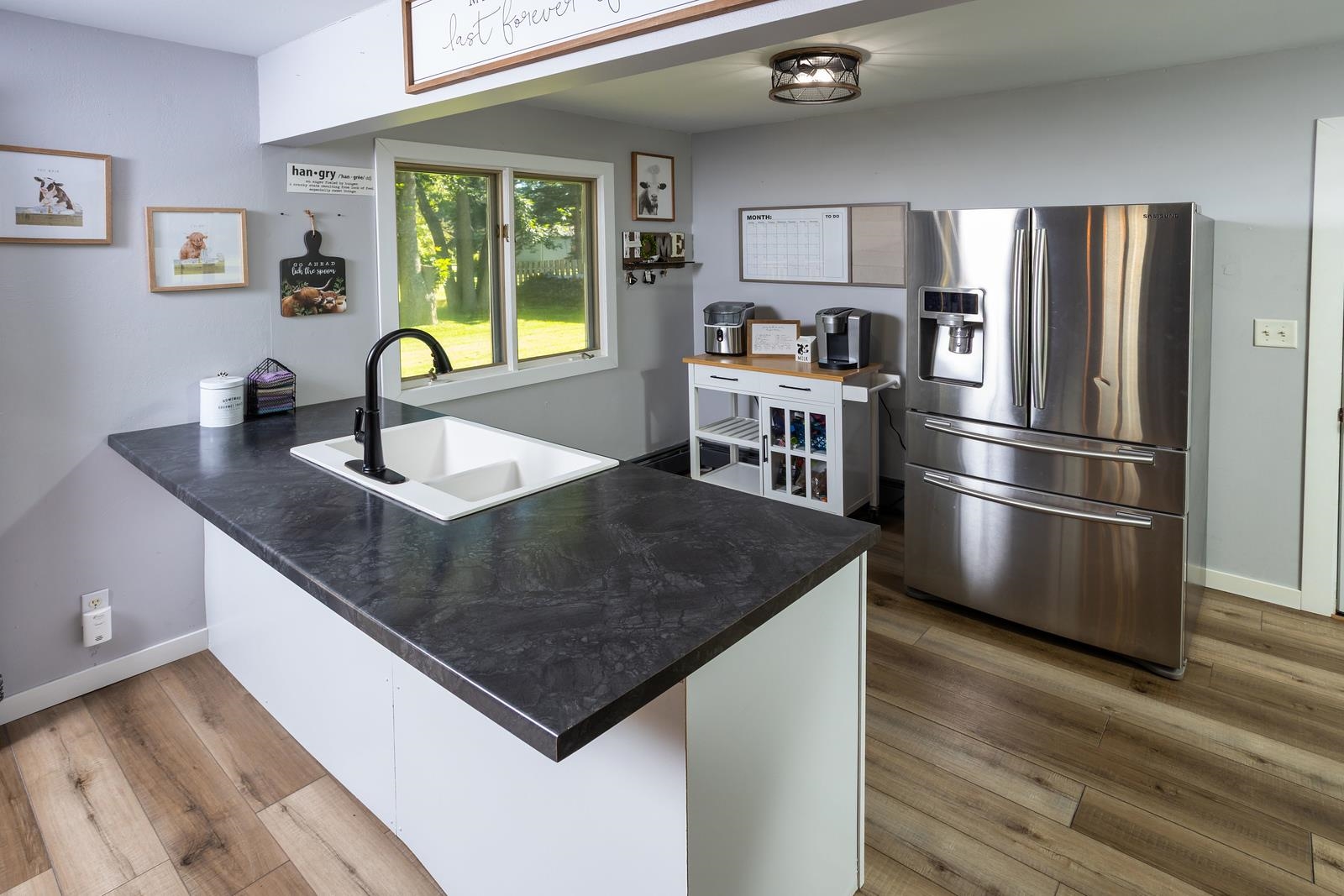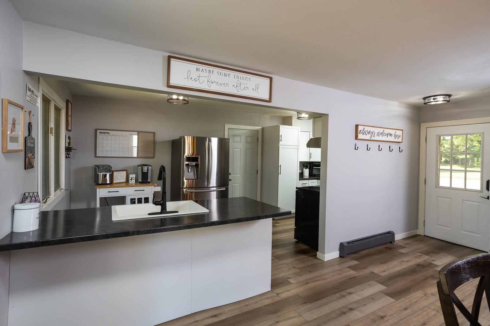 Discover comfort and style in this beautifully updated 3 bedroom, 1 bath ranch home perfectly situated on a generous .28 acre lot per assessor. Step inside to find a bright, open-concept layout featuring newer LVP flooring, trim and refinished interior doors that add a modern touch throughout. The kitchen has been thoughtfully remodeled, and the bathroom has been tastefully updated to match. Enjoy seamless indoor-outdoor living with a large deck in the backyard ideal for relaxing, entertaining, or taking in the peaceful surroundings. The heated 2-stall attached garage provides ample space for vehicles, tools, and toys. The adjacent gravel parking pad offers convenient extra storage for trailers, boats or campers. Don't miss your chance to own this move-in-ready home.