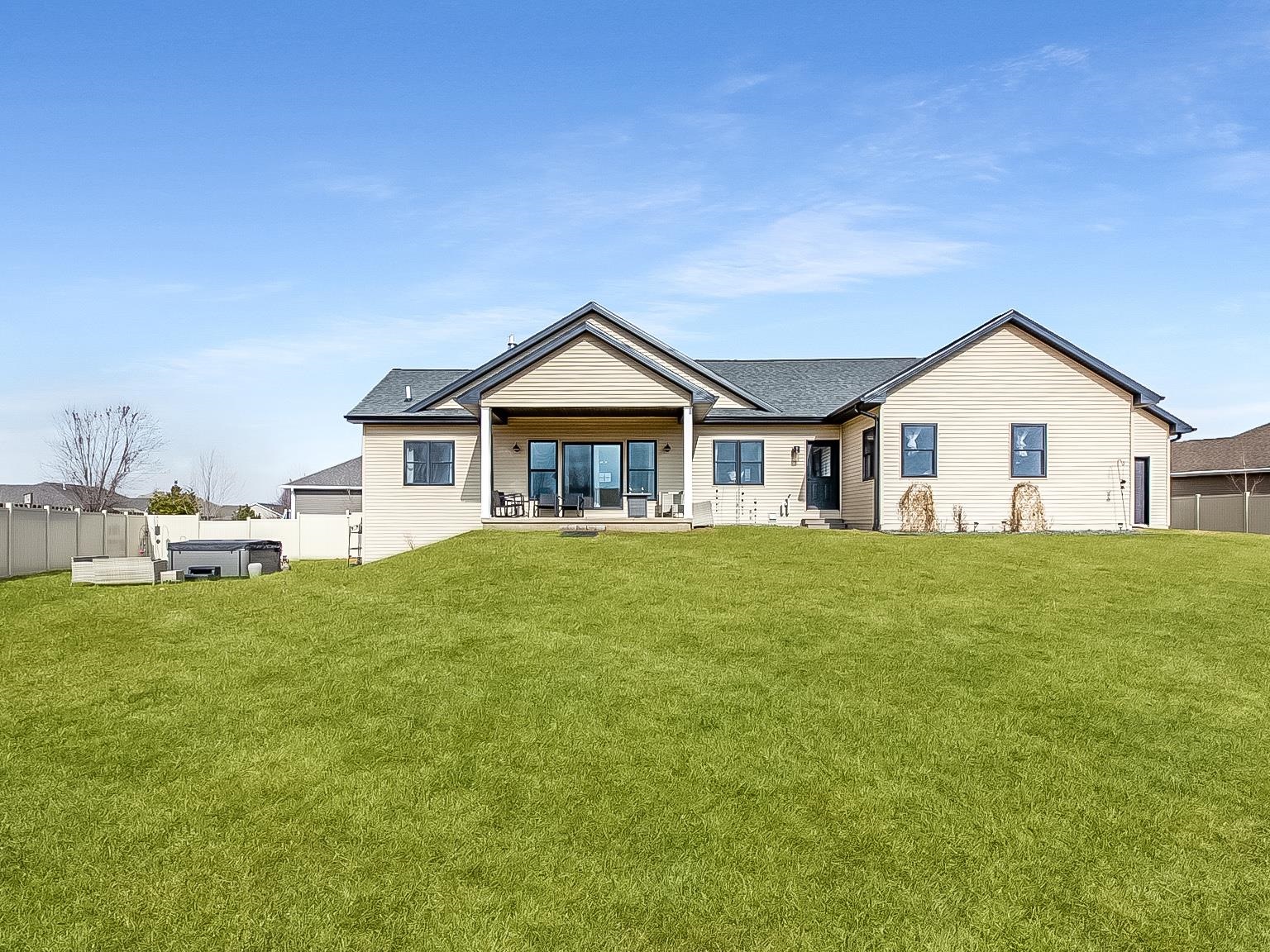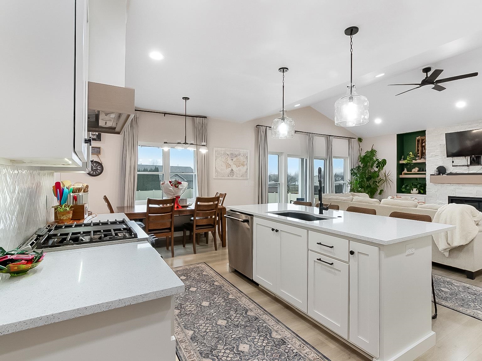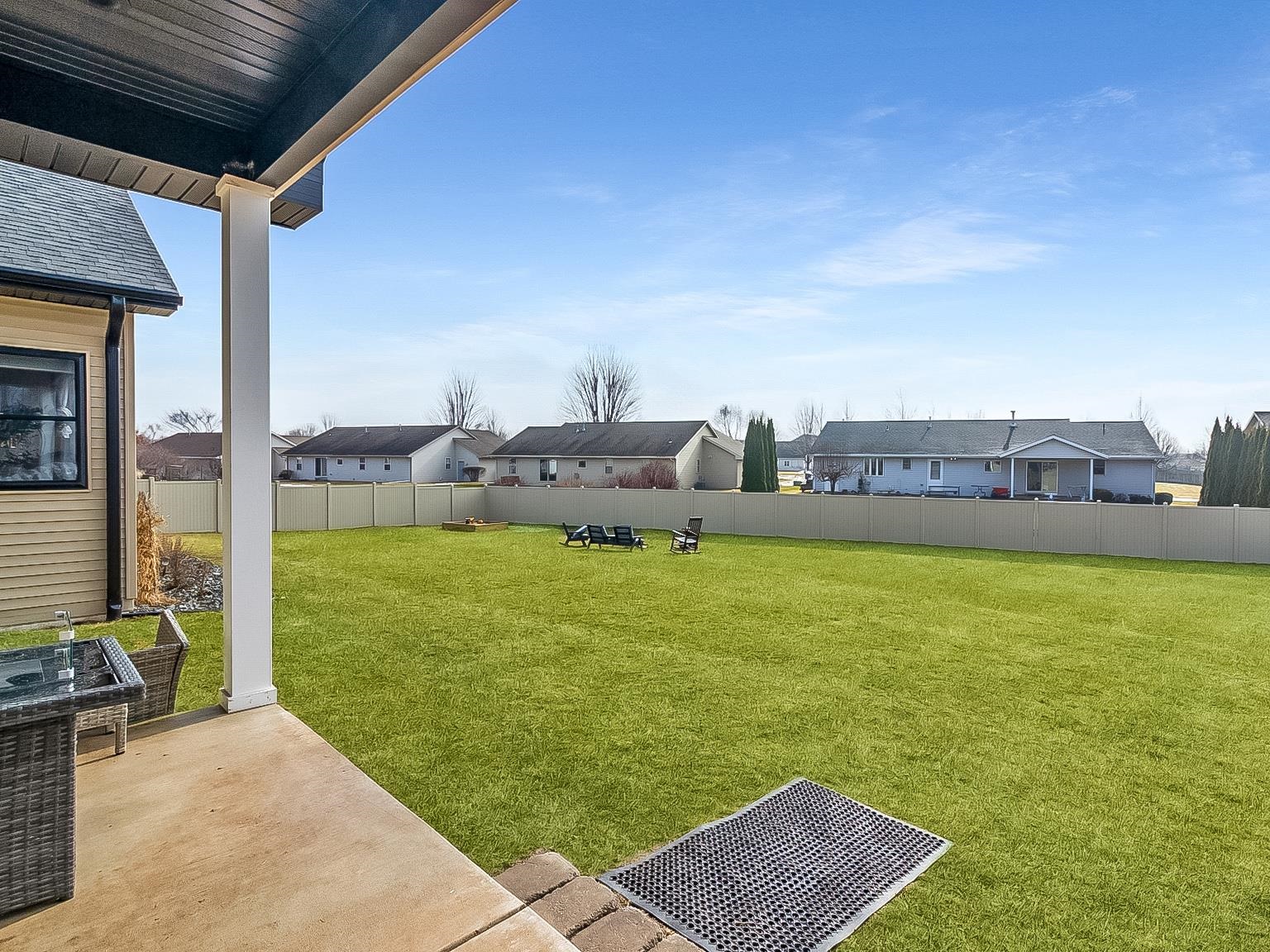 Welcome to this better-than-new ranch home, ideally situated on a quiet east side cul-de-sac near McAuliffe Park. This 4-bedroom, 2.5-bath home offers a desirable split-bedroom layout and thoughtful design throughout. The open-concept living area is anchored by a floor-to-ceiling stone fireplace with custom built-ins. A beautiful kitchen features an oversized island, walk-in pantry, and seamless flow for everyday living and entertaining. The private primary suite includes dual sinks and a spacious walk-in closet, with main-floor laundry just steps away. Enjoy a covered back patio, fenced yard, massive 4-car garage with rear overhead door, and a lower level with egress window and plumbing for a future bath – ready to grow with you. Inspection report from April 2025 available.