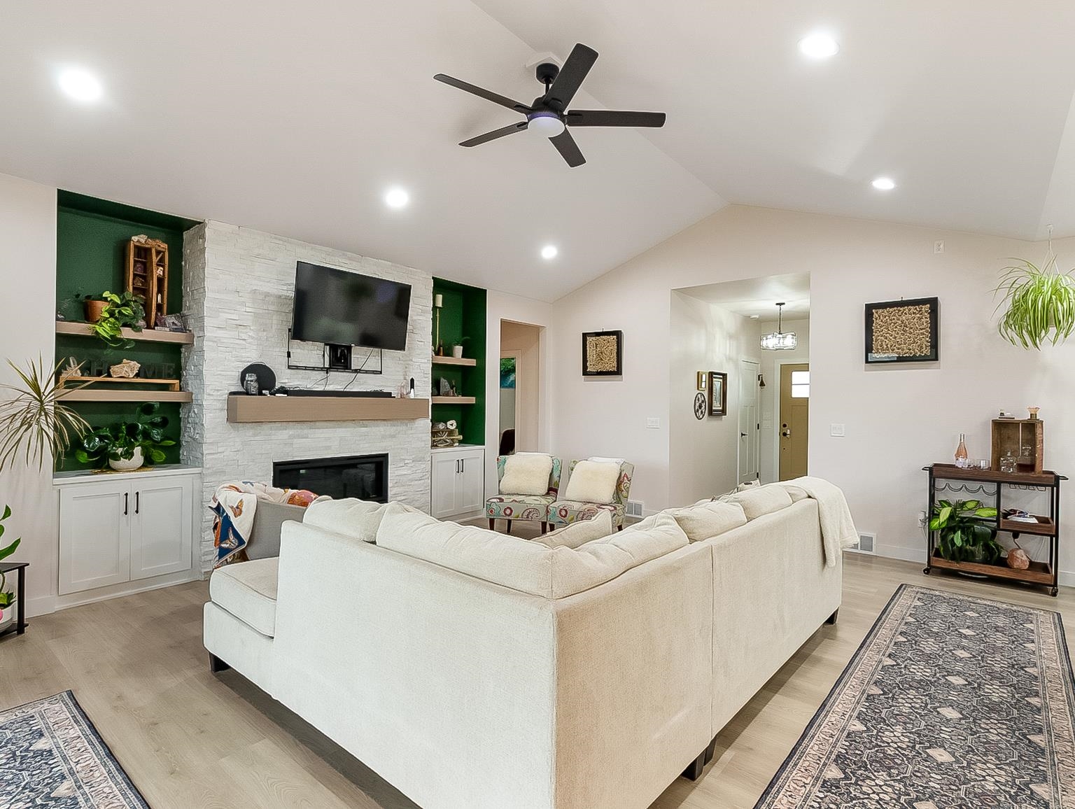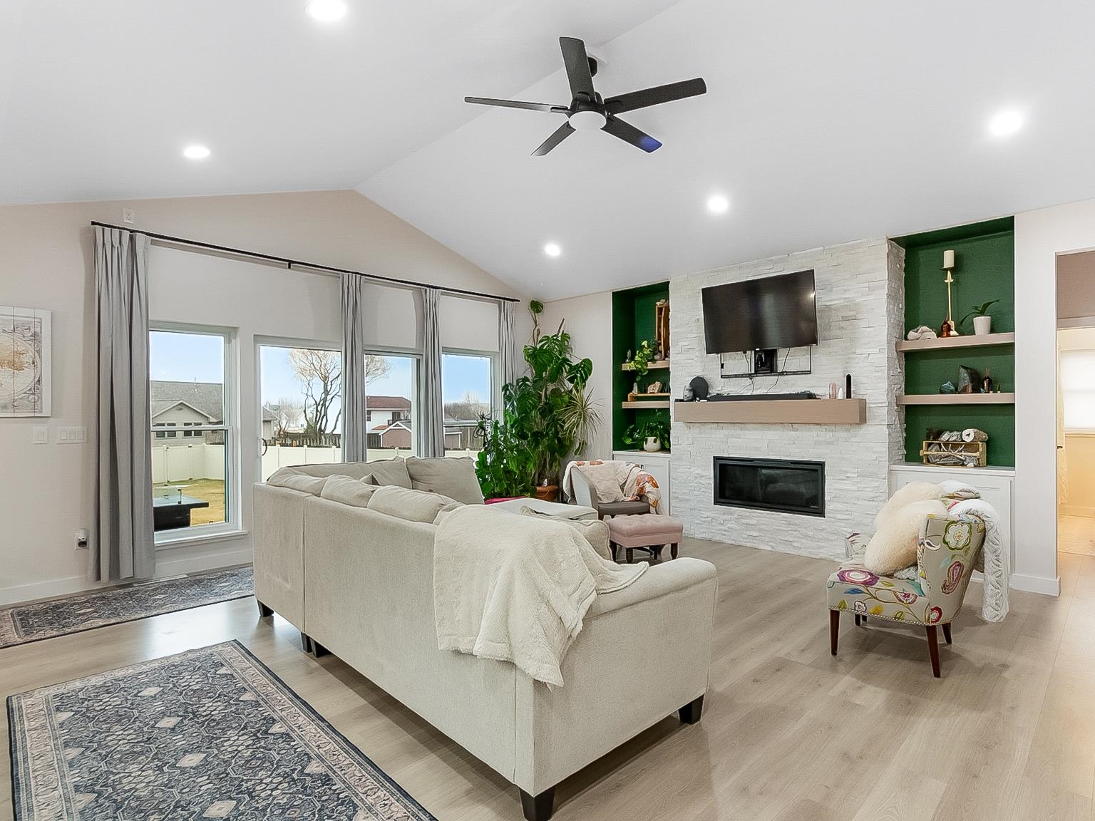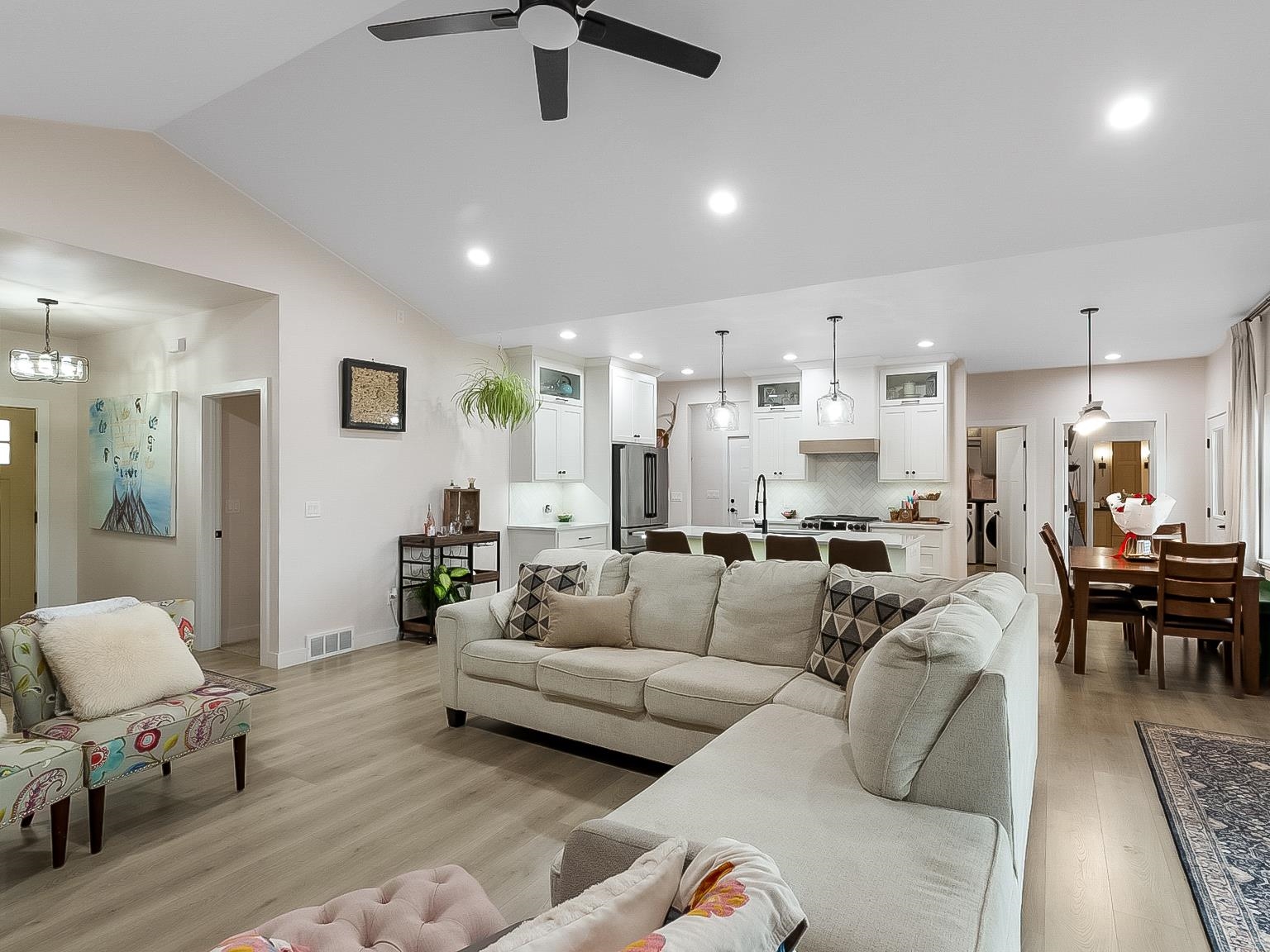 Welcome to this better-than-new ranch home, ideally situated on a quiet east side cul-de-sac near McAuliffe Park. This 4-bedroom, 2.5-bath home offers a desirable split-bedroom layout and thoughtful design throughout. The open-concept living area is anchored by a floor-to-ceiling stone fireplace with custom built-ins. A beautiful kitchen features an oversized island, walk-in pantry, and seamless flow for everyday living and entertaining. The private primary suite includes dual sinks and a spacious walk-in closet, with main-floor laundry just steps away. Enjoy a covered back patio, fenced yard, massive 4-car garage with rear overhead door, and a lower level with egress window and plumbing for a future bath – ready to grow with you. Inspection report from April 2025 available.