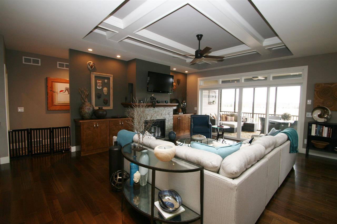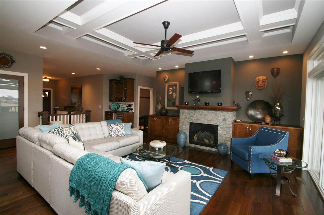 Stunning ranch w/open concept living - great for entertaining & enjoying the outdoors. A cooks kitchen w/solid surface countertops, maple cabs, island/BF bar, SS appliances & walk in pantry. Great room w/impressive coffered ceiling, stack stone FF w/built-in cabinet surround. MBR suite w/tray ceiling, WIC, entrance to screen porch, spa-like bath retreat w/walk in tile shower w/dual heads & heated tile flooring. Addl BR/Office space & full bath on ML. Walk out LL w/2 addl BR, full BA, game & rec rms.