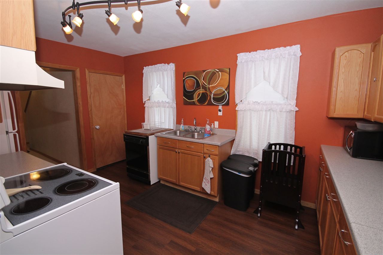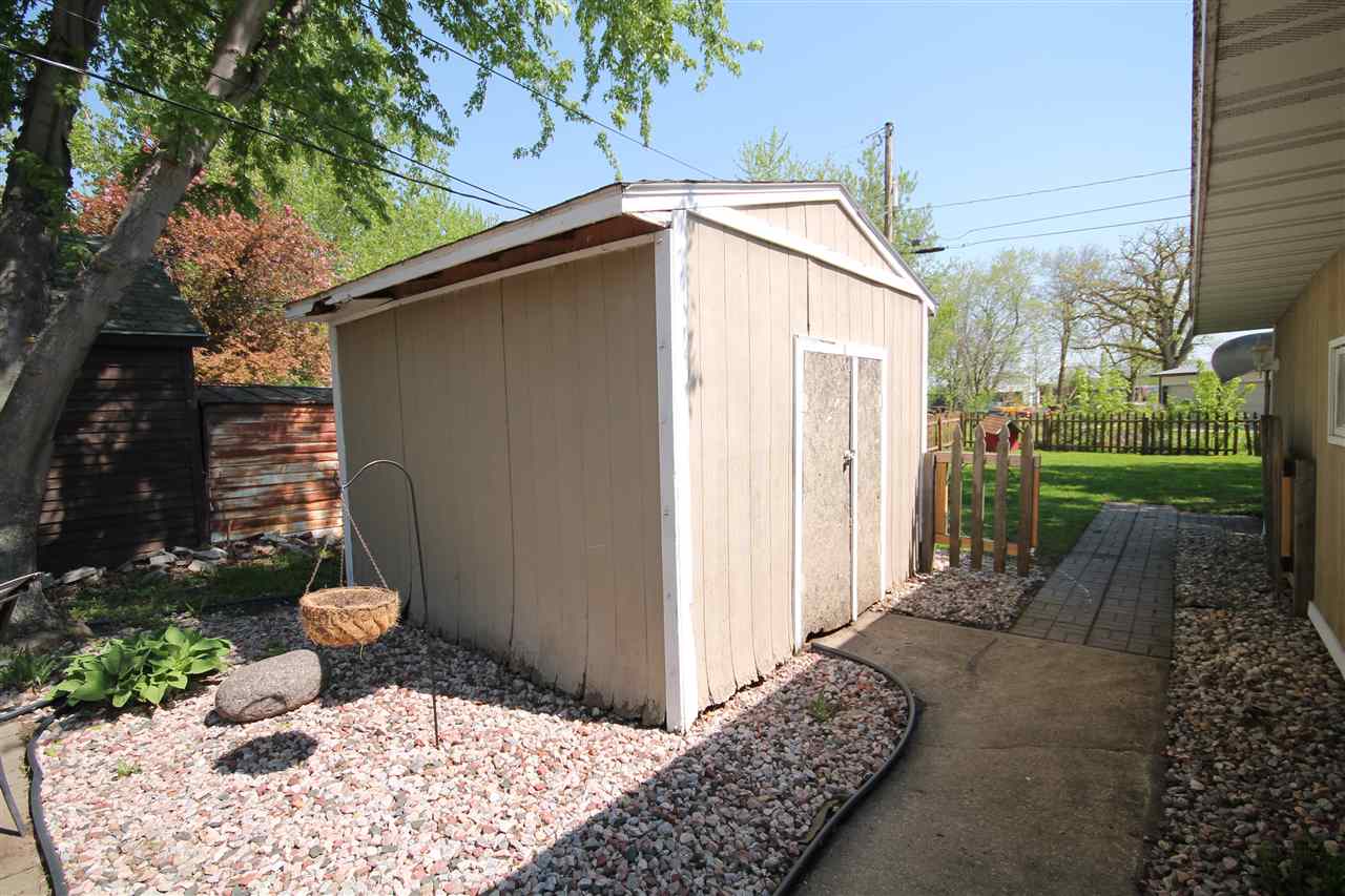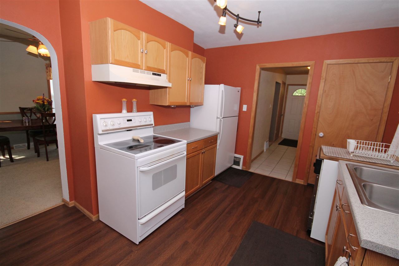 Trendy and updated! New everything here! Updated windows/doors, siding, concrete, kitchen, flooring, total remodel in the full bath, and painted throughout. You will enjoy the main floor laundry that is in a bonus room which could be used for many purposes! Nice sized yard with a 2.5 car detached garage and a shed. Big rooms throughout, great storage options, and all appliances included. Start home ownership here!