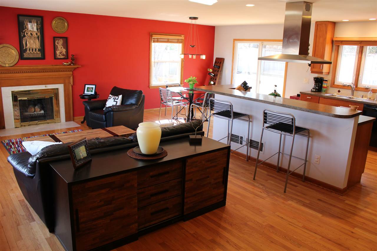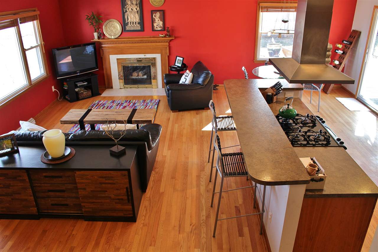 No Showings Until Open House 4/4 11:30. Modern, open floor plan w/ updated kitchen: signature stainless hood fan over huge kitchen island & breakfast bar; beautiful cherry cabinets (to ceiling); gas range; pantry; tile backsplash & more. Awesome features incl. lovely hrdwd flrs (except fmly); wood frplc in lvg rm; huge front picture window & sliding patio door to back deck & big fenced yard; large, private screened porch; all 4 bdrms upstairs; wood blinds; hobby/play rm in LL, great storage & 2 car garage.