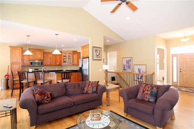 EXPECT TO BE IMPRESSED with this beautiful newer home in Harmony Hills. Featuring fabulous open, split bedroom design, custom cherry cabinetry, solid surface counters, beautiful hardwoods and formal dining, maintenance free decking, 9’ ceilings throughout main and LL. Spacious master suite with walk out to deck, spa like bath, walk in closet and tray ceilings. Exposed Lower Level features huge family room, built in wine refrigerator and ample storage. Quick close available. VPR $399,900-409,900.