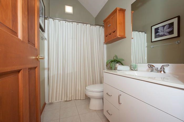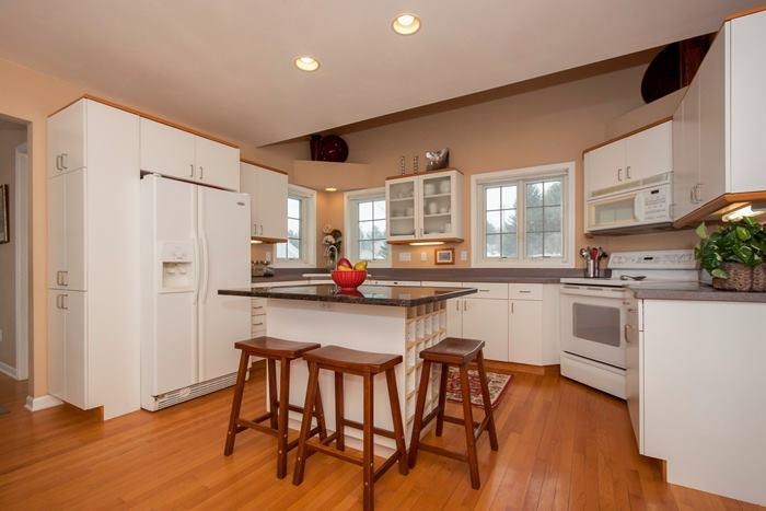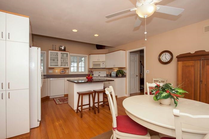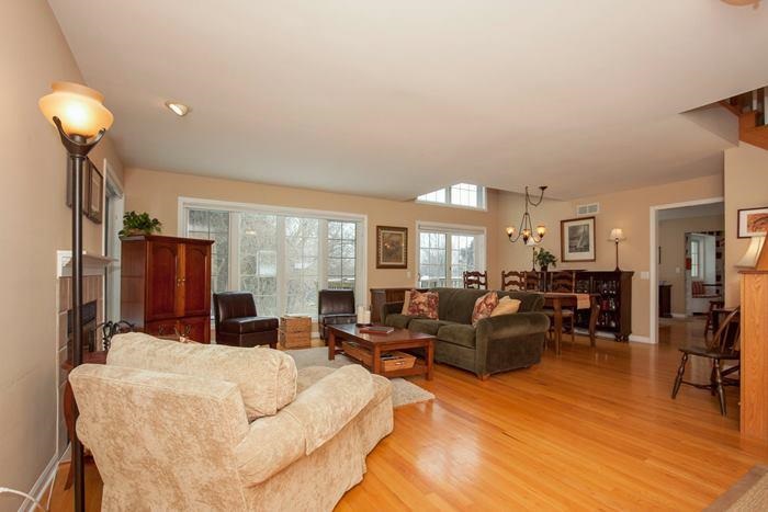Charming home situated private country lot. Wood flrs on main level. Formal living & dining W/fireplace. 6 panel doors, painted woodwork, custom staircase & skylight. Bright sunny kitchen W/breakfast nook & hearth area W/access to deck & backyard. 1st fl. master suite W/walk in closet, vaulted ceilings, private deck & bath. 3 bdrms & bath upstairs. Exp. LL features 5th bdrm, office, bath & storage. New roof, windows, front door, H2o heater.