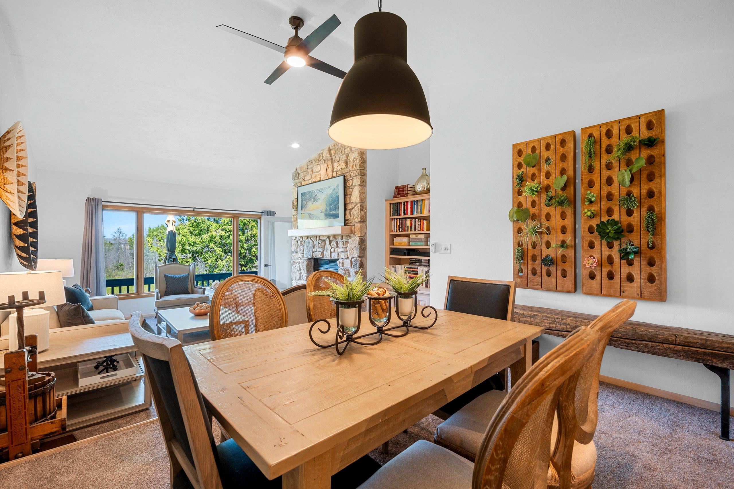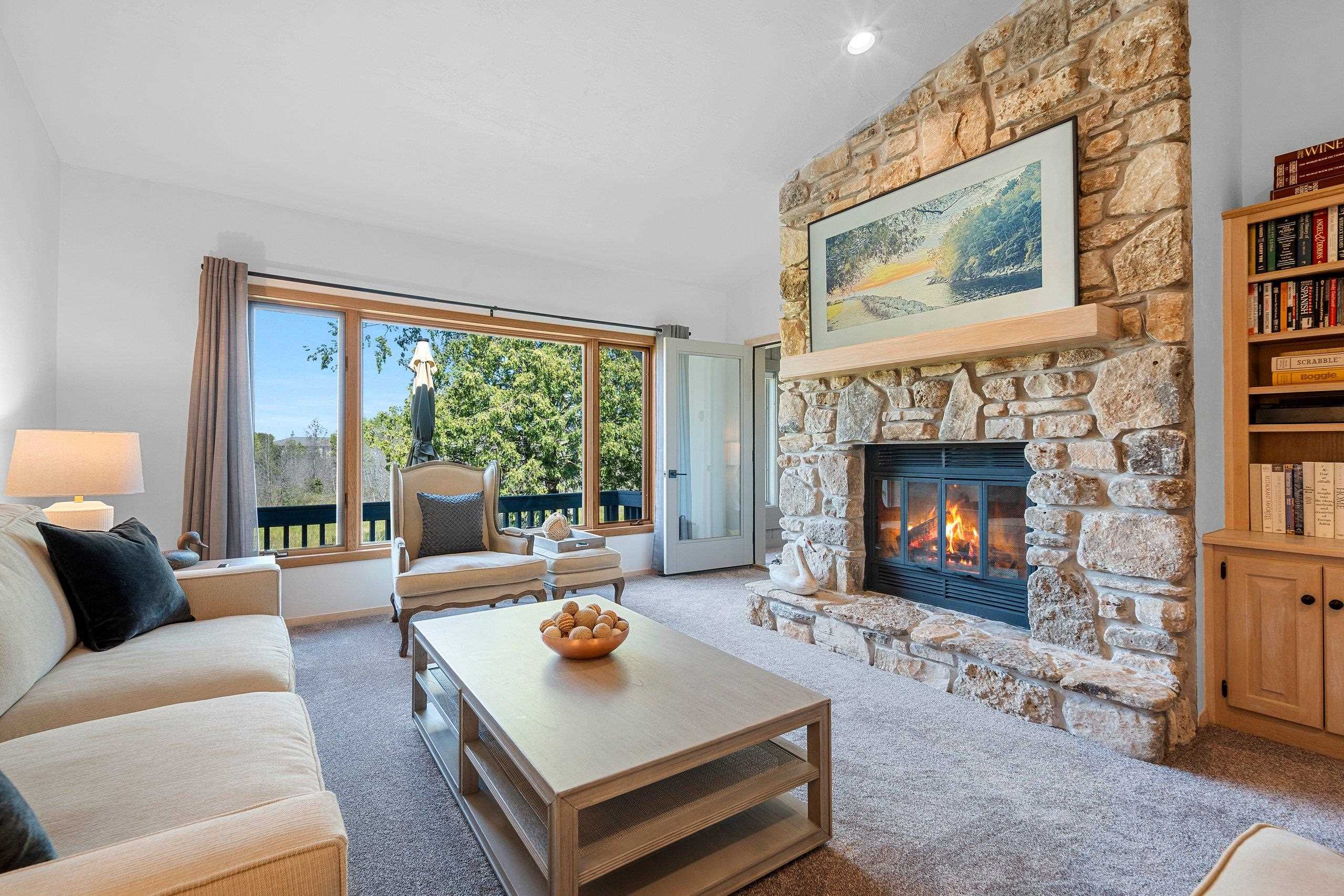 Beautifully updated condo in the quiet, serene grounds of Anchorage Cove in Egg Harbor. These condos are nestled on the shore of Green Bay & include many amenities! Pool, hot tub, tennis courts, nature trails, beach, private marina, bike & kayak racks-so much more! This condo is nicely renovated (Dec '22 & Jan '23) w/new light fixtures & high end apps throughout. Updated kitchen has snack counter & includes all appliances; dinette is open to the living rm w/FP & gorgeous view of the condo grounds; large primary bedroom has full private bath w/jetted tub & separate shower; guest bedroom has built in storage & access to full bath; porch & balcony overlooks yard & marina. This little piece of heaven awaits you! HOA fees $2500 quarterly. Porch is insulated but no vents for heating or cooling.