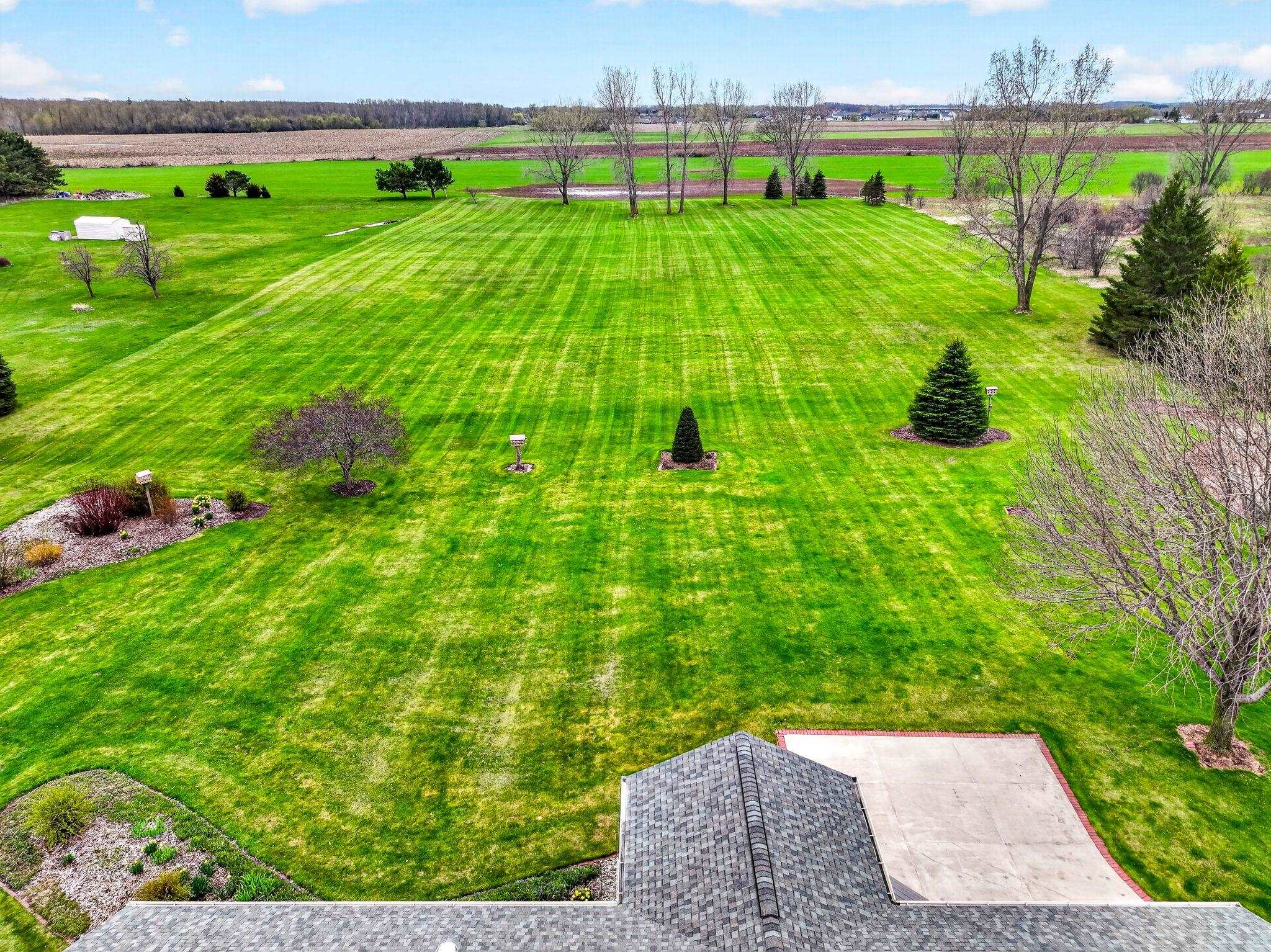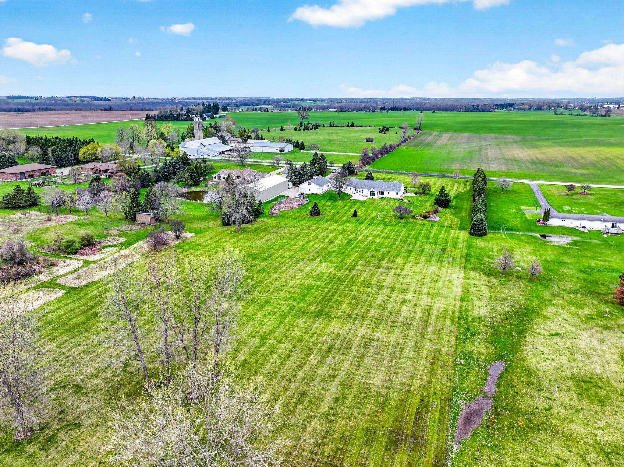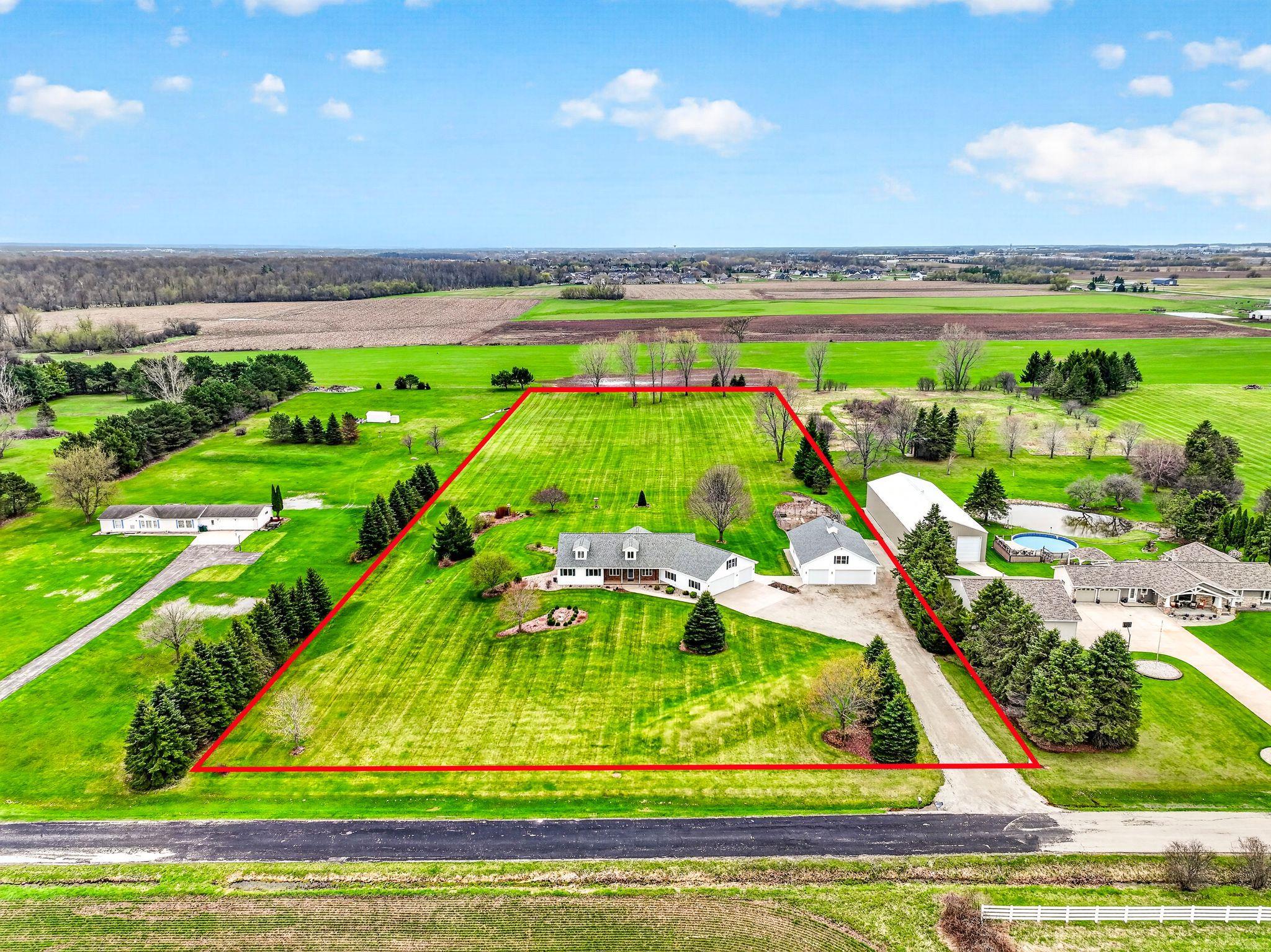 One owner custom built ranch with outstanding second garage all on just shy of 5 acres in North Appleton area. One of a kind property built with great quality. This ranch boasts of southern exposure - sunroom with great views of the expansive backyard. Kitchen w/pantry, under & above cabinet lighting opens to great room w/gas fireplace and motorized blinds. Primary suite w/spacious built ins, walk in closet, tiled shower. Private guest suite quarters; Large utility area w/laundry, half bath and screen porch. Upper bonus area ready for additional square footage. LL raised tub for utility use. 2nd garage is amazing...car hoist, commercial air compressor, propane heated, second story area. Fenced in garden w/water. 1 car custom garage screen included. Furnace 2025; Both roofs 2022