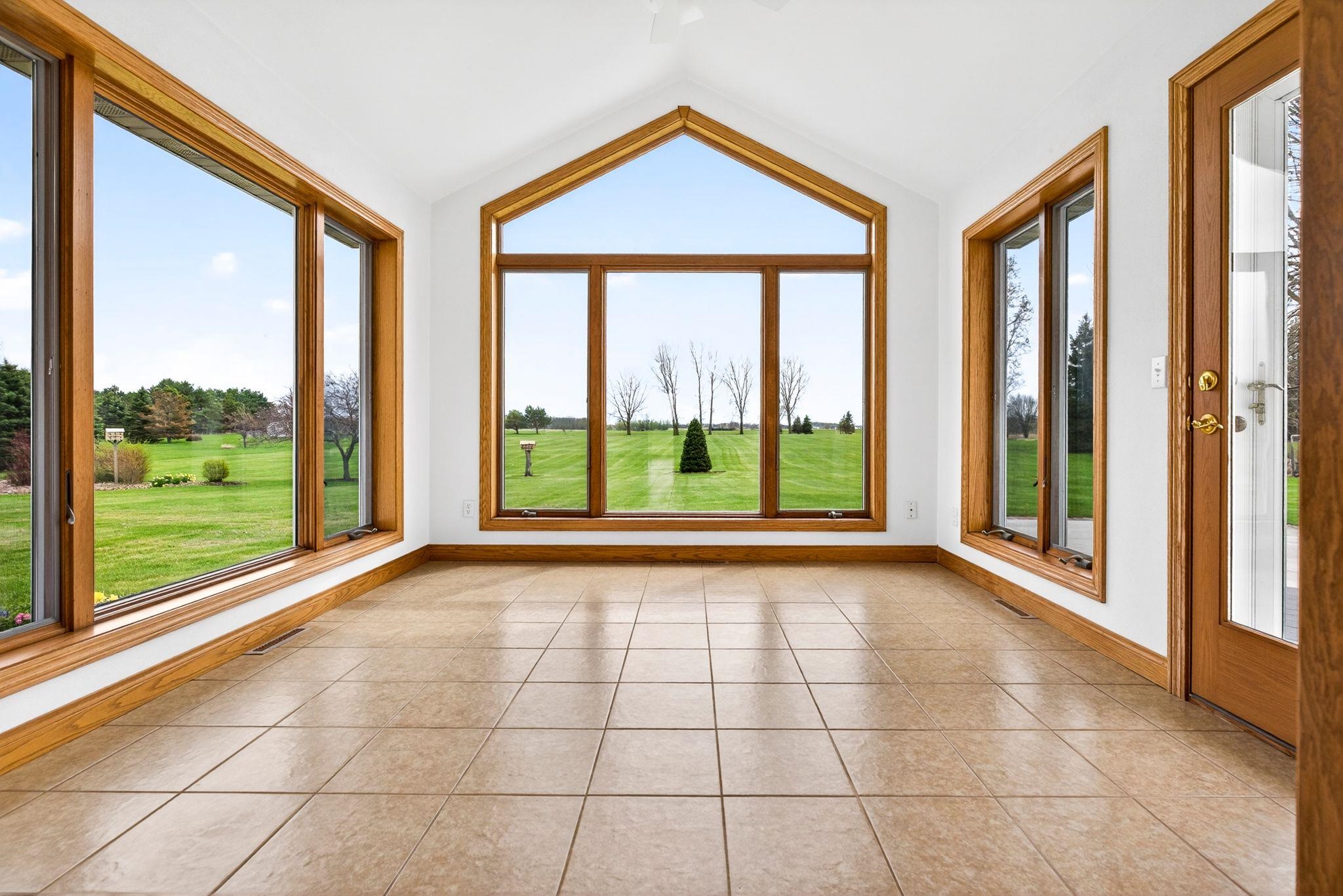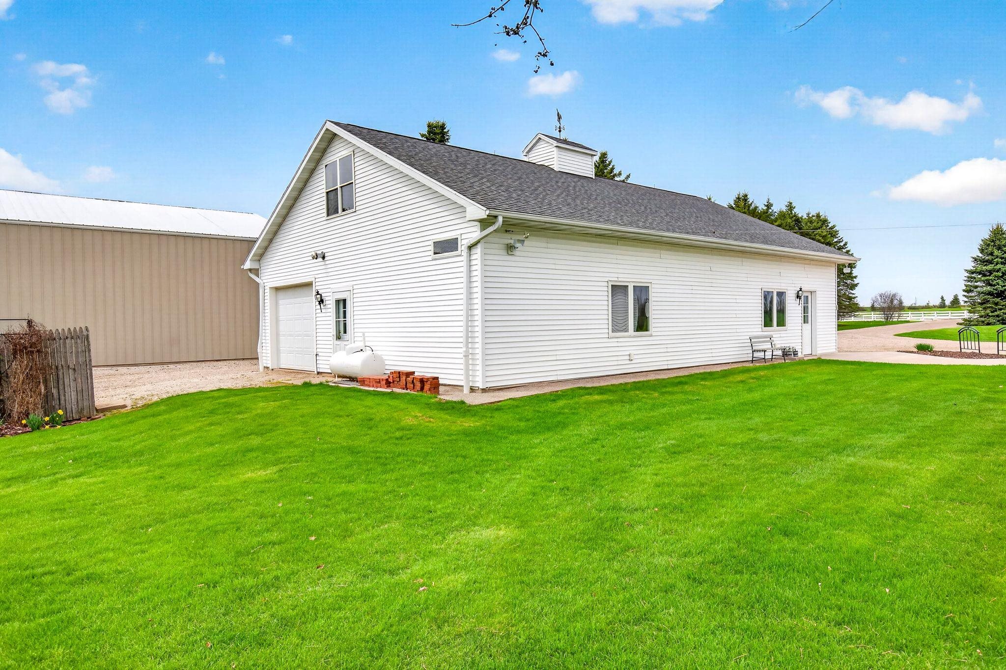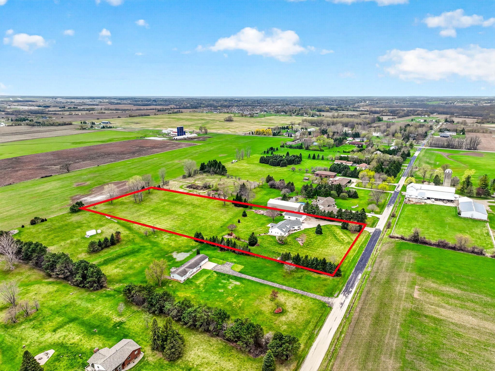 One owner custom built ranch with outstanding second garage all on just shy of 5 acres in North Appleton area. One of a kind property built with great quality. This ranch boasts of southern exposure - sunroom with great views of the expansive backyard. Kitchen w/pantry, under & above cabinet lighting opens to great room w/gas fireplace and motorized blinds. Primary suite w/spacious built ins, walk in closet, tiled shower. Private guest suite quarters; Large utility area w/laundry, half bath and screen porch. Upper bonus area ready for additional square footage. LL raised tub for utility use. 2nd garage is amazing...car hoist, commercial air compressor, propane heated, second story area. Fenced in garden w/water. 1 car custom garage screen included. Furnace 2025; Both roofs 2022