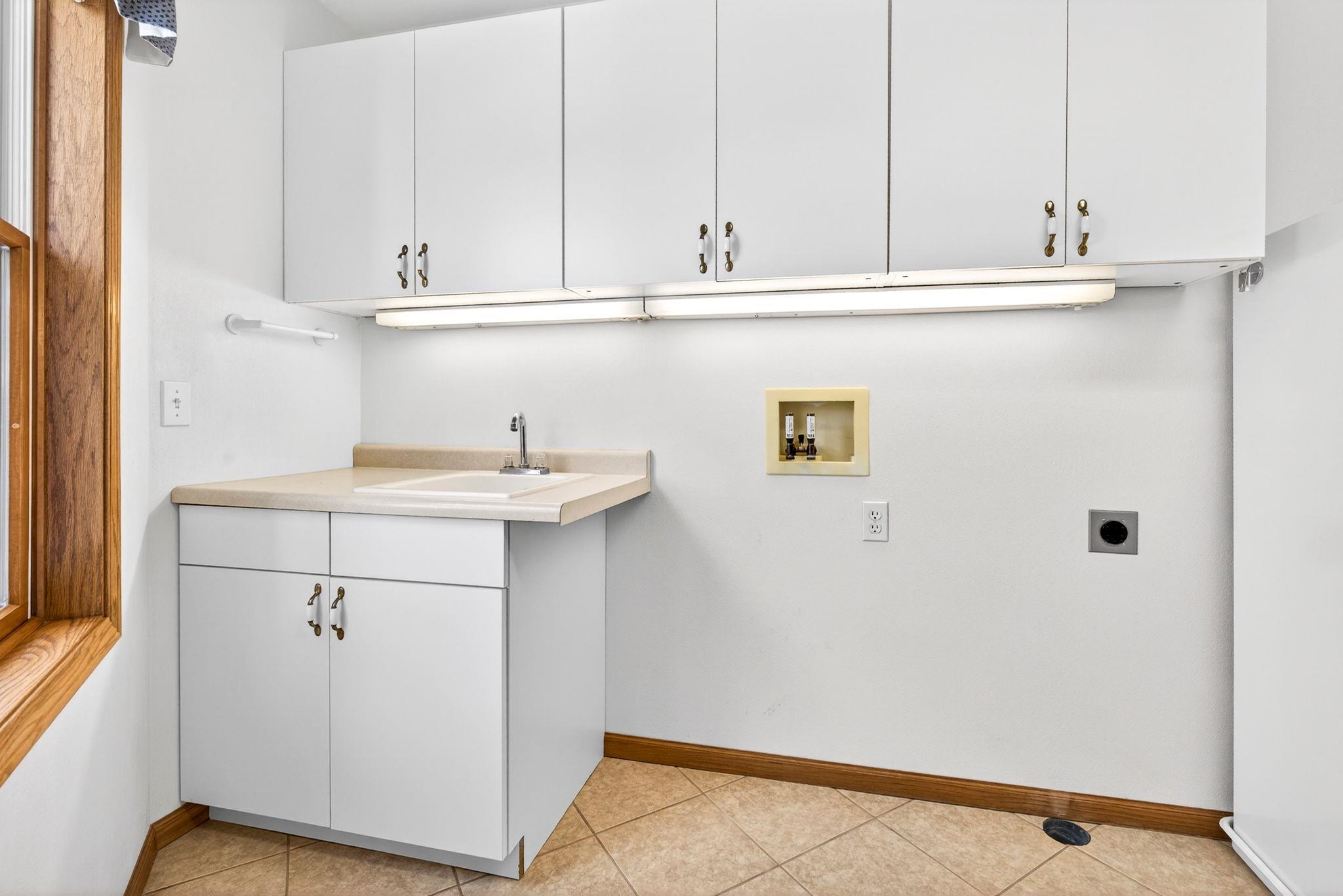 All kitchen appliances, water softener, window treatments, motorized and regular blinds, second garage heater, commercial air compressor, car hoist.