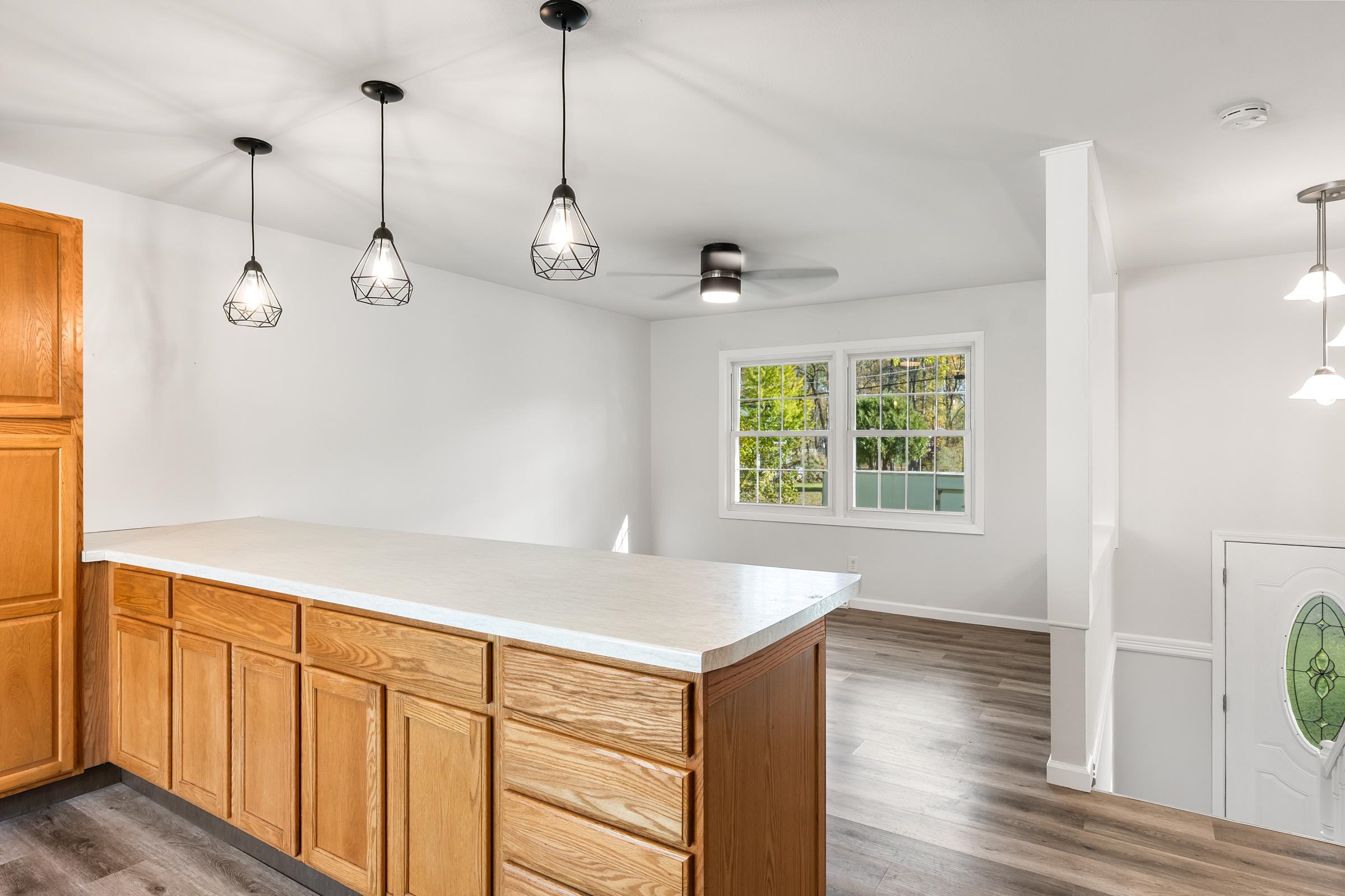 washer, dryer, refrigerator, stove, microwave, dishwasher, window treatments
