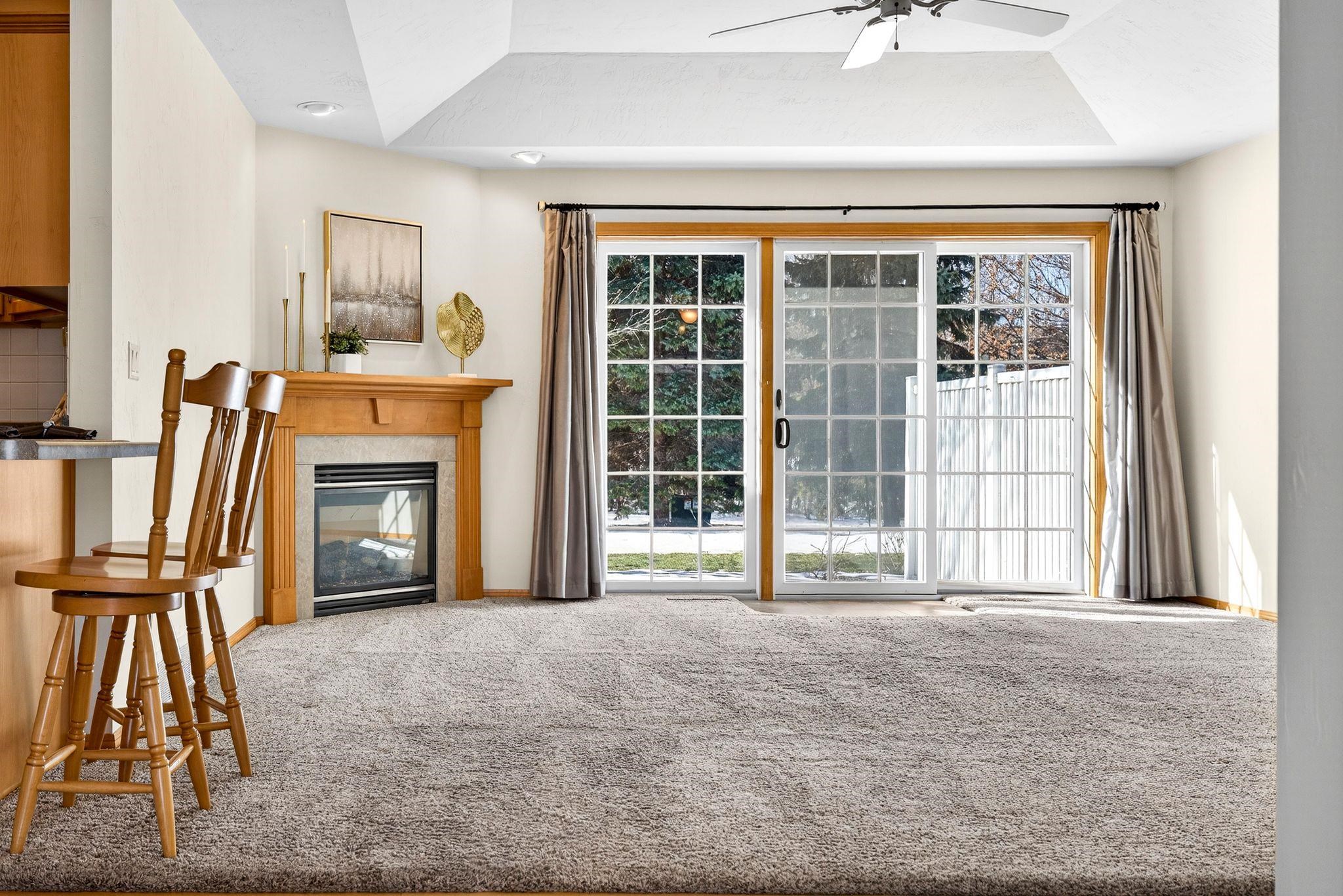 Natural light fills this side-by-side condo. The living room features a gas fireplace & access to a patio. The well-thought-out floor plan has a spacious kitchen opening up to the living room, just steps away to the dining room. The generously sized primary bedroom features a tray ceiling, walk-in closet, & full bath. Laundry is convenient on the main level with an adjacent office. The staircase to the lower level is conveniently located near the garage entrance. The lower level boasts a large family room accented with a bar, half bath, workshop, mechanical room, & loads of storage. Enjoy relaxing on the patio watching the wildlife. Lawncare, landscaping, snow removal, & exterior maintenance are taken care of for you. Westside location that is near shopping. Arrange to see this home today!