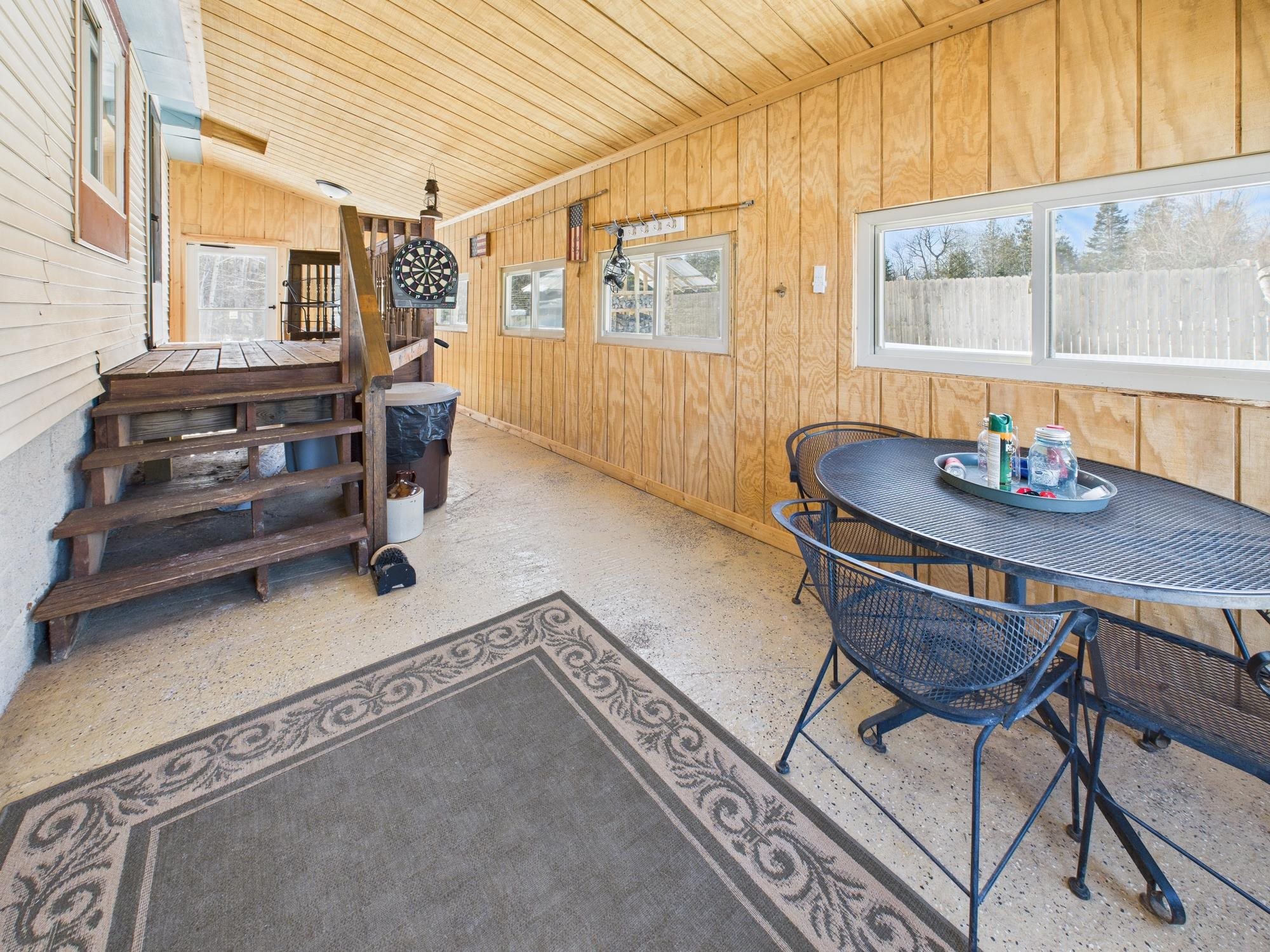 A perfect up north retreat awaits you with this one. Completely remodeled inside with all new flooring, drywall painted, fixtures updated and move in ready! Updated windows with metal roofing has this place ready to go with low maintenance! Close quick and enjoy the summer with this one. House comes competely furnished - Turn Key! This property also rents out on air bnb for potential of additional income for you to help pay for the property. Quiet backyard surrounded by fencing leaves you with a great spot for a fire with friends at night, a good morning coffee to listen to what nature provides, or host a party with yard games. Close to the Snowmobile/ATV Trail for Easy Access. Space to Build Large Garage! Rental Permits don't transfer, Buyer would need to reapply.