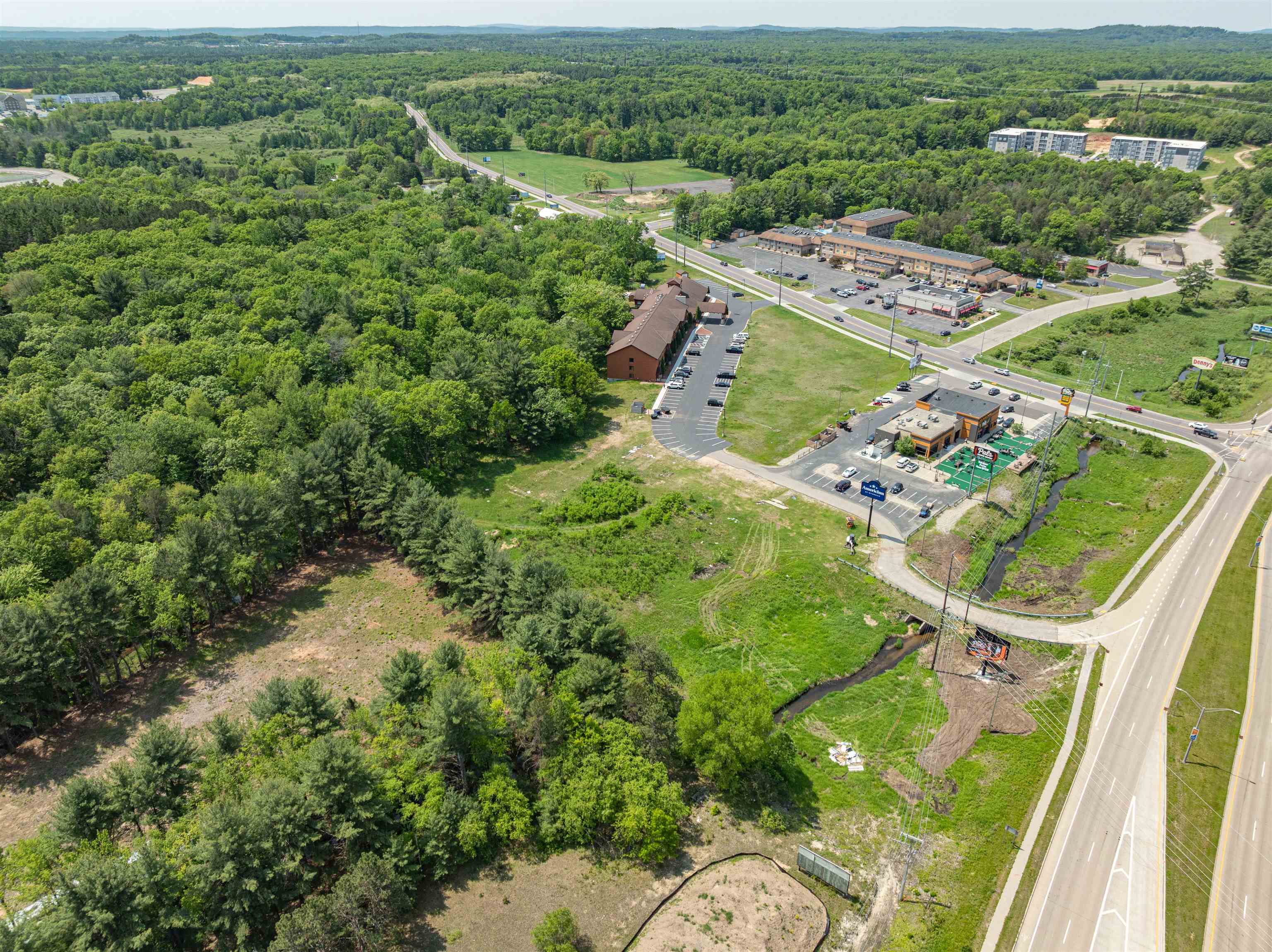 Excellent C-4 Commercial parcel 3.5 acres +/- located on high traffic Hwy 13 minutes from downtown Wisconsin Dells! Prime location for multiple uses, including a new Hotel, Restaurant, Tourist Attraction, and more. The property has rights to 229 parking spaces and a driveway easement allowing access on two sides (Hwy 13 and Trout Rd). Some of the infrastructure for the parking improvements is already on site as well as sewer and electric service. Not only is the property located in a TIF District, but it may be eligible for New Market Tax Credits (NMTC) Programs. There is a Class II trout stream located at the south end of the parcel.