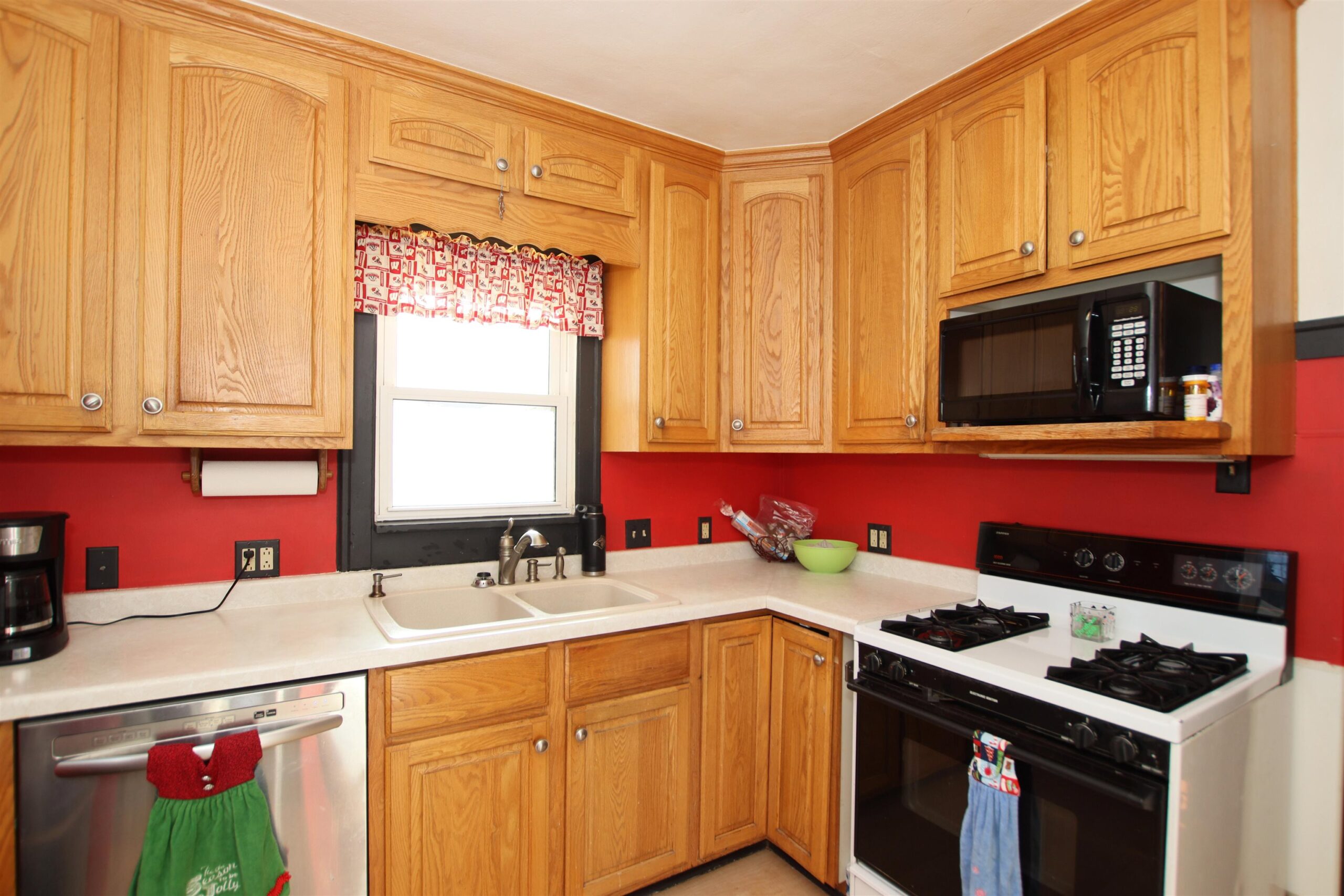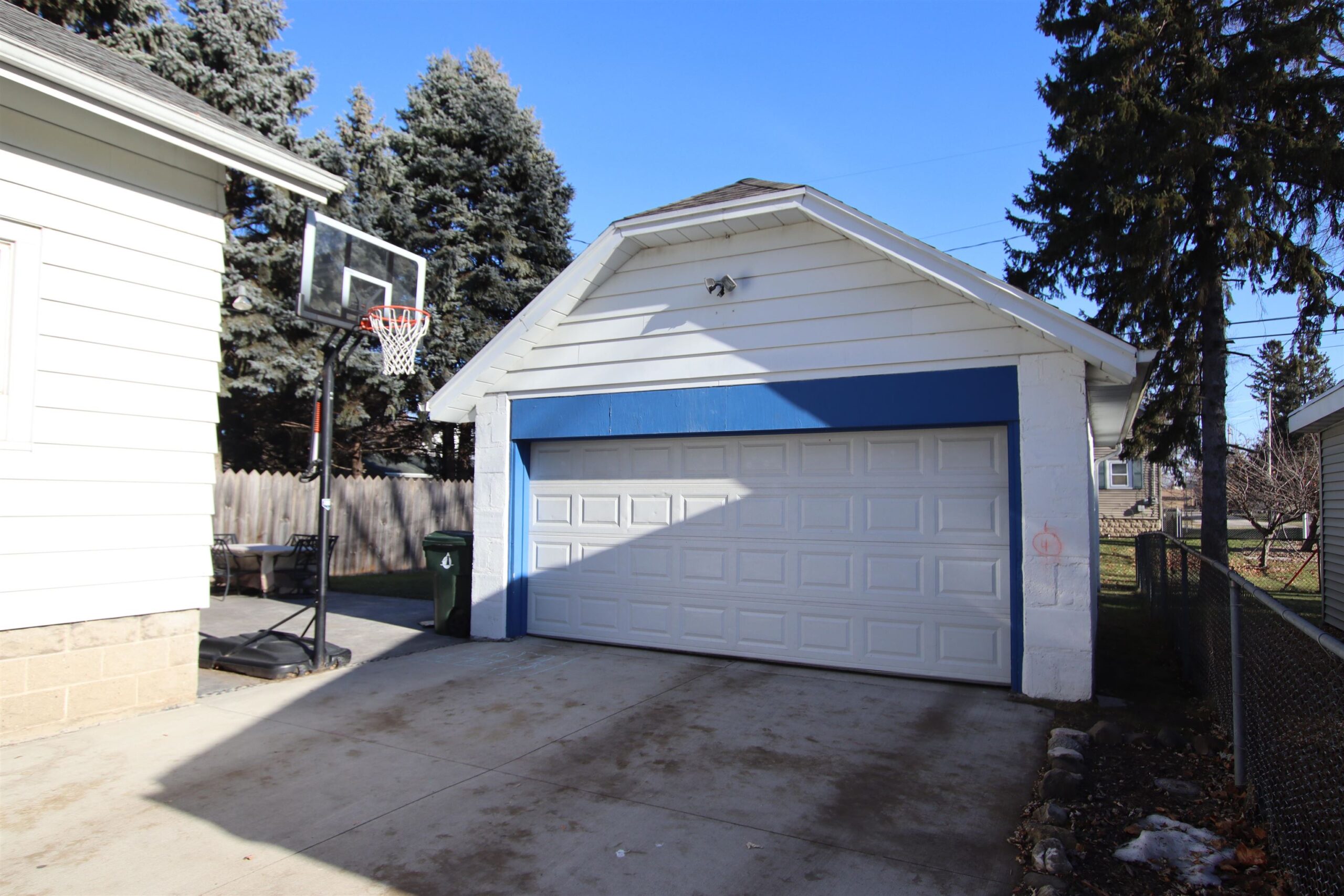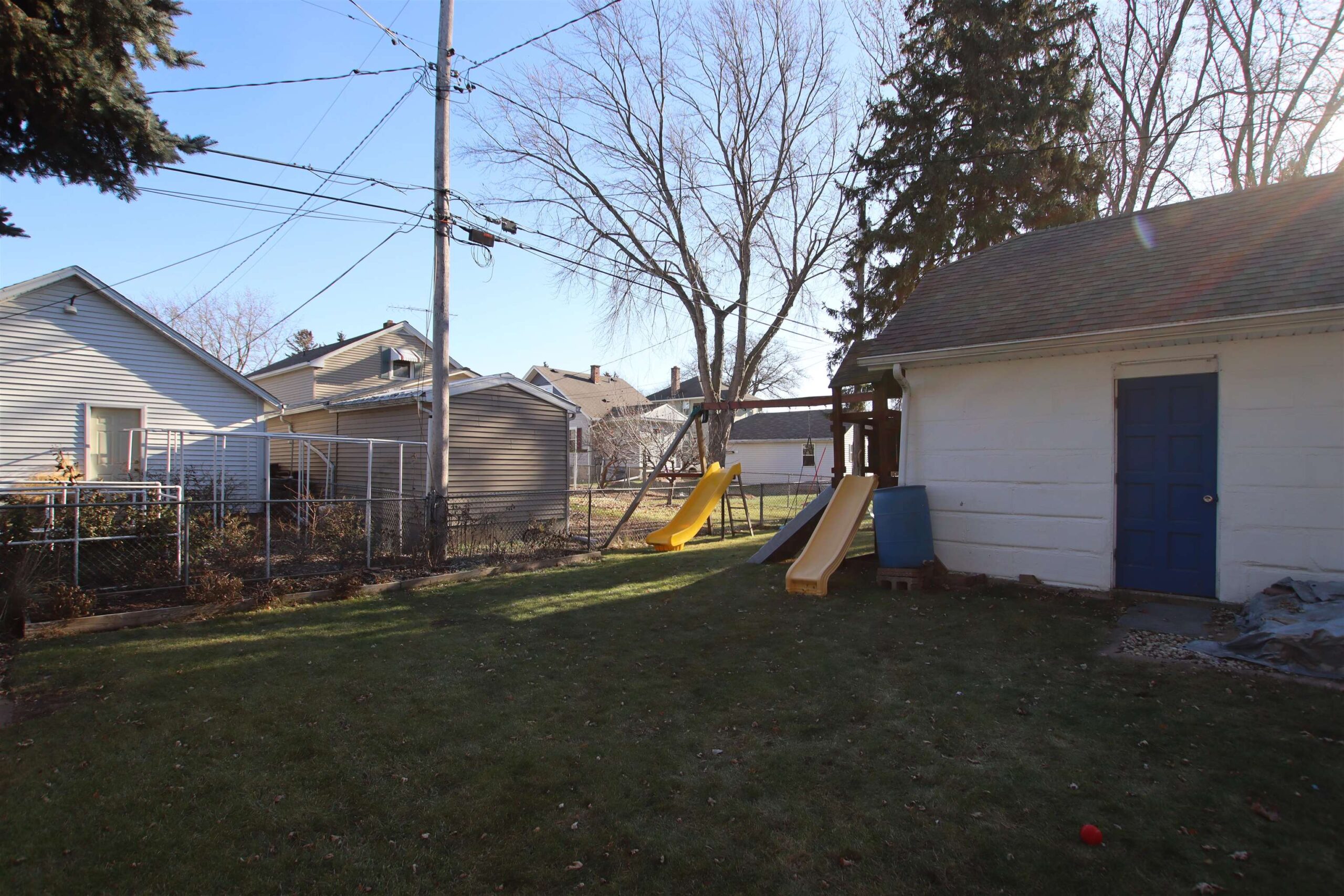 Appliance package and swing set in the back yard.