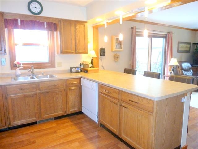 Expect to be impressed! Split level w/4 bdrm, 2 baths boasts vaulted entry, open kitchen w/pendant lighting, breakfast bar & new laminate wood floors open to LR w/crown molding, new Pella doors & expansive deck for entertaining! Mstr Bdrm boasts built-in closet system, remodeled bath w/quartz c-tops & solar tube! Walk out family rm w/gas fireplace, 2 bdrms, updated bath, built-in organizer & patio. Large fenced back yard w/trees & room for garden! New steel roof ’06 & extensive improvements! $495 UHP!