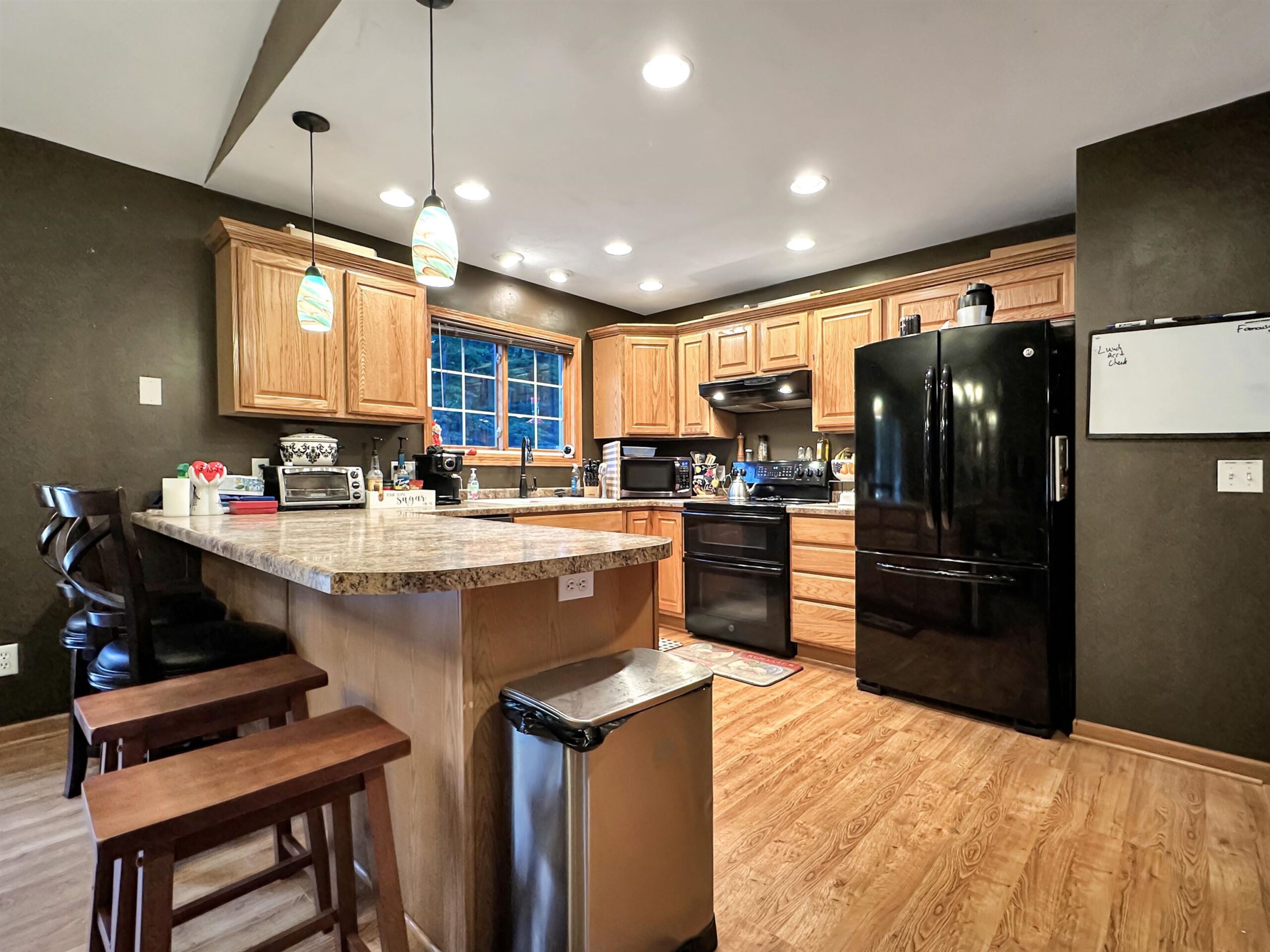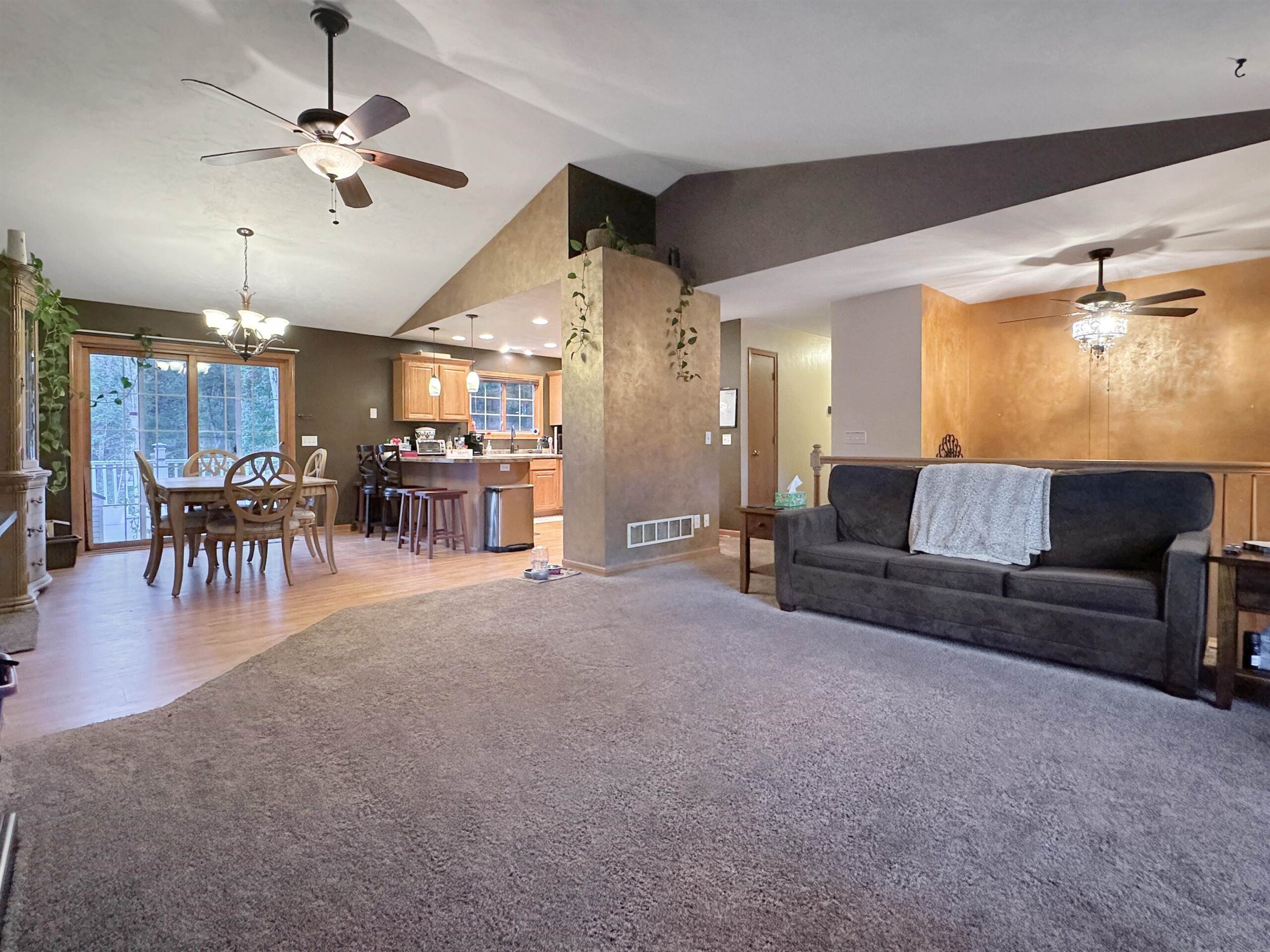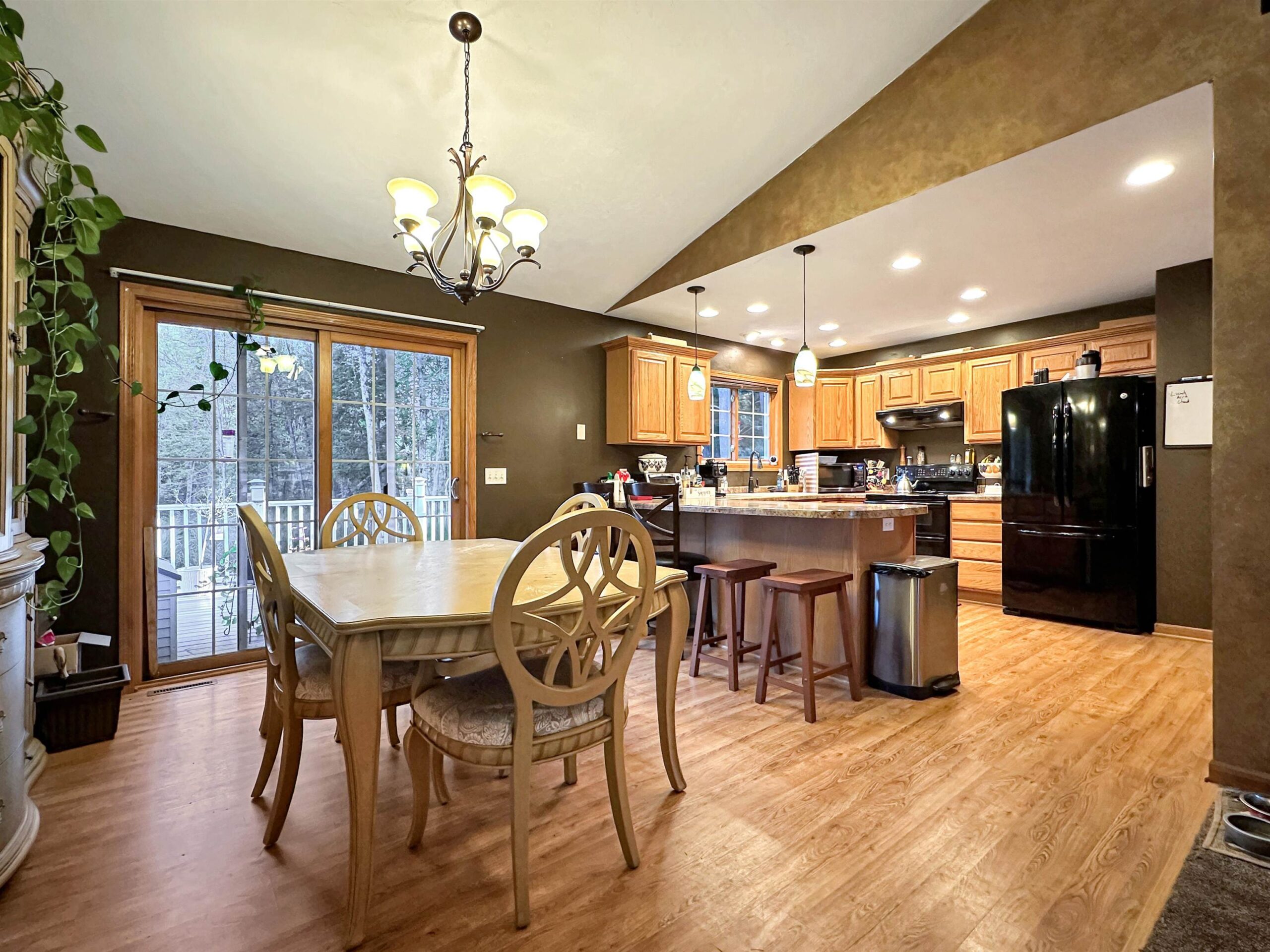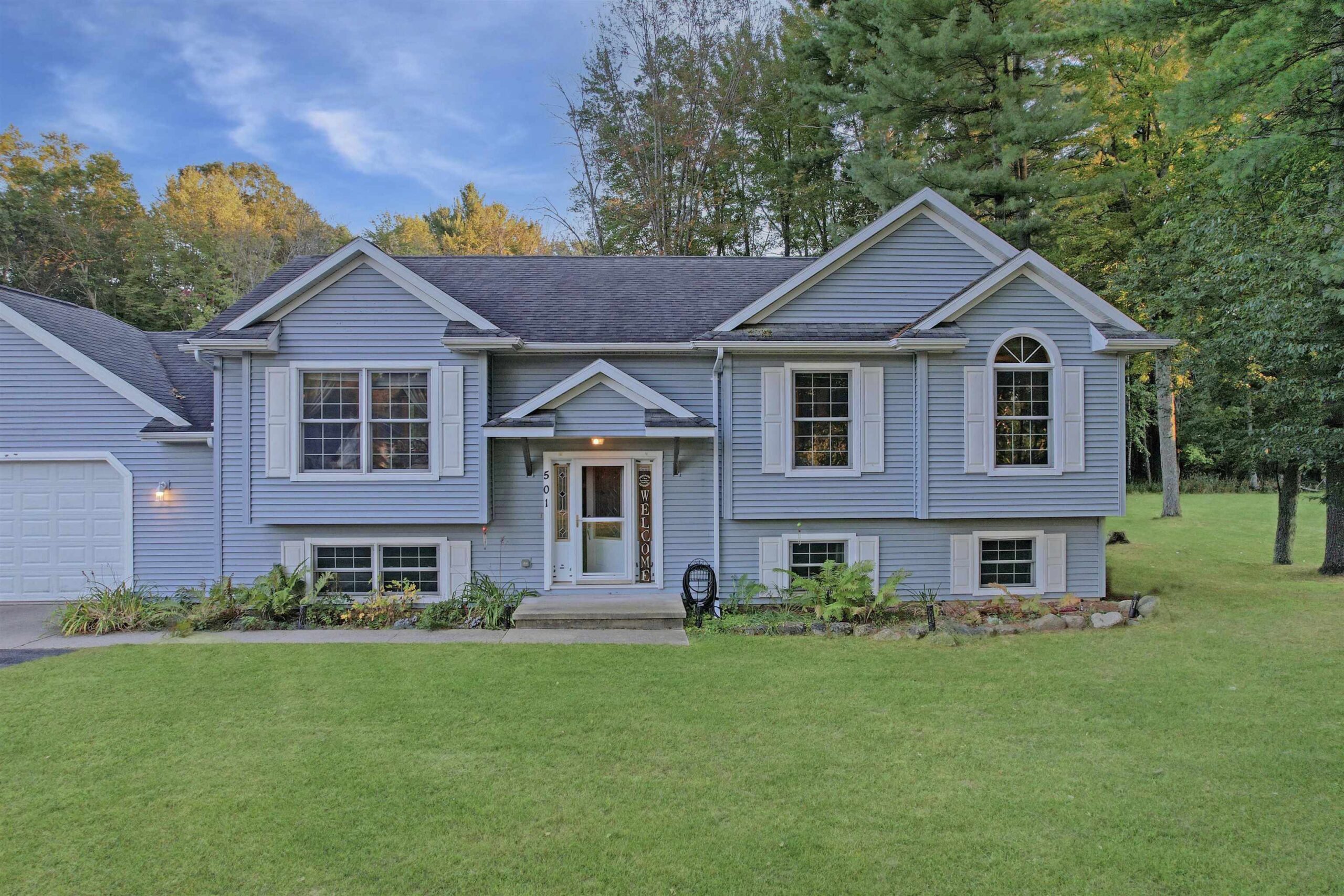 This home offers 4+ bedrooms and 2 full bathrooms, providing plenty of space to fit a variety of needs. The open concept layout connects the kitchen, living, and dining areas, creating a comfortable and functional flow for everyday living and entertaining. The private primary bath adds convenience, while the expansive lower-level rec room offers great flexibility for additional living space. A bonus room downstairs is perfect for a large office, gym, or potential additional bedroom. Additional highlights include a 2 car attached garage, central air, vinyl siding, and a private deck off the kitchen ideal for relaxing or entertaining. The spacious backyard offers room to enjoy the outdoors. Note: Lower level bonus room features exposed floor joists for the ceiling.