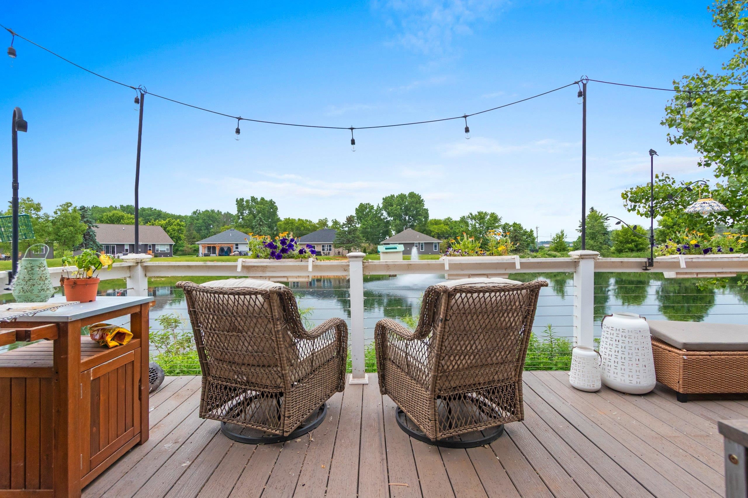 Come enjoy this maintenance-free, stand alone Condo with breathtaking pond views! Home boasts open concept living room and kitchen with granite countertops and walk in pantry. Main level includes two bedrooms and two full baths with walk in laundry room. For your convenience there is an attached stair lift to bring you to the lower level. The massive trex composite deck overlooking the pond and fountain will be your go to spot! If you enjoy fishing, the pond is full of sunfish and bass! *Seller offering closing cost credit with accepted offer before October 31, 2025.