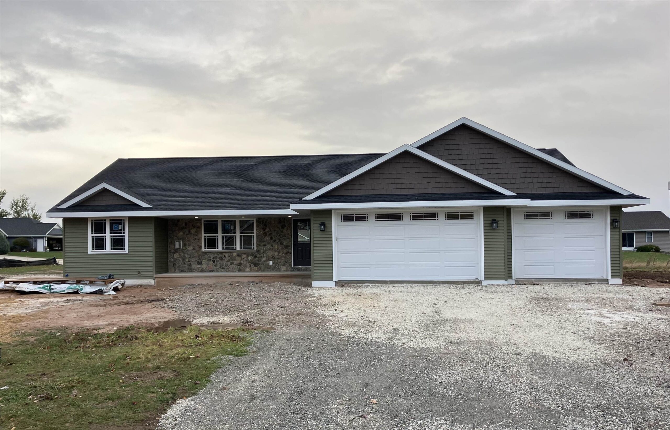 Quality built home with a 4 stall attached garage, 3rd stall is another stall deep plus has a convenient overhead door that leads to the backyard! Sun filled living rm w/ vaulted ceiling, gas FP, open concept to the kitchen dining area. Kitchen offers stove, refrigerator, dishwasher, microwave, custom made soft close cabinets & lots of them! Lighted pantry, nice countertop space, snack bar, dining area. Primary bedroom offers recessed lighting, tray ceiling with fan, huge walk in closet, primary bathroom w/walk in shower and linen. 2 other generous size bedrooms both with ceiling fans & lighted closets. Lower level offers opportunity to add additional sq.ft, egress window & stubbed for another bathroom. 48 hours for binding acceptance, listing agent has an interest. Pics are similar