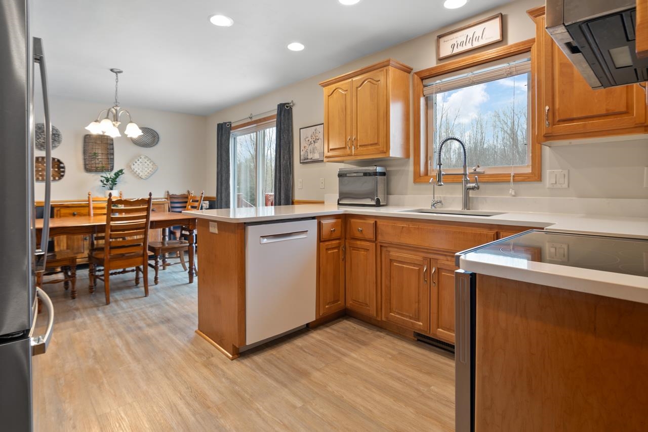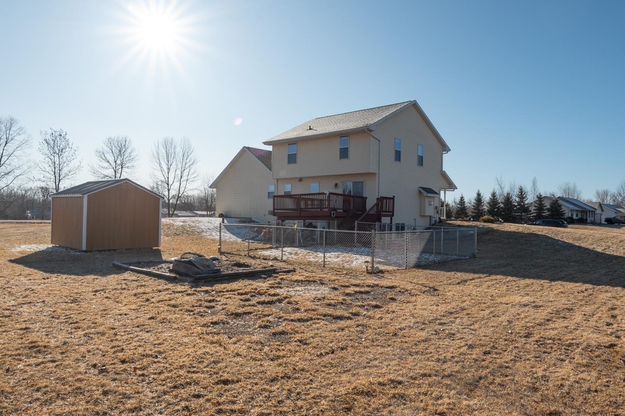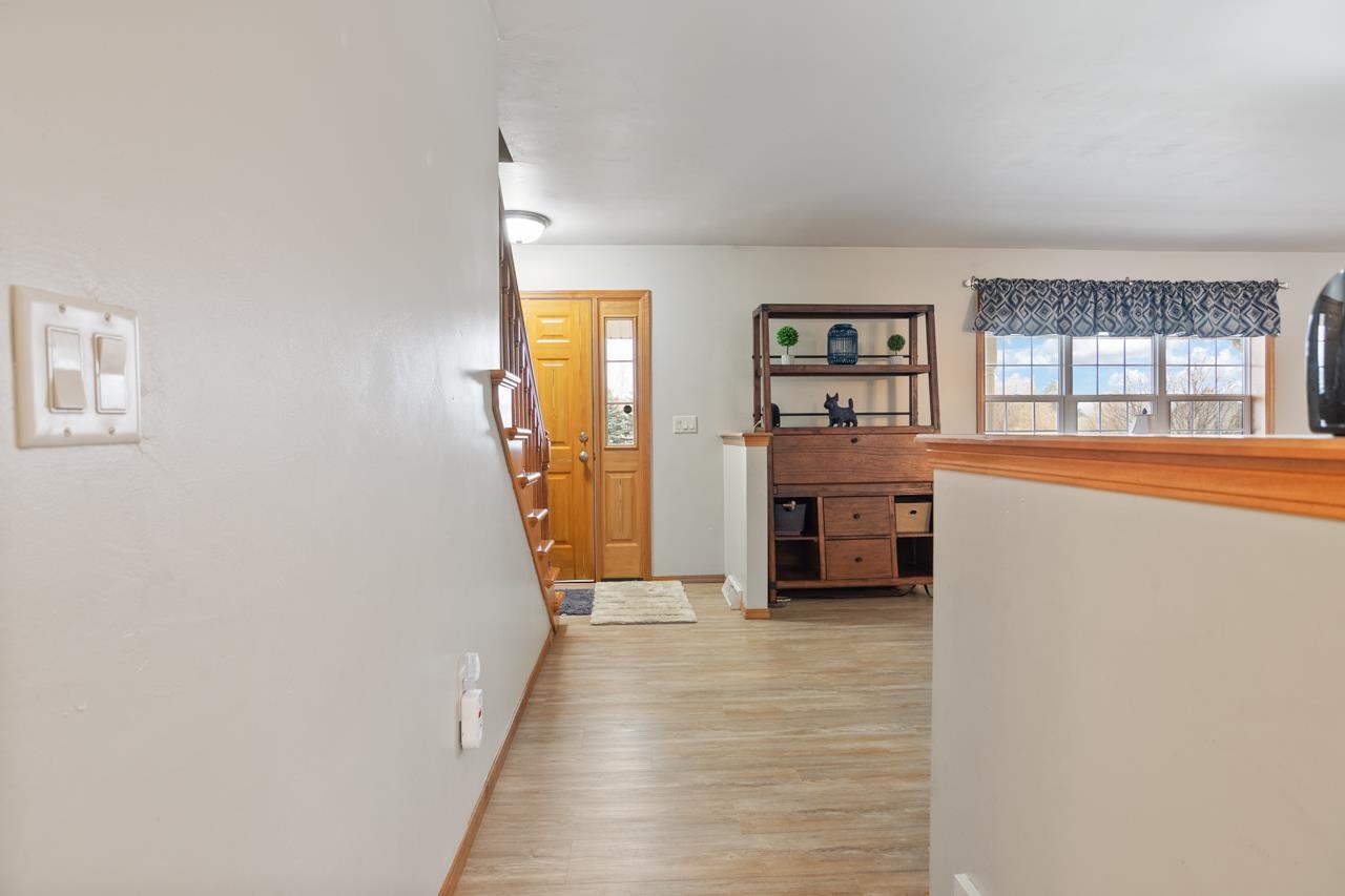 Welcome home to this immaculate, well cared for colonial style, 4 bed 2.5 bath home on .76 acres! LR incl gas fireplace which opens to kitch w/maple cabinets, newer quartz countertops & updated flooring throughout. The main level is completed with laundry room and 1/2 bath. Garage is drywalled & offers attic access. The upper level has 3 bedrms; prim bedrm with w/i closet & prim bathrm. Bedrm 2 has a w/i closet as well, the 3rd bedrm & additional bathrm complete the upper level. There is room to entertain in the lower level with a family room w/ surround sound, sound system not incl. 4th bedrm with egress window & office finishing out the basement, sump w/ battery backup. Yard has a newer shed & fenced area. Updates incl roof, furnace, quartz ctr top, flooring thru out. 48 hours acceptance