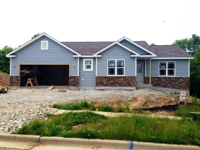Complete in August, beautiful ranch w/ walkout basement for future expansion and private back yard! Foyer leads to big great room with triple patio door. Big open kitchen with pantry. Split Master suite with his/hers WIC'S and private bath. Extras include exterior layered double wall system, Focus on Energy and Green Built certified, round corner knockdown drywall finish, wood laminate flooring in select areas and walkout basement for future expansion. 30 year dry basement and 10 year structural warranty!