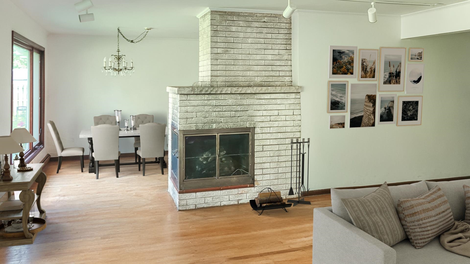 sellers personal property, chandelier in dining room and mirror in powder room