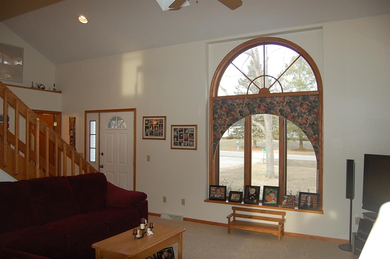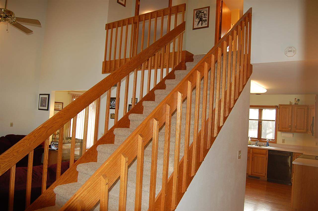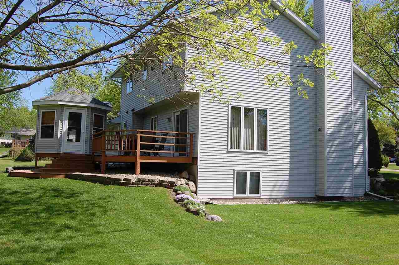 Peace and Quiet 3/4 Acre lot next to park. Large eat in Kitchen breakfast bar, Oak cabinets Hardwood floor, over looking Park. Living Rm has vaulted ceiling, wood fireplace. Master Suite Master Bath Double closets. Exposed Lower Level with game rm, theater area, bar. Nicely landscaped yard, 2tiered deck, Gazebo with windows. 12x20 Storage Plus 3 Car Garage New Furnace/AC and well pump in 2013 SF measurements are approximate