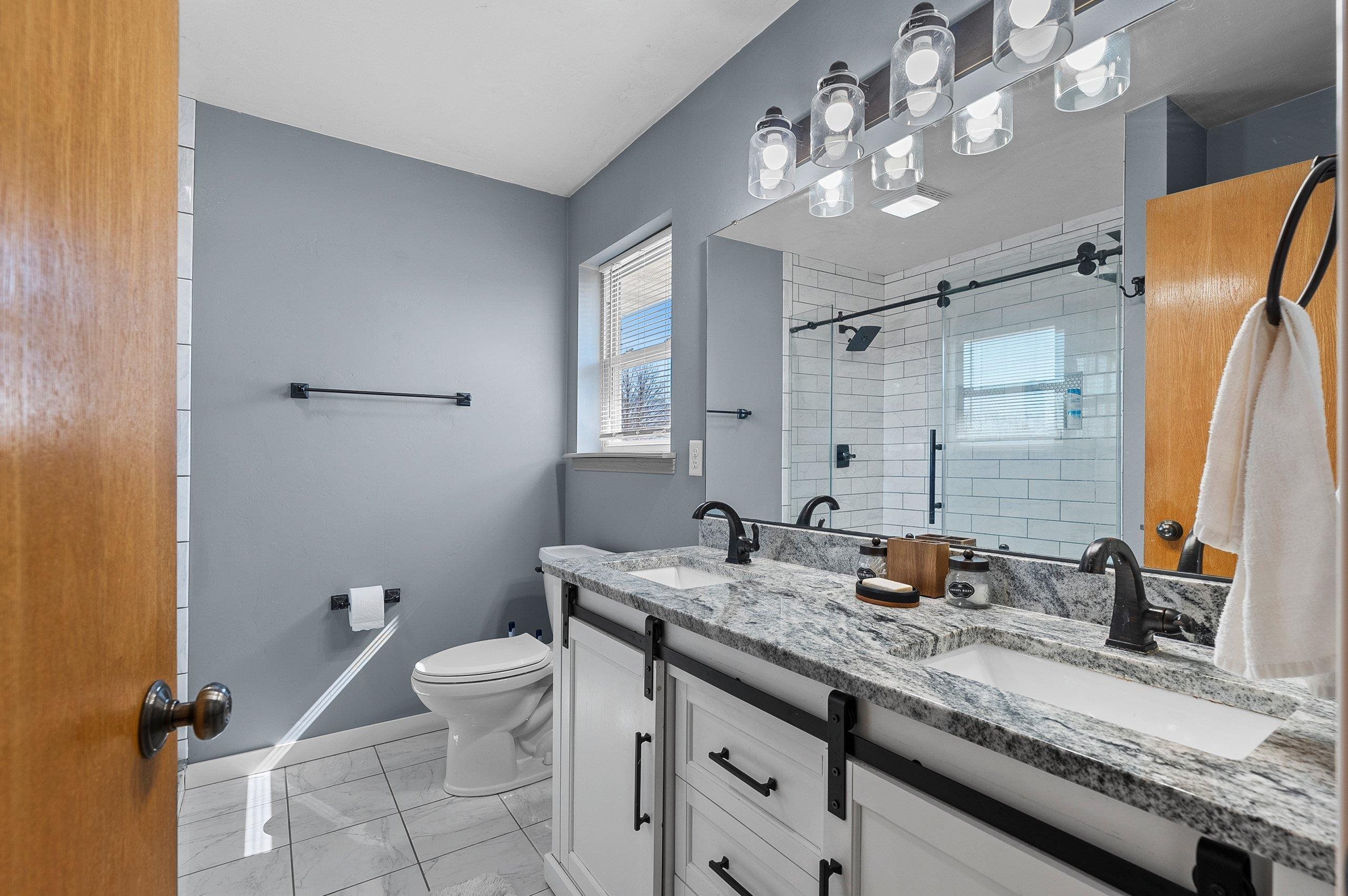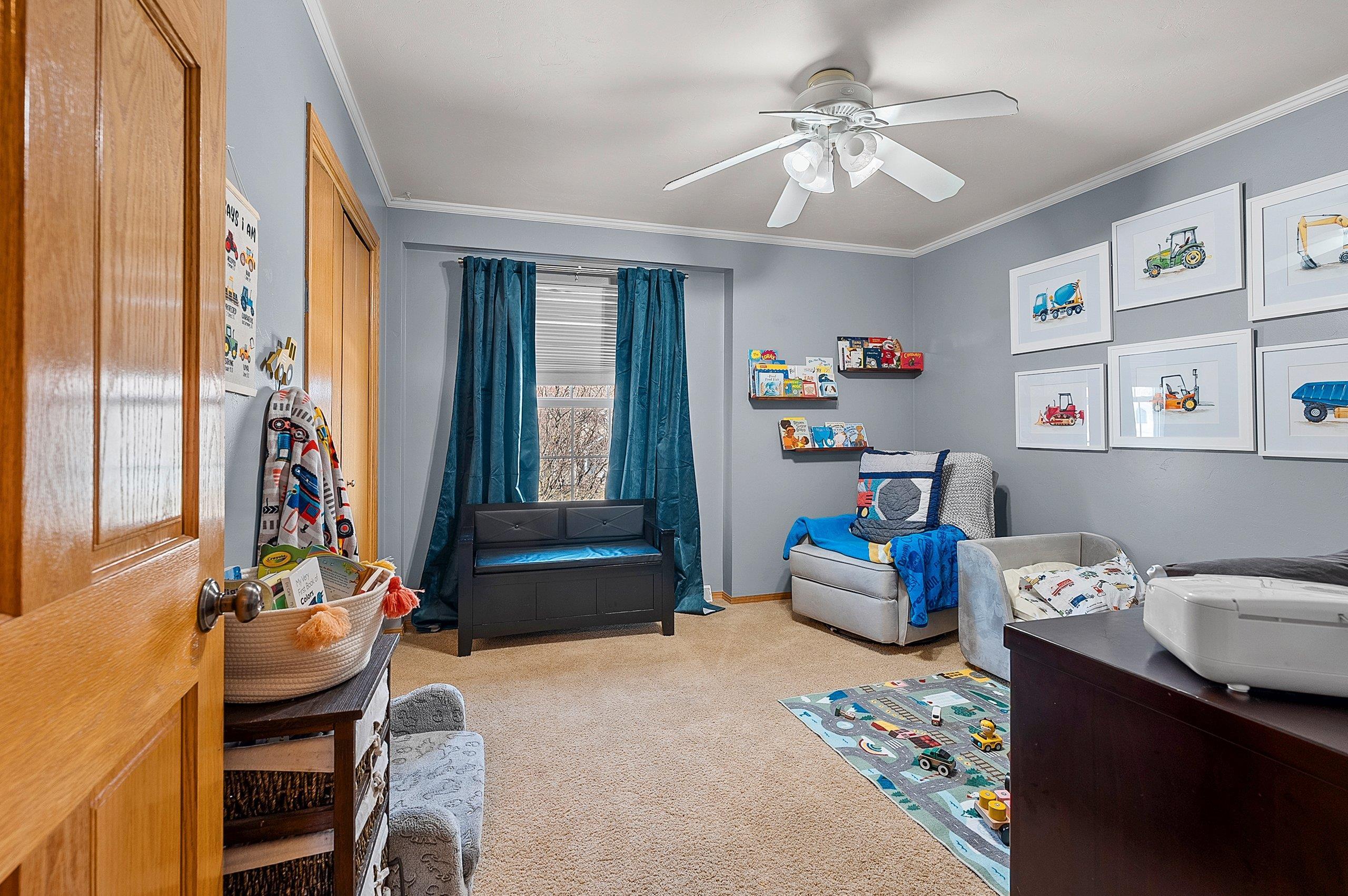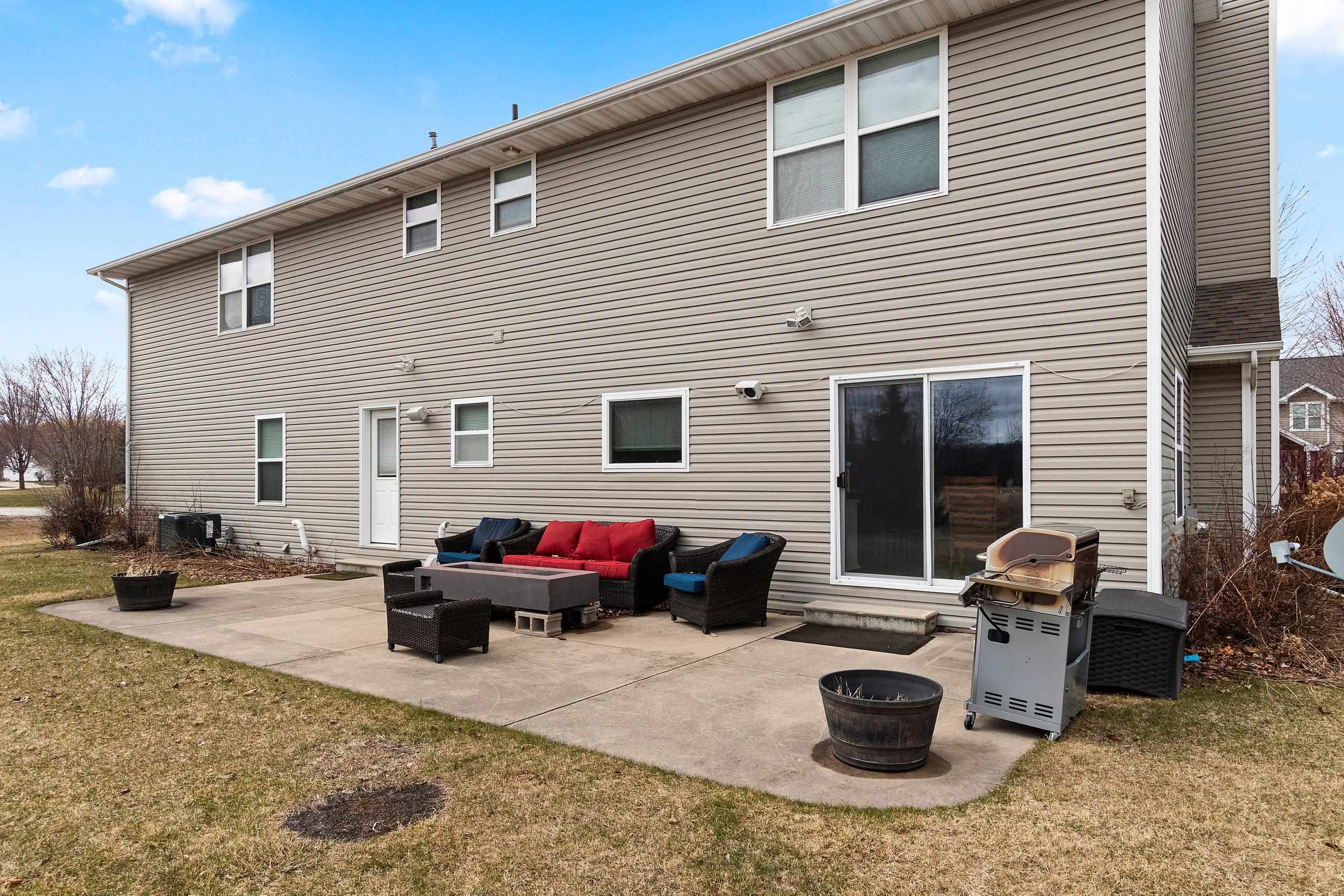 Spacious Ledgeview home in a great location - walking distance to parks, schools, East River Trail, restaurants and shopping! Home features updated kitchen w/granite counter tops, custom back splash, SS apps & gas range; huge living room has stone fireplace; 1st floor laundry w/built in lockers; 1st floor den or possible 5th bedroom (no closet). Upper level has spacious master bedroom w/walk-in closet and updated full bath; 3 other bedroom with updated shared full bath. Finished lower level w/family/rec room & full bath with steam shower. Landscaped lot with patio. 3 stall attached garage. Roof is original. Furnace new in 2025.