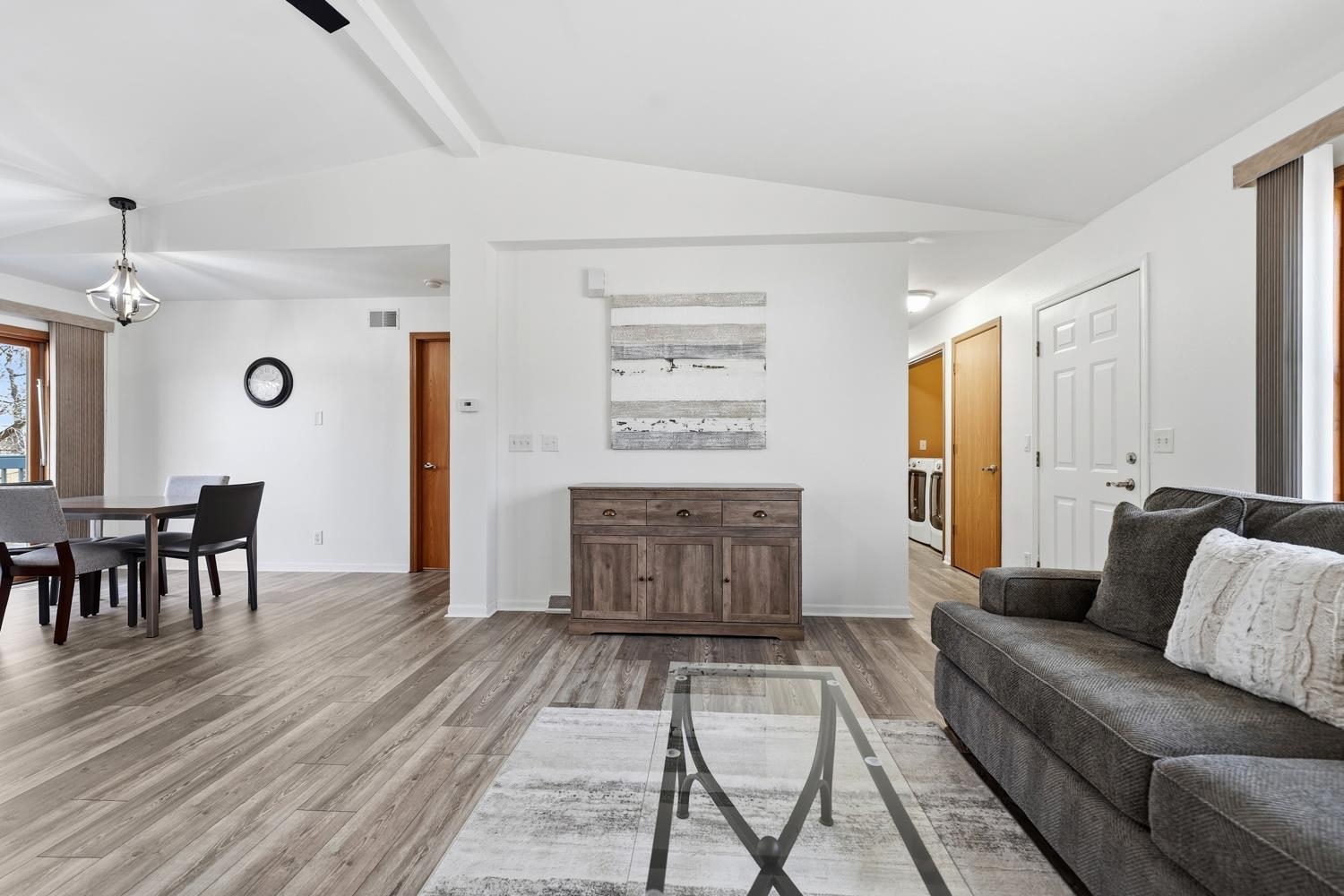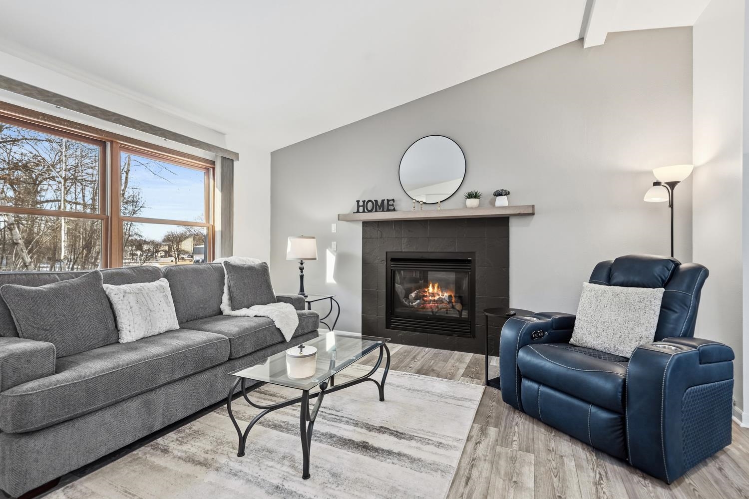 Beautifully updated 3BR/2f+2hBA zero lot-line home near parks & Hillcrest School greets w/cathedral ceilings, brightly painted interior ('25), all-new flooring on main & upper levels ('25) and living room w/gas fireplace! Enjoy an open-concept floor plan with a fully-equipped kitchen boasting a suite of Kitchen-Aid ss appliances, extra-large sink, and dining area w/ sliding door opening to freshly painted deck ('25.) Owner's suite w/full bath, glass+tile shower, walk-in closet, and direct deck access. 1st floor laundry w/Maytag washer+dryer & half-bath w/vessel sink complete the main level. Upper level offers a 2nd bedroom & adjacent full bath, as well as a flexible loft area. LL adds over 600 sqft composed of a large 3rd bedroom w/full-size windows, half-bath & storage. 2-stall garage.