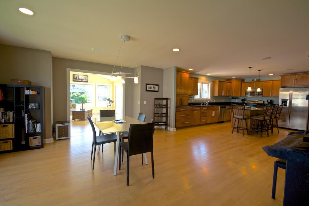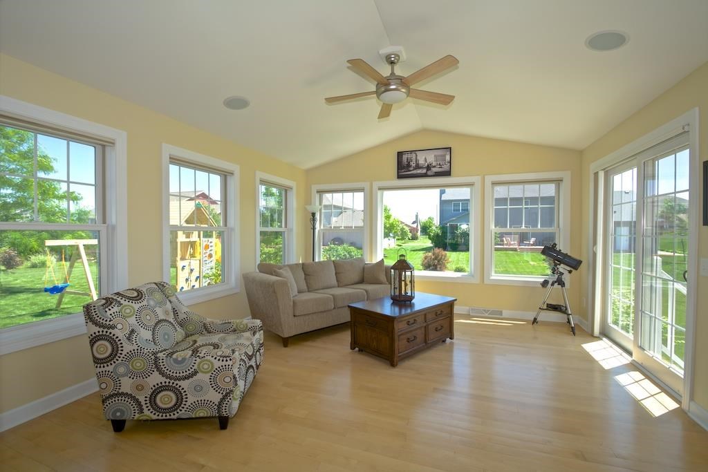 Gorgeous 4 bed Prairie Craftsman in Swan Creek. Open concept w/ spacious rooms, separated by maple floors throughout main level. Enjoy lots of natural light coming in to your kitchen w/ SS appliances, granite counters, and maple cabinets that open to dining, living, sun rooms & custom patio. Master suite w/ walk-thru bath, jetted tub, separate tile shower-dual heads, two sinks, & powder area. Laundry and 3 large beds complete upstairs. Int. home audio thru-out home w/ exc rm, rec room, wet bar, fireplace.