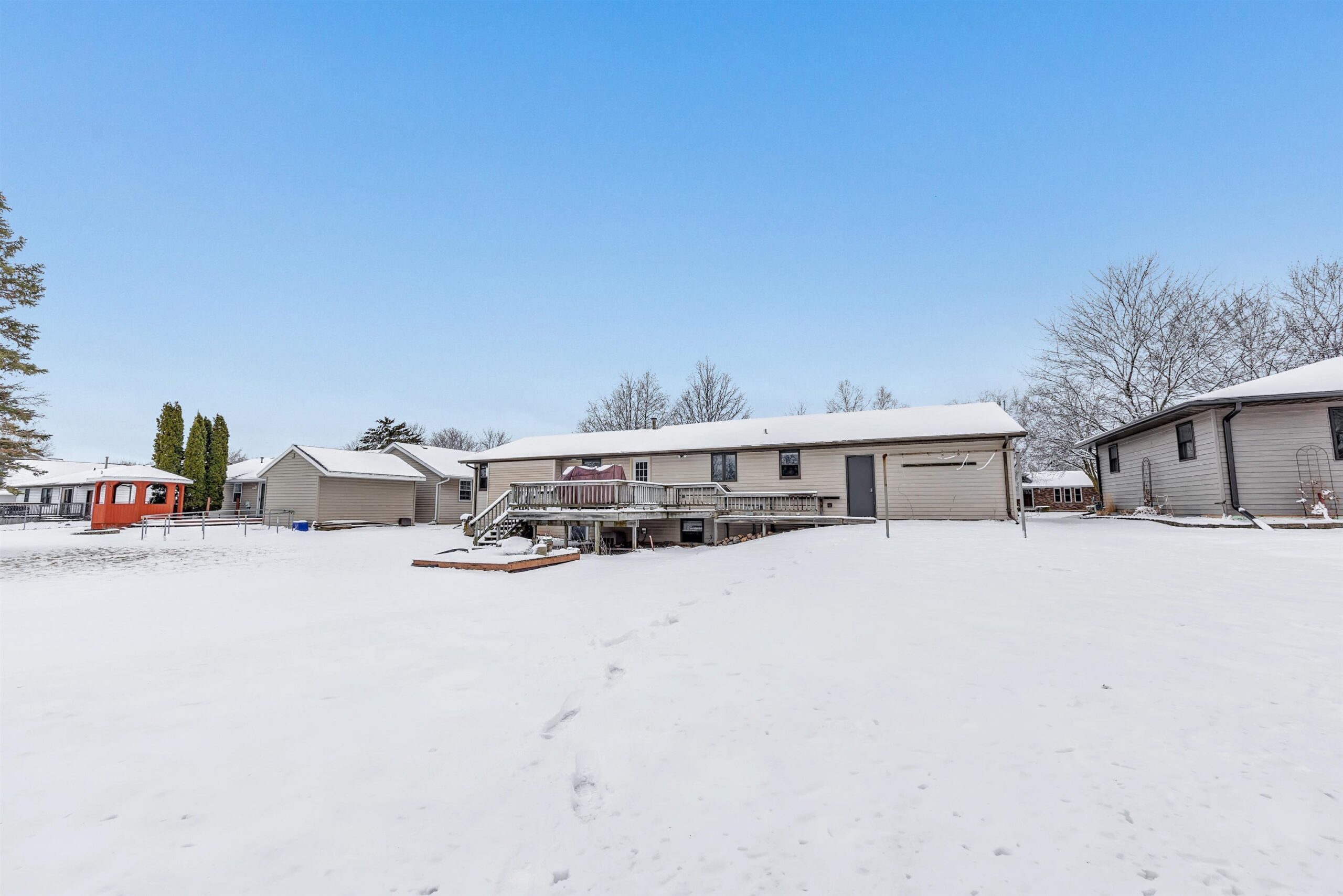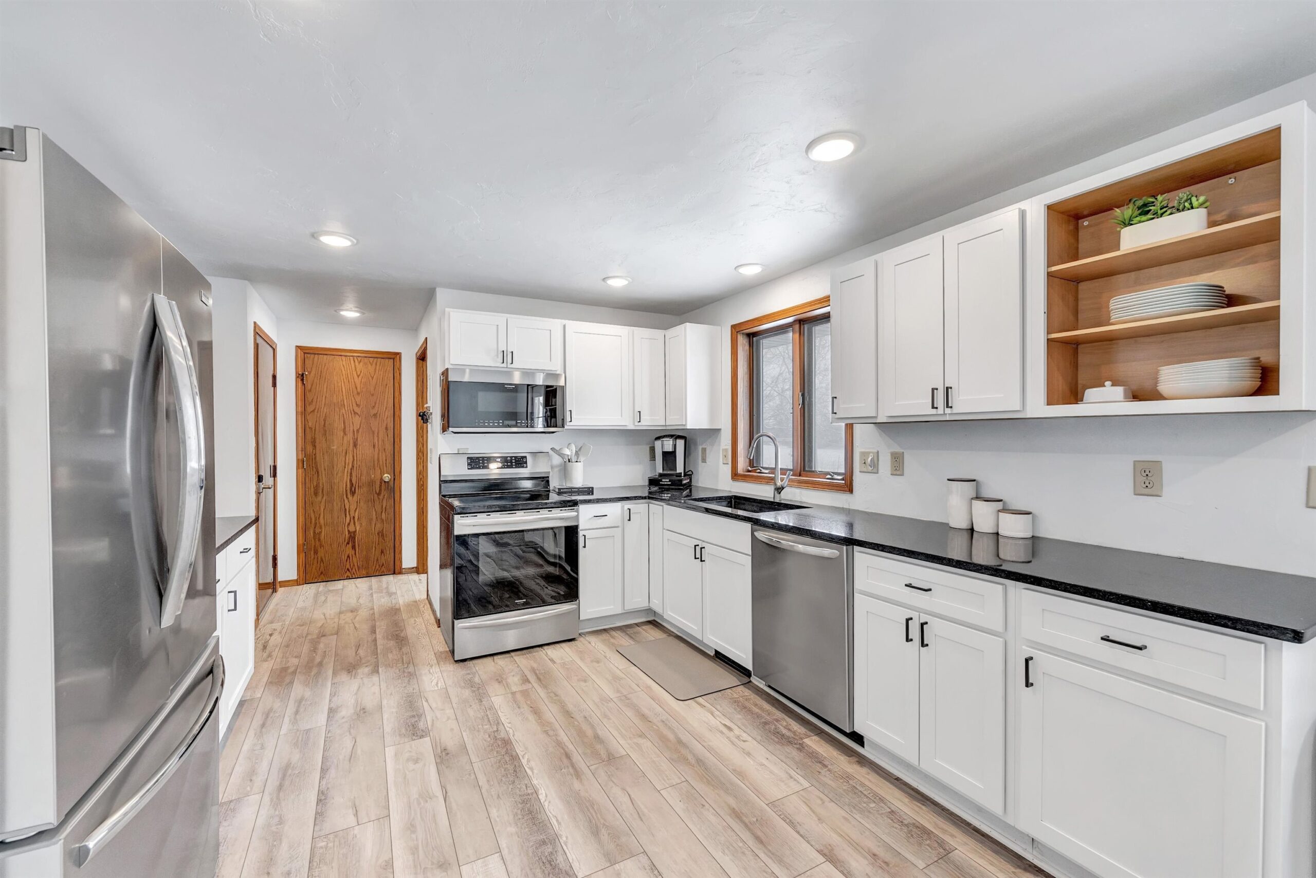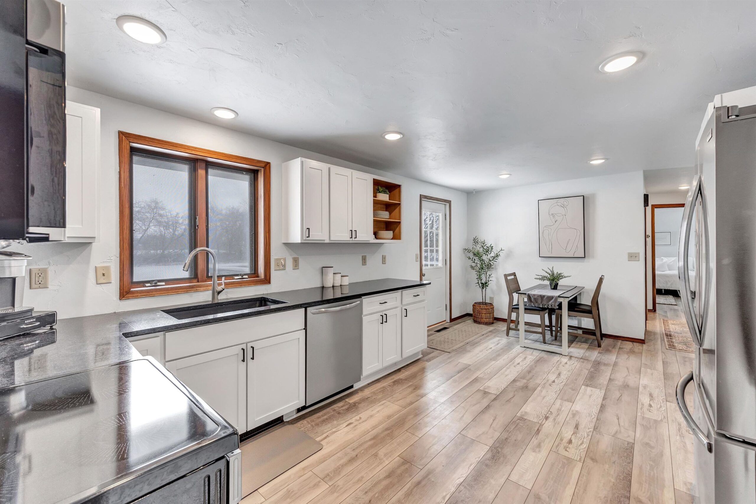 You’ll love all that this beautifully updated 3 bdrm, 3.5 bathrm ranch has to offer! Enjoy the floods of natural light in the spacious living rm creating a warm & inviting atmosphere. Dining area is open to the kitchen & features a door to the deck overlooking the spacious backyard. Kitchen w/white cabinets, granite countertops, & newer SS appliances. Primary suite w/large walk-in closet & stunning tiled shower. A lg 2nd bdrm on the main level is just steps away from another full bath w/ beautifully updated tile shower. First floor complete with the convenience of laundry and half bath. The LL expands your living space w/ rec room, 3rd bdrm, full bathrm, & plenty of storage. Luxury vinyl flooring throughout the main and LL. 2.5+ car attached garage. Offers reviewed no sooner than 4/1/25