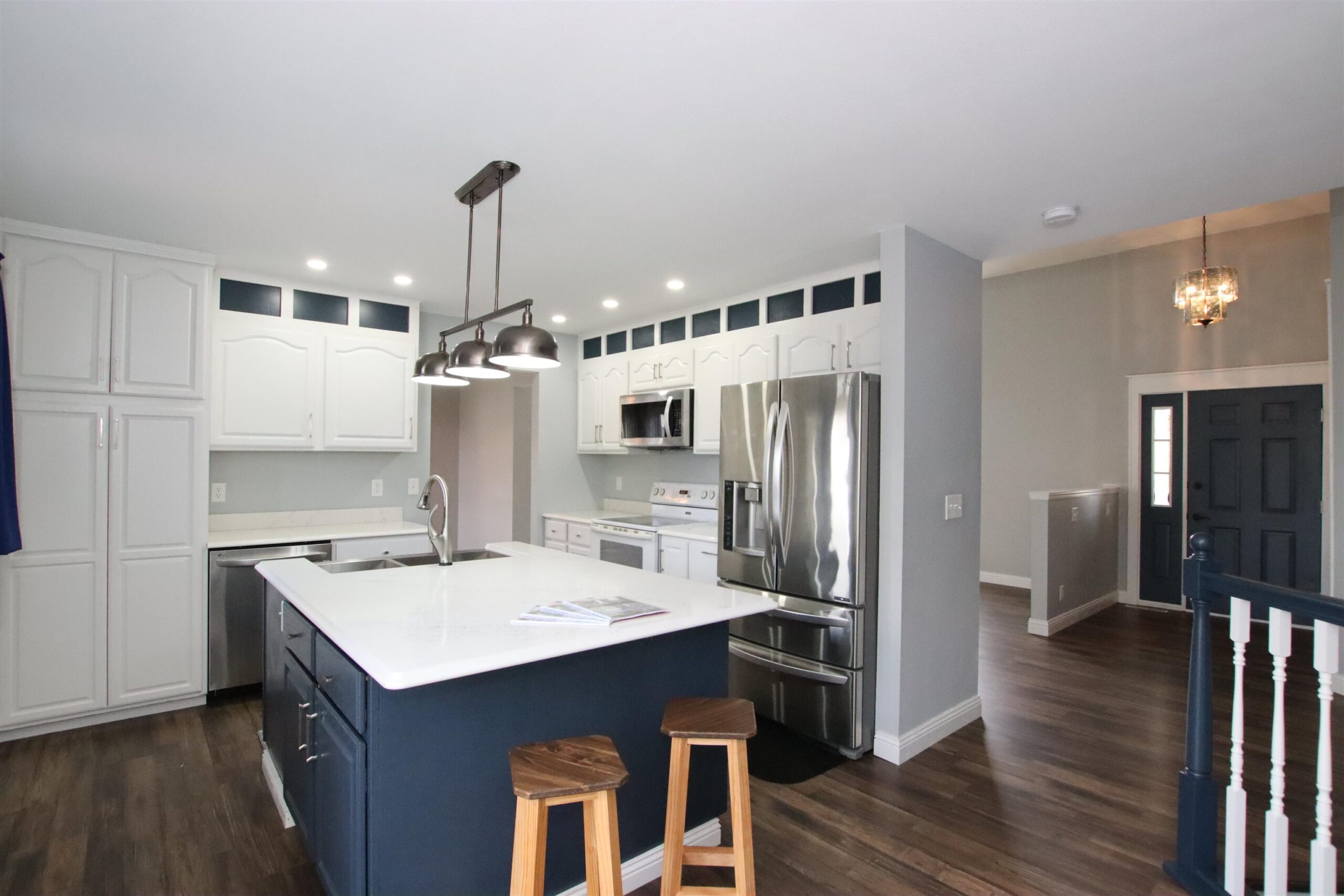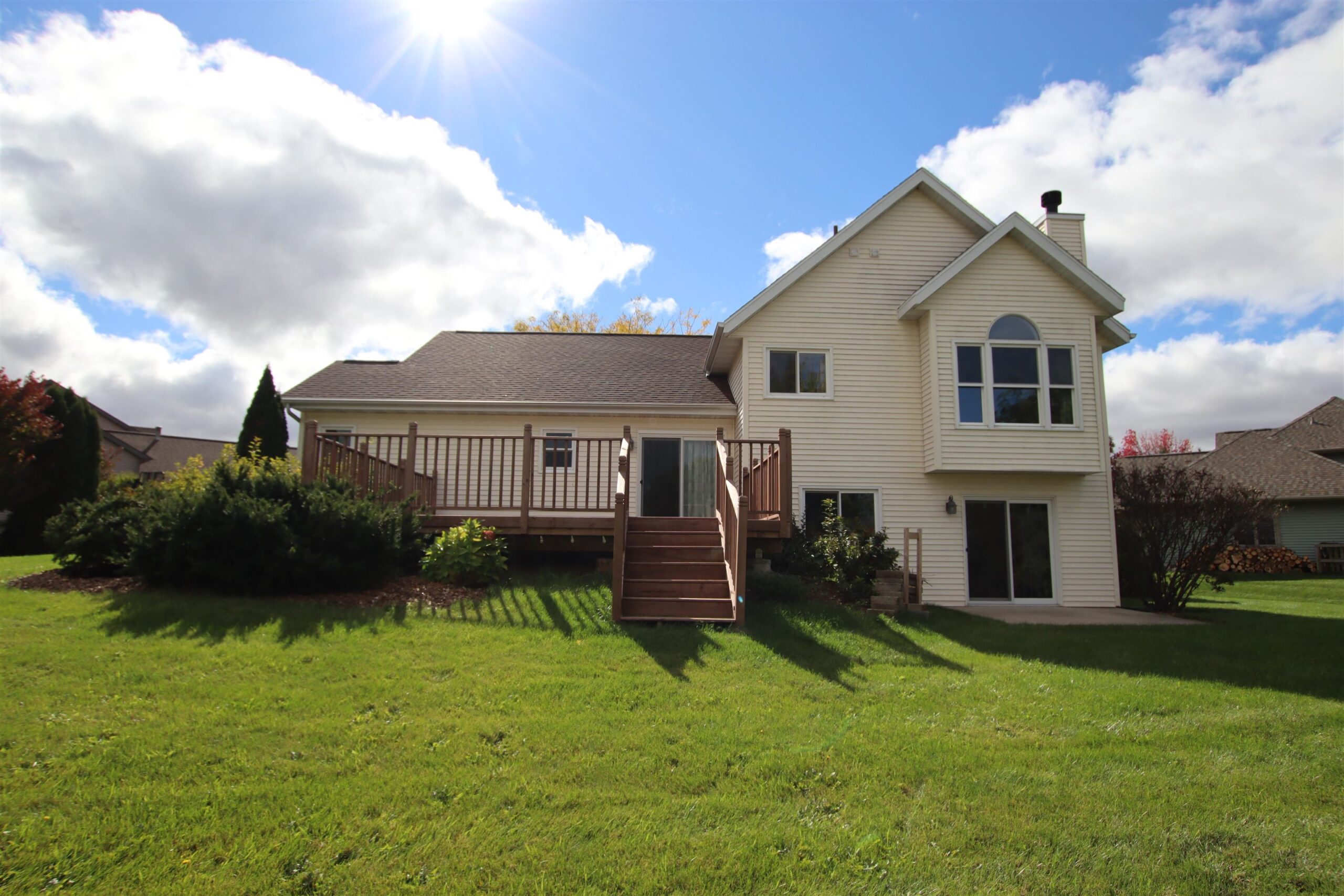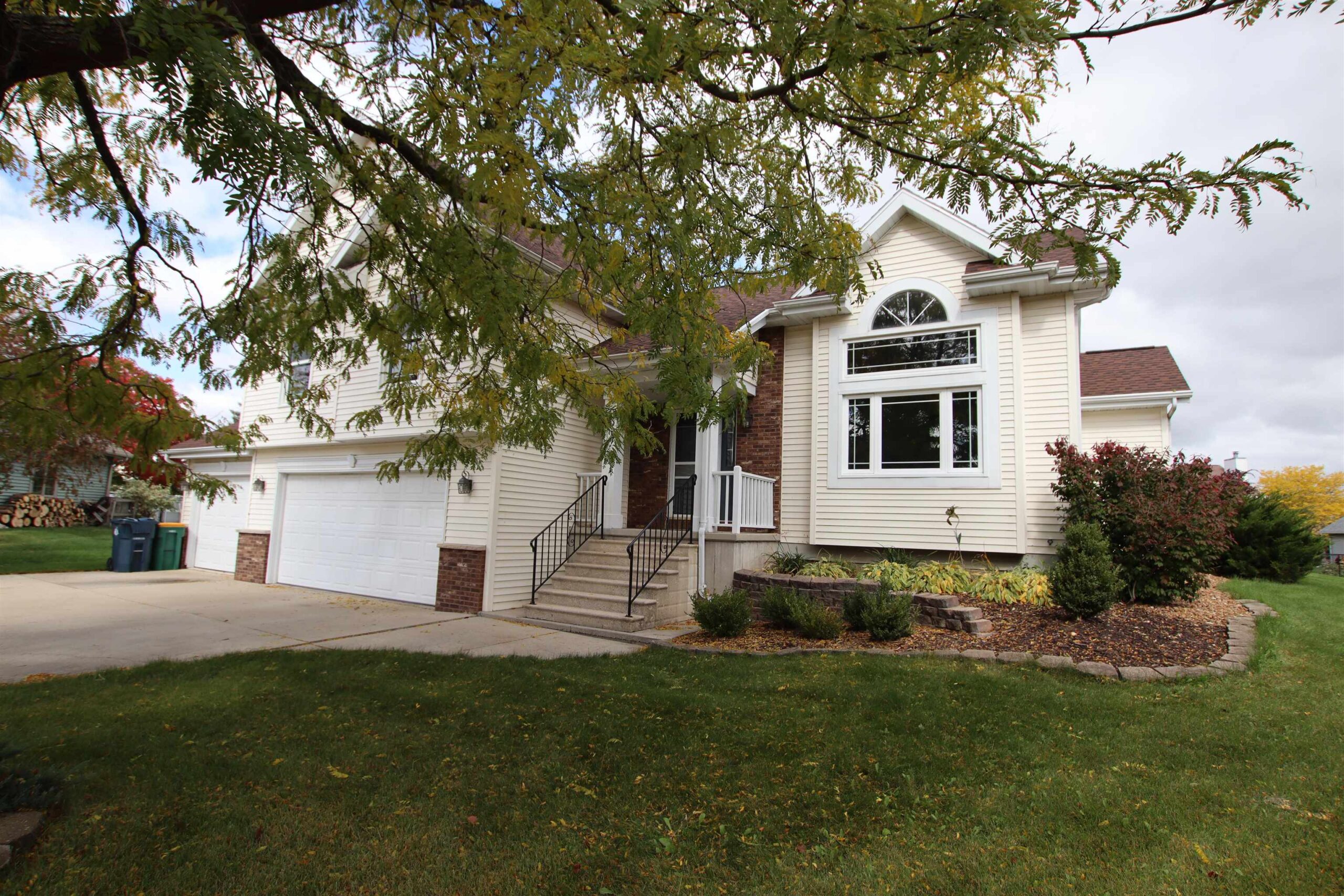 Soaring vaulted ceilings will WOW you when you enter this beautifully updated quad level home! 4 Bedrooms, 2 separate living room spaces (one with a fully working woodburning fireplace), 2.5 bathrooms, and formal dining area along with an eat-in kitchen. Nicely updated kitchen, featuring the farmhouse sink in the island. New flooring, newer windows and roof, upper deck area and lower patio space, and a large, end of the cul-de-sac lot! 3.5 car attached garage, main floor laundry with an awesome mud room space, and spacious primary suite! All of the space you have been searching for!