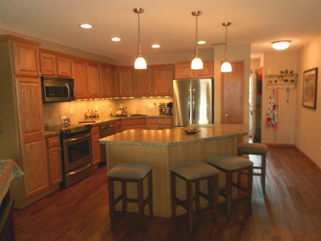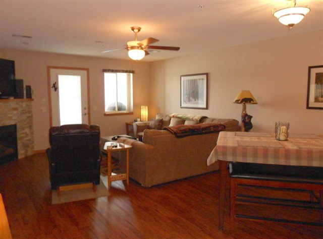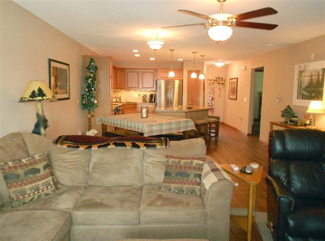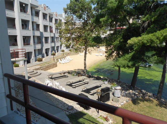 Elegant garden style waterfront condo on Premier Lake Delton. Enjoy cozy evenings by the gas fireplace or watch the action on Lake Delton on the huge balcony. This spacious 2 bedroom, 2 bathroom condo has it all, durable Earth Trex flooring, ample kitchen with island and stainless steel appliances, ample master bath with jetted tub. Building has elevator and is handicap accessible and sprinkler system. Amenities are pier, boat slips, pools, and step to beach for the kids to play!! Sold furnished for $227K.