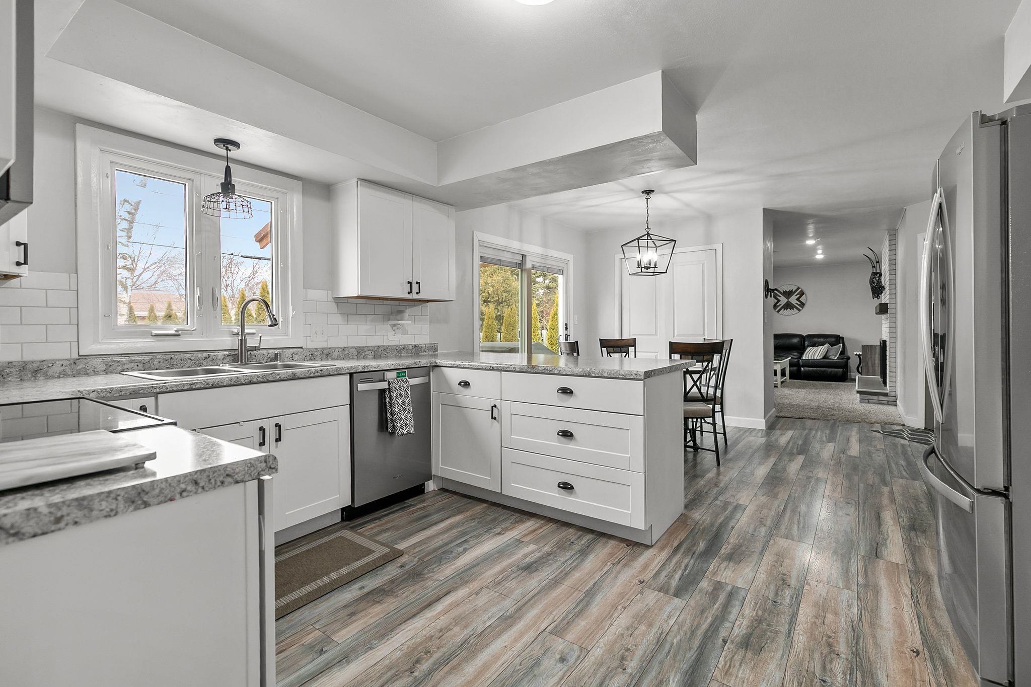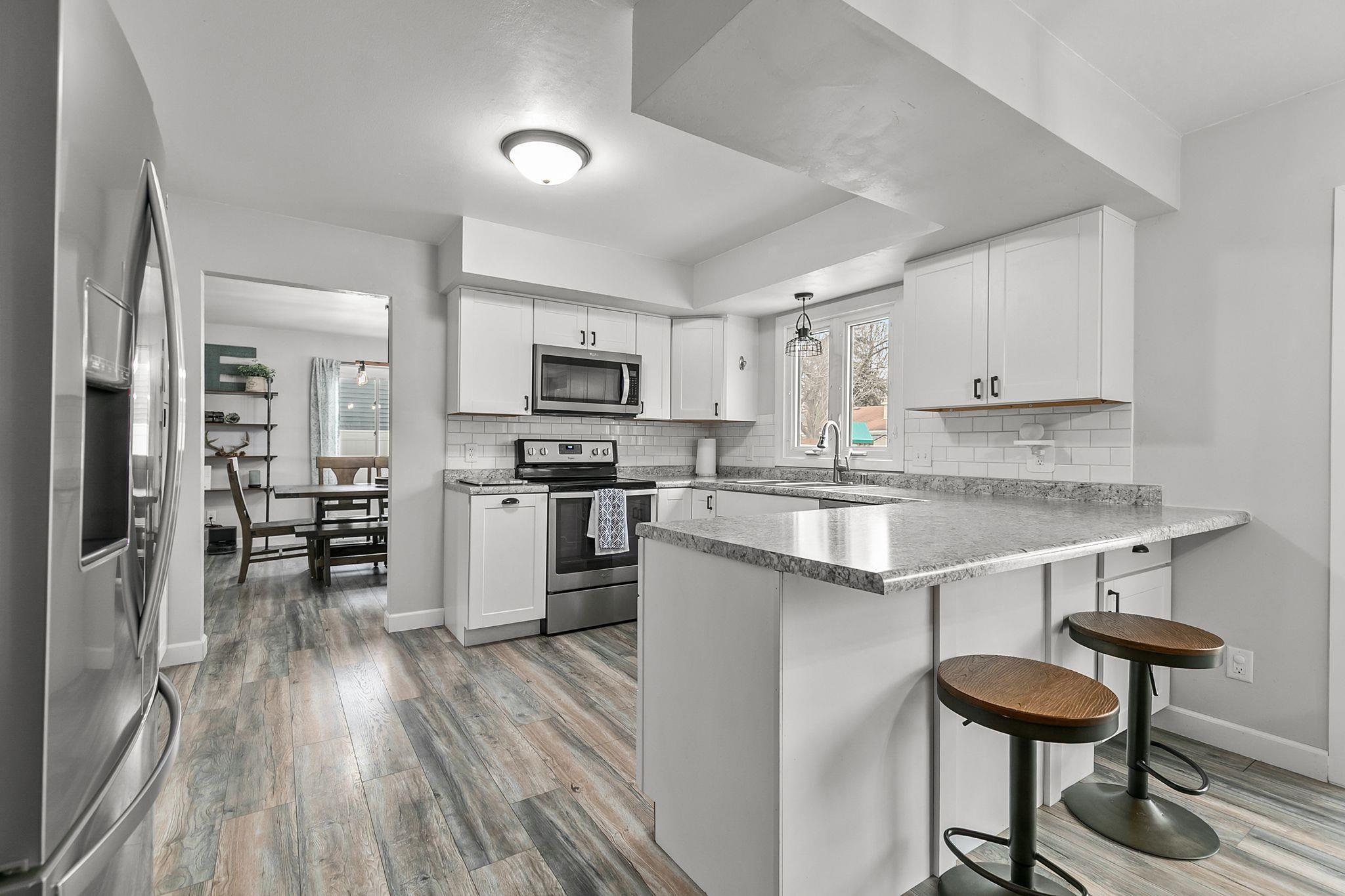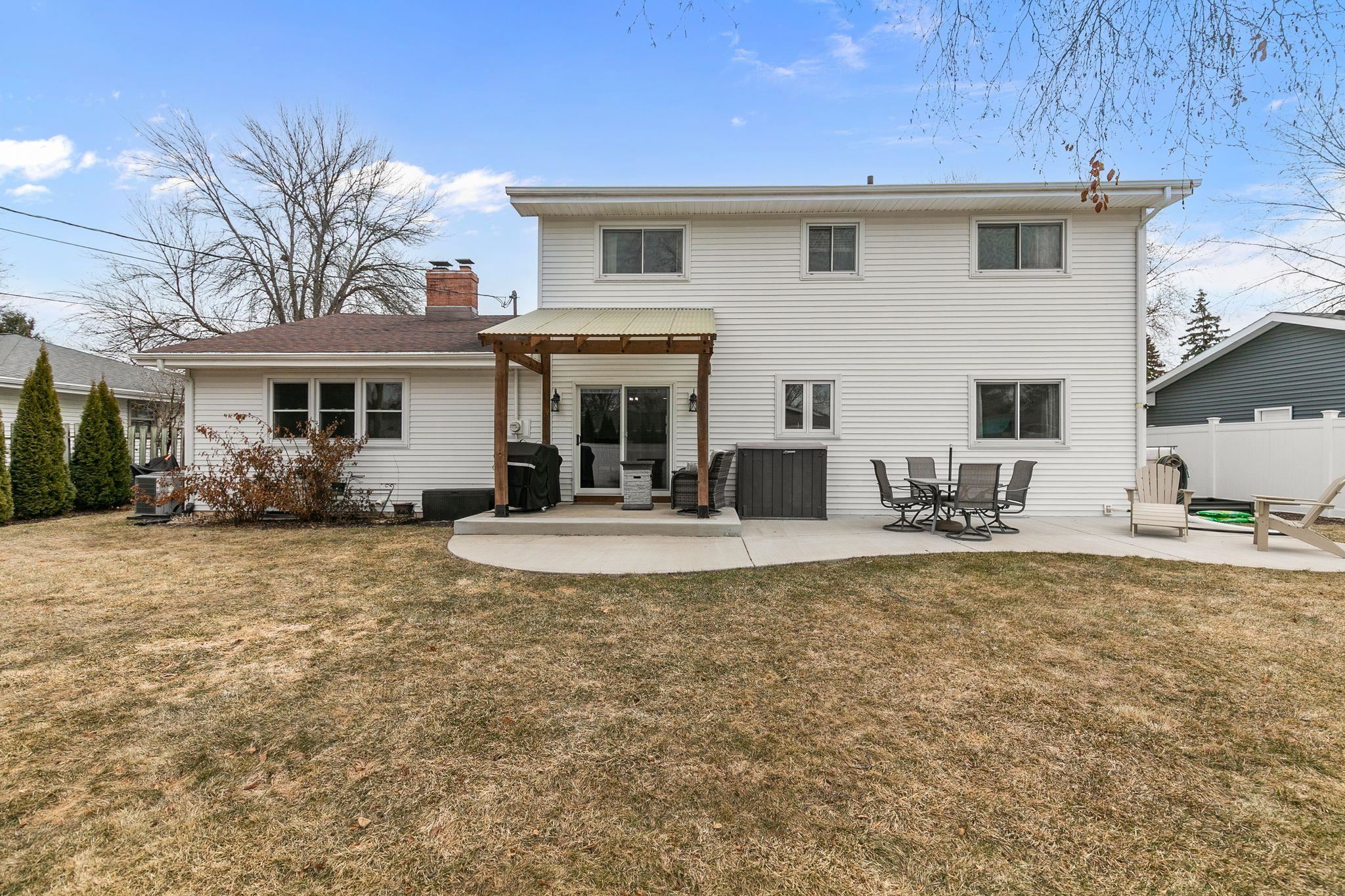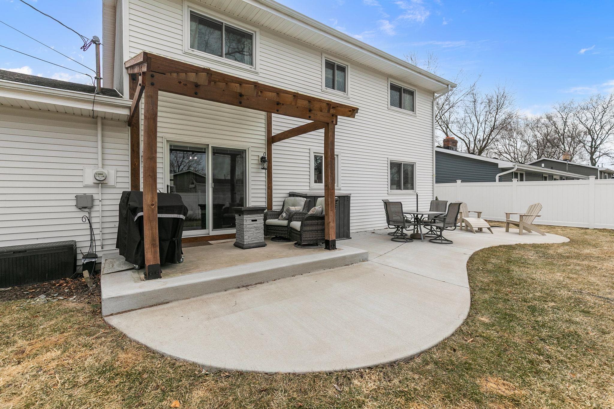 Welcome home to this updated 4 bedroom, 2 bathroom home full of extras! Inside you will find 2 spacious living rooms, dining room, and an updated kitchen with an eat in dining area. This area leads to the patio doors to a new pergola and extended concrete patio! Upstairs is 4 spacious bedrooms and lots of natural light. Basement has a rec room that has been recently updated with flooring and painted ceiling. Outside an extra wide slab for the driveway was poured on the side for storage. Home is complete with a fully fenced in yard. You don't want to miss this one! LL rec room has exposed floor joists for ceiling
