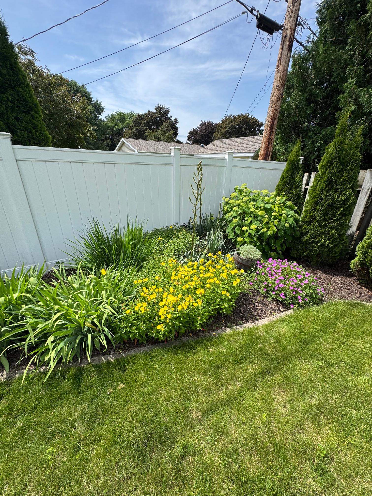 Refrigerator, dishwasher, stove, microwave, basement refrigerator, basement chest freezer, 4 raised garden beds, pergola cave lighting, trellis.
