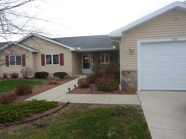 Enjoy easy living in this 55+ condo community in the thriving Village of Cambridge. South facing heated Sunroom offers plenty of light and some of the best country views in this project. Other highlights include an open flooorplan with no steps anywhere in the unit - level entrance from the garage, main door and patio. Kitchen has plenty of storage, multiple work areas and built in table. Low pile carpet makes it easy to get around the spacious dining & living rooms and bath features walk-in shower.