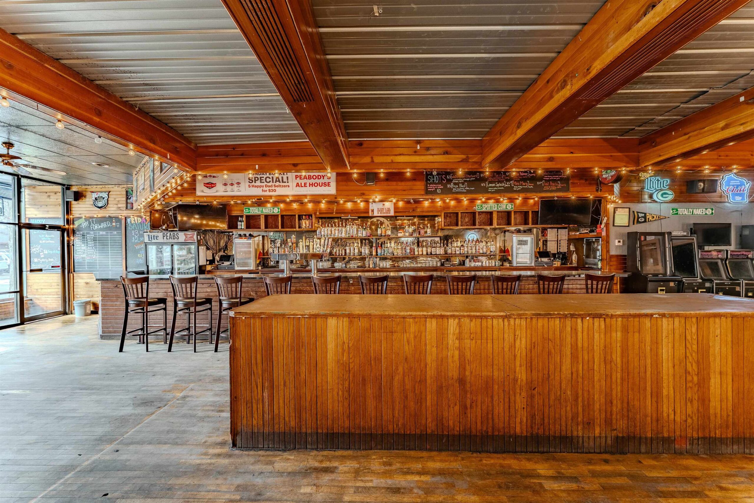 Landmark tavern in vibrant Downtown Oshkosh! This is a prime opportunity for new ownership to write the next chapter at Peabody’s Tavern and Sideyard, or reinvent this iconic space for your own hospitality or retail business. Total property includes the commercial building w/ a turn-key bar operation + liquor license + fixtures (see full inclusion list), fenced “sideyard” entertainment area w/ two outdoor bars, 2 upper residential units and adjacent parking lot w/ 20 parking stalls. Premier Downtown Oshkosh Main Street location in the heart of the community’s commerce and entertainment district, with many year-round events that attract both locals and visitors to this immediate area - including thousands of people each week, right out the front door for the seasonal Oshkosh Farmers Market!