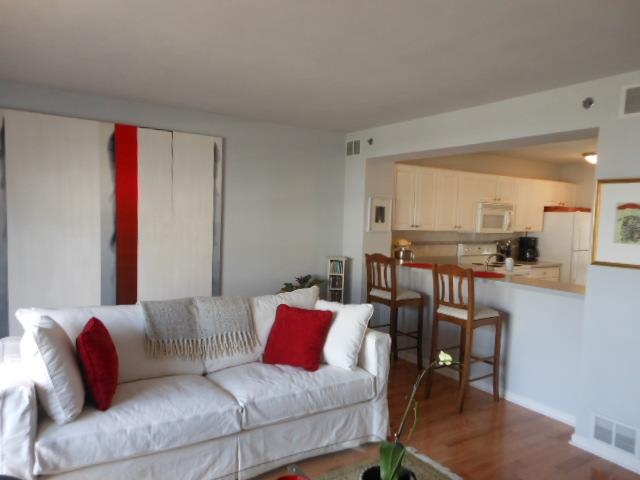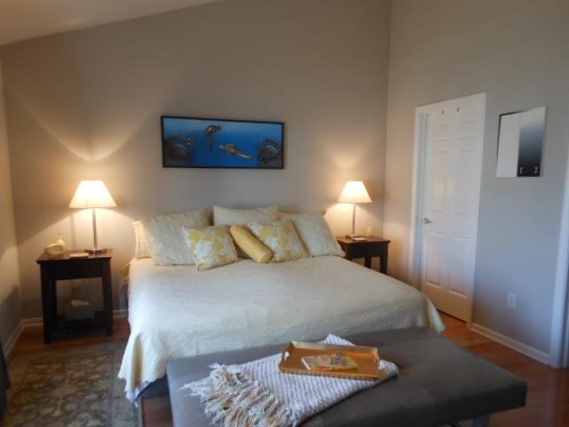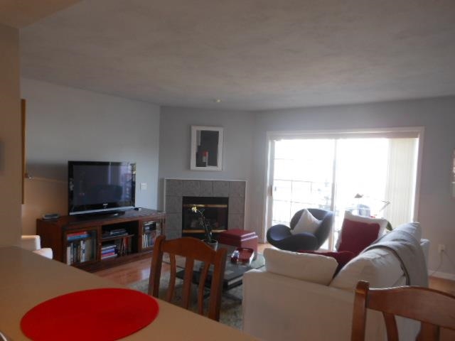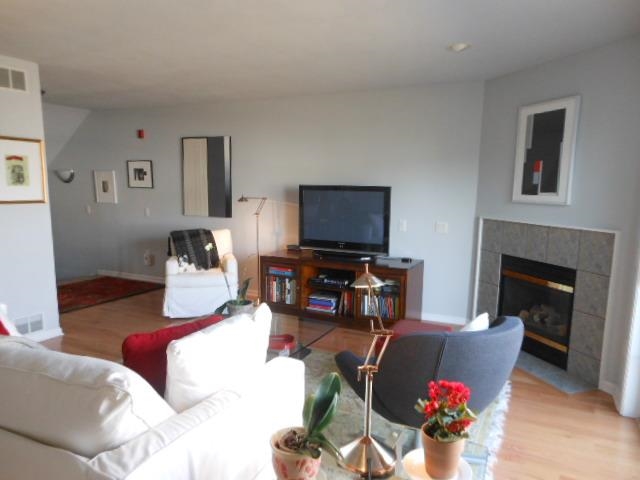 Immaculate & modern townhouse with hardwood floors! Open floor plan. Gas fireplace in the living room, sunny formal dining, breakfast bar & bright kitchen. Vaulted master suite with walk-in closet & bath. Skylights in guest bedroom & bath. Upstairs laundry includes washer/dryer. Finished lower level den/office. Balcony overlooks landscaped pond. Private entry & 2 car garage. Walk to shopping, restaurants. Adjacent to bus line & bike path. Fee includes pool, clubhouse & exercise room. UHP home warranty!