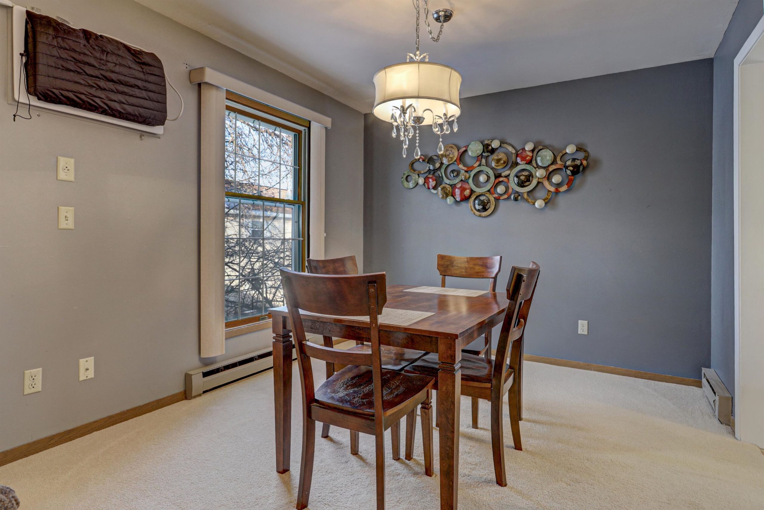 Condo offering a spacious and functional layout with comfortable living areas throughout. The bright kitchen includes a window for natural light and convenient workspace. The living room features a wood burning fireplace and views of the courtyard, creating a warm and inviting setting. The primary bedroom includes an attached bathroom and generous closet space. Additional highlights include a screened porch for seasonal enjoyment, a one car garage, and well maintained common areas with attractive landscaping. Annual condo fees are paid once per year and include lawn care and snow removal, providing convenient low maintenance ownership. Yearly Condo Dues $2313