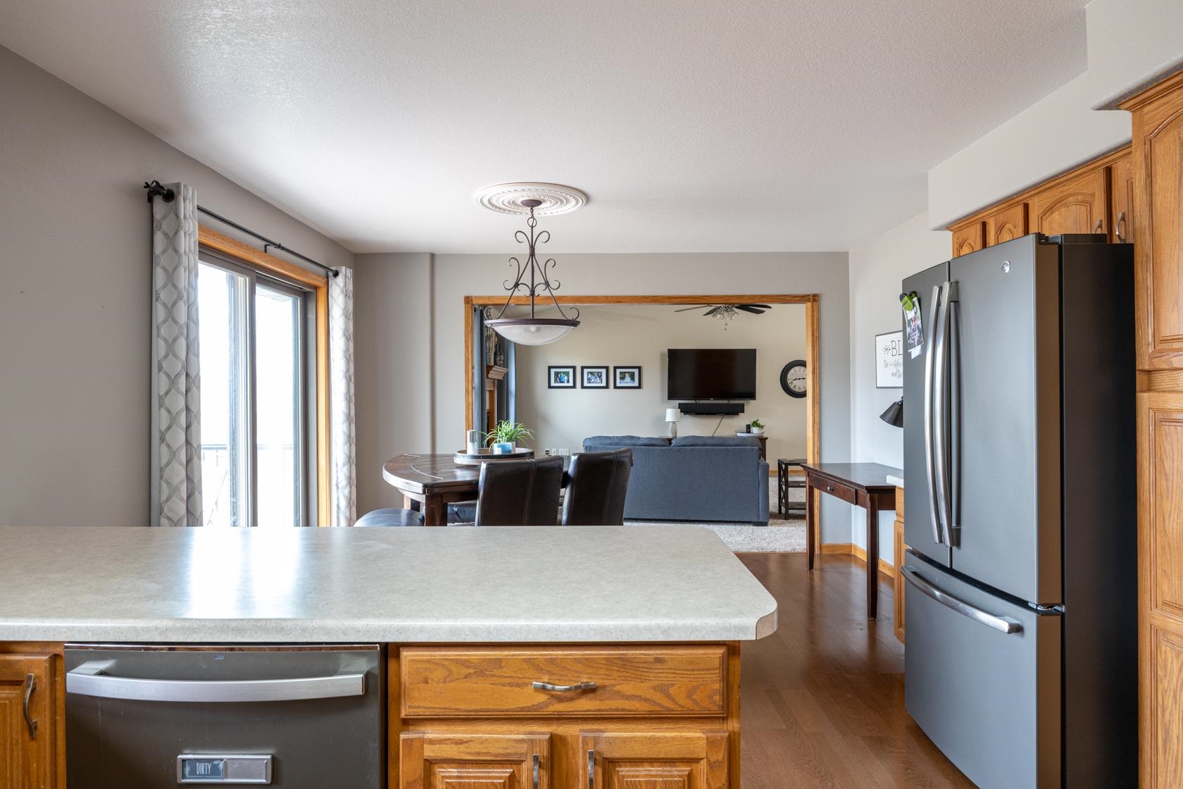 Refrigerator, Dishwasher, Stove, Microwave, Basement Shelving, Garage Refrigerator, TV and Sound Bar in Living Room, Window Treatments