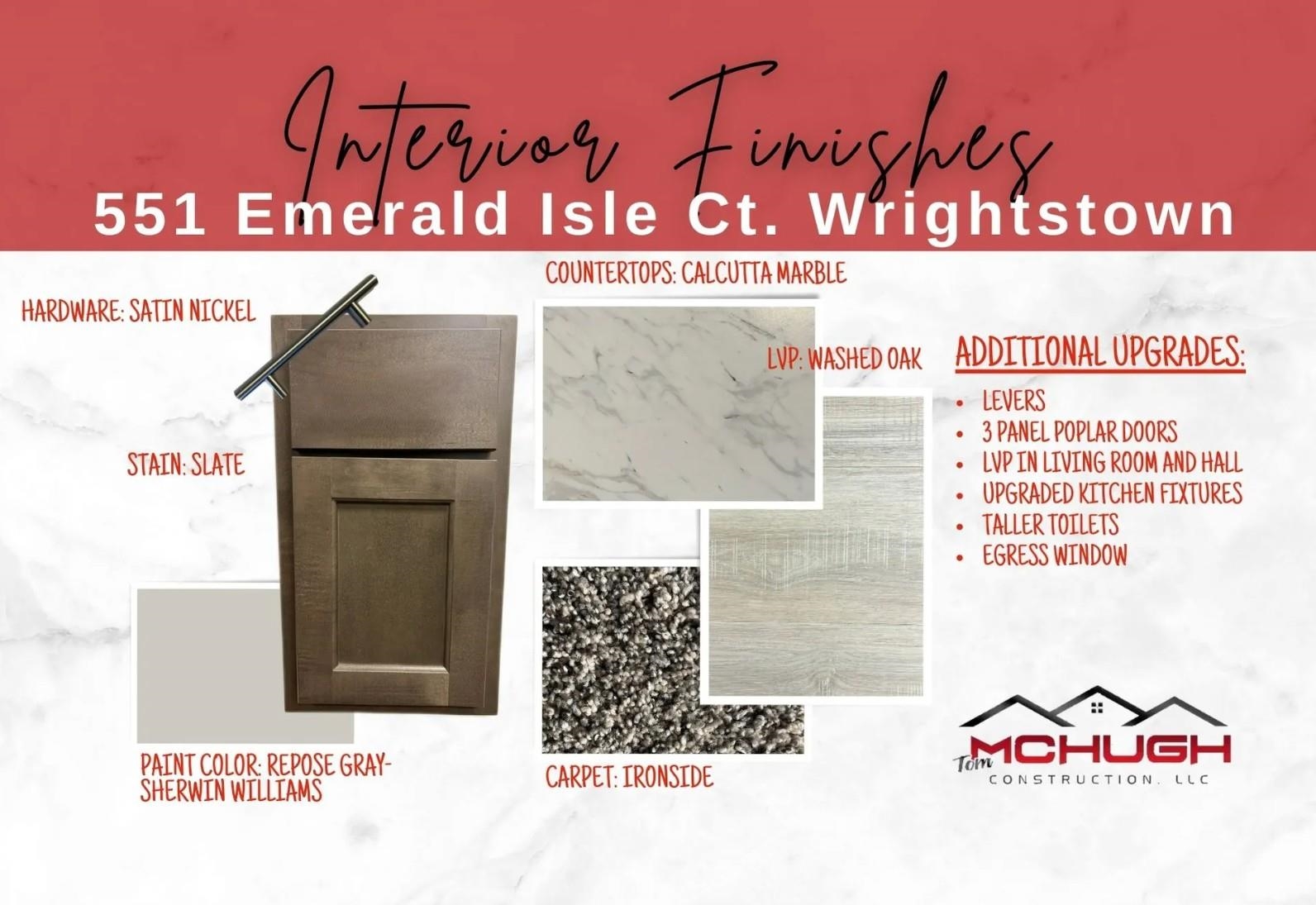 Welcome home by Tom McHugh Construction. This home is will be ready Sept. 5th. 3 bedrooms, 2.5 bathrooms. 3 car garage. Includes-diamond kote exterior on front of home, 4 panel poplar doors, fiberglass exterior doors, insulated garage doors, lvp upgrade in living room and hallways, 1 egress window, driveway to the street (including apron), no street assessments (developer pays for sidewalks).