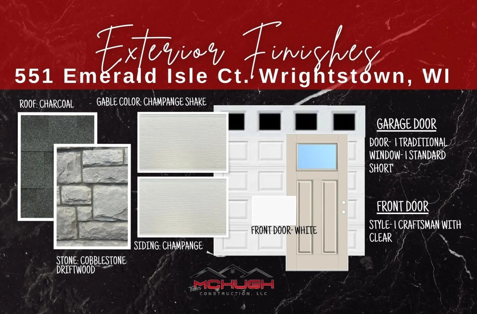 Welcome home by Tom McHugh Construction. This home is will be ready Sept. 5th. 3 bedrooms, 2.5 bathrooms. 3 car garage. Includes-diamond kote exterior on front of home, 4 panel poplar doors, fiberglass exterior doors, insulated garage doors, lvp upgrade in living room and hallways, 1 egress window, driveway to the street (including apron), no street assessments (developer pays for sidewalks).