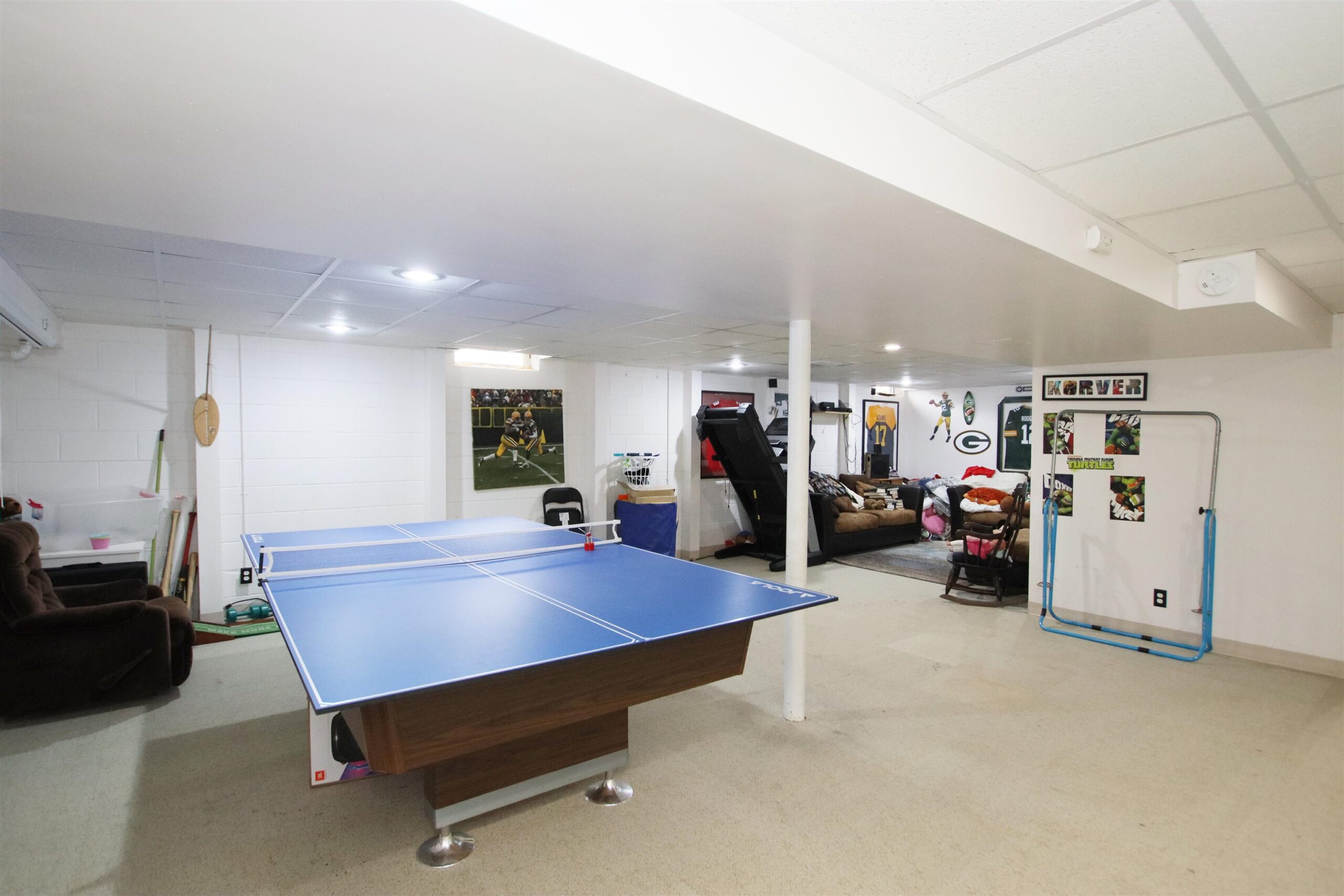 washer, dryer, fridge, stove, dishwasher, microwave, pool table in basement, window treatments, cabinet in basement, ring camera, swing set
