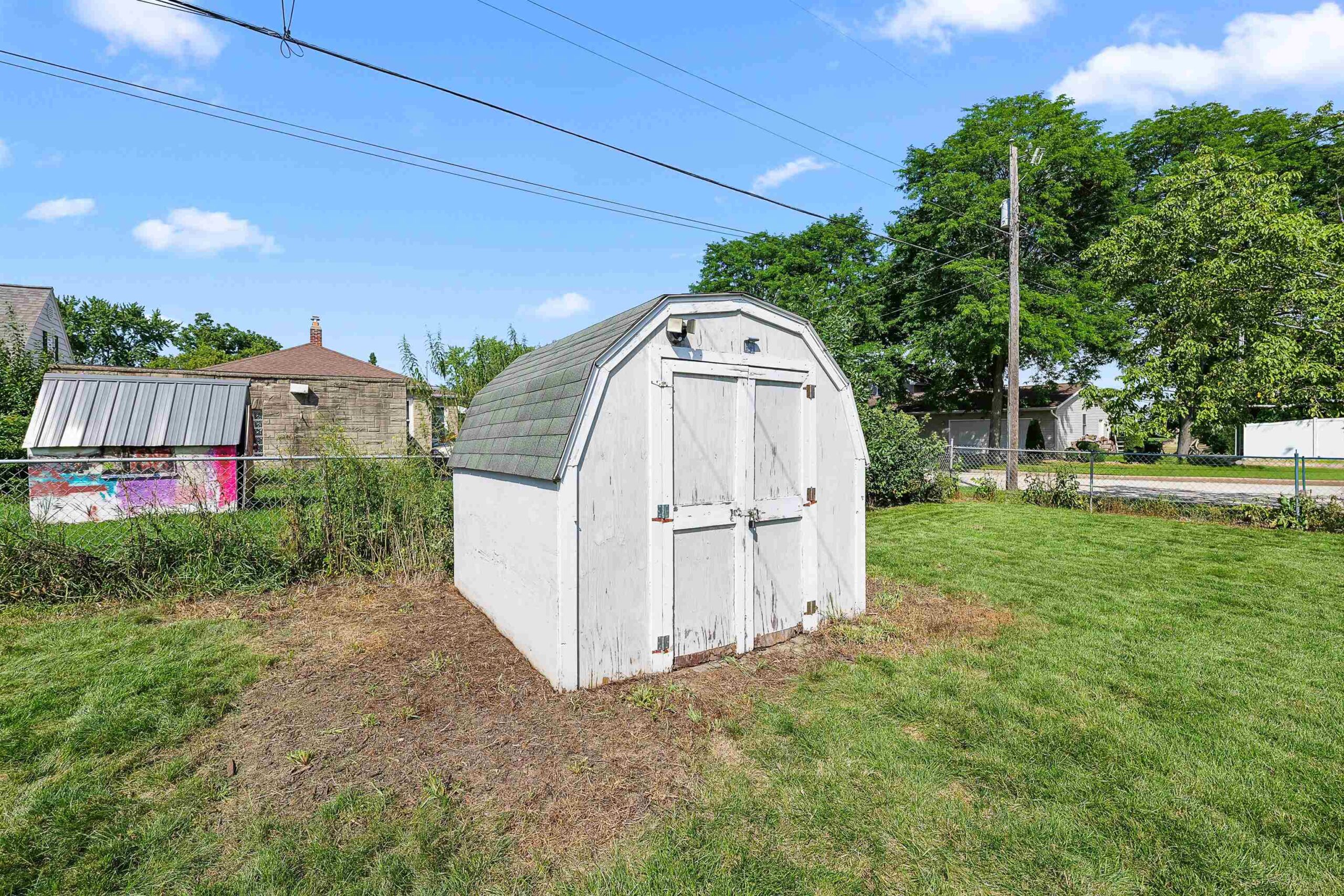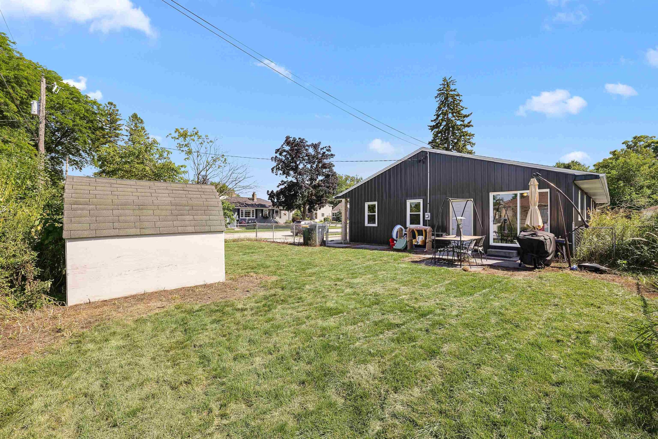 Refrigerator, stove/oven, microwave, dishwasher, washer/dryer. Shed in backyard