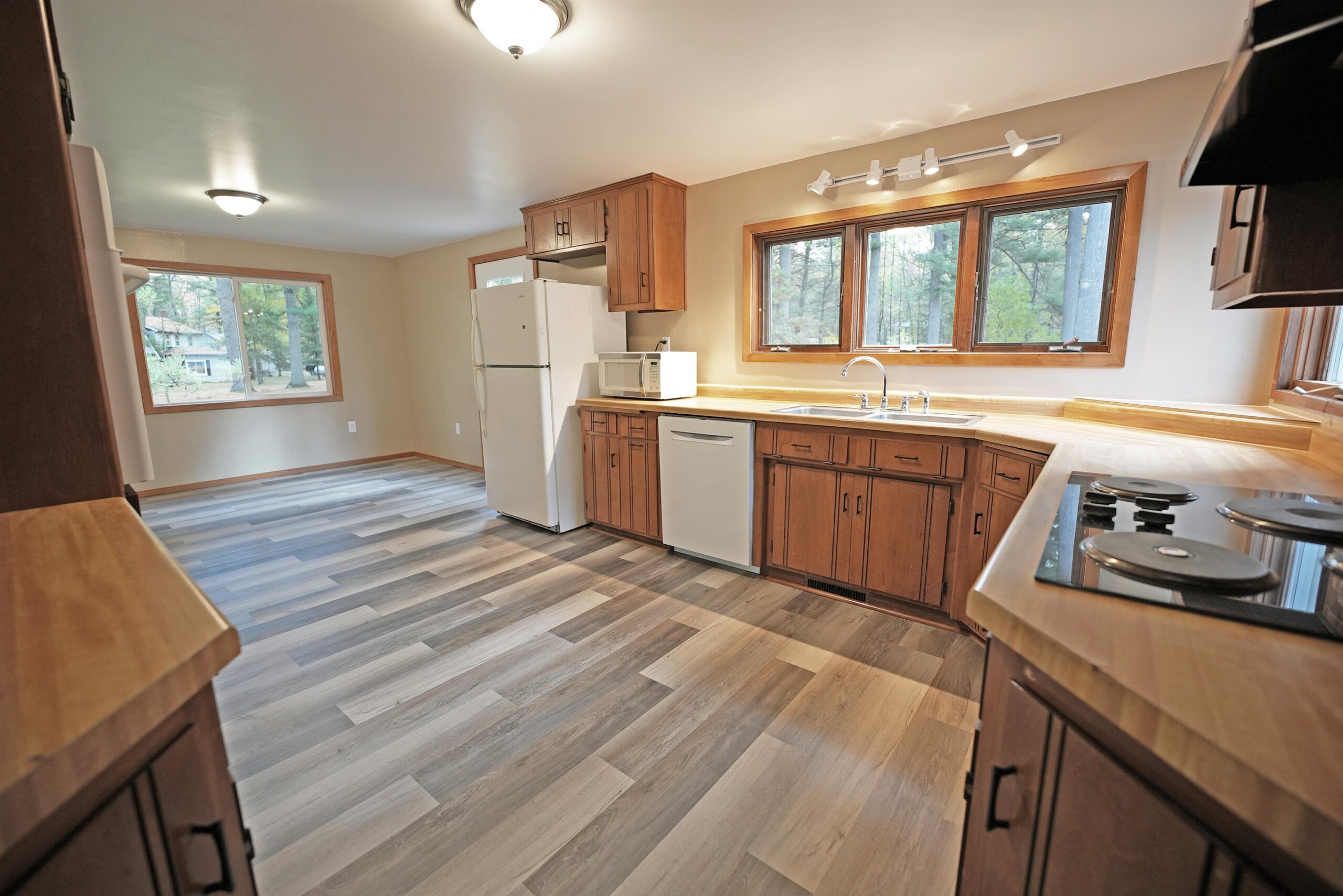 Discover this spacious and inviting home near Gillett, walking distance to Berry Lake! The main level features a large living room with big windows that fill the space with light, a generous open-concept kitchen that flows seamlessly into the dining area, and a convenient bonus room, perfect for an office or hobby space. Two well-sized bedrooms and two full bathrooms are located on the main level, along with first-floor laundry. The finished lower level (ceiling has some exposed floor joists) offers additional living space and another finished bonus room. Outside, enjoy the peaceful wooded setting on a .55-acre lot complete with an updated deck and a huge 26x48 detached garage. Enjoy quiet country living with close proximity to the lake and all the outdoor recreation the area has to offer!