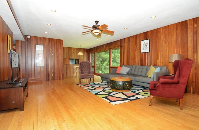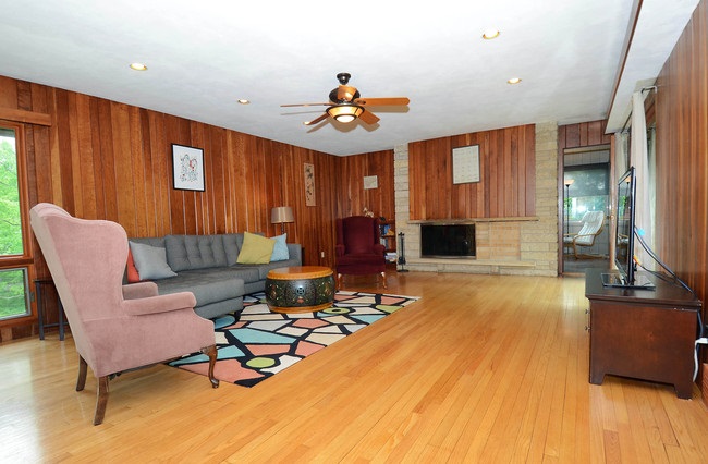 Truly unique find! West Coast ranch in ever popular Orchard Ridge. Wall of windows & huge deck, overlook almost 1/2 acre fenced, mature lot with natural gardens, mature trees and ornamental fencing. Beautifully crafted w/interior sandstone wall, wood burning FP & cherry paneling which highlight the open flow. Featured in Atomic Ranch Magazine. Your own urban oasis! Newer roof, SS appliances, furnace, water heater, softener. Extra wide paver drive & walk-way. Home Wty included.