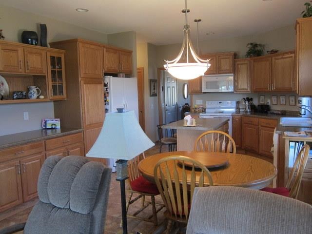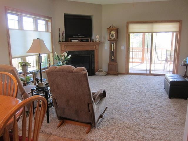 Absolutely like new Prairie Stone 55+ Condo! Very popular plan with split bedrooms, center island in kitchen, large master suite and great room. The screen porch off the main level overlooks a quiet city park. The lower level is partially finished with a 3rd bedroom, family room and 3/4 bath. 9 foot ceilings, main floor laundry and lots of cabinets add to the overall high quality and excellent care this home has seen. Private gazebo and fire pit, for residents only, serves as an excellent gathering spot.