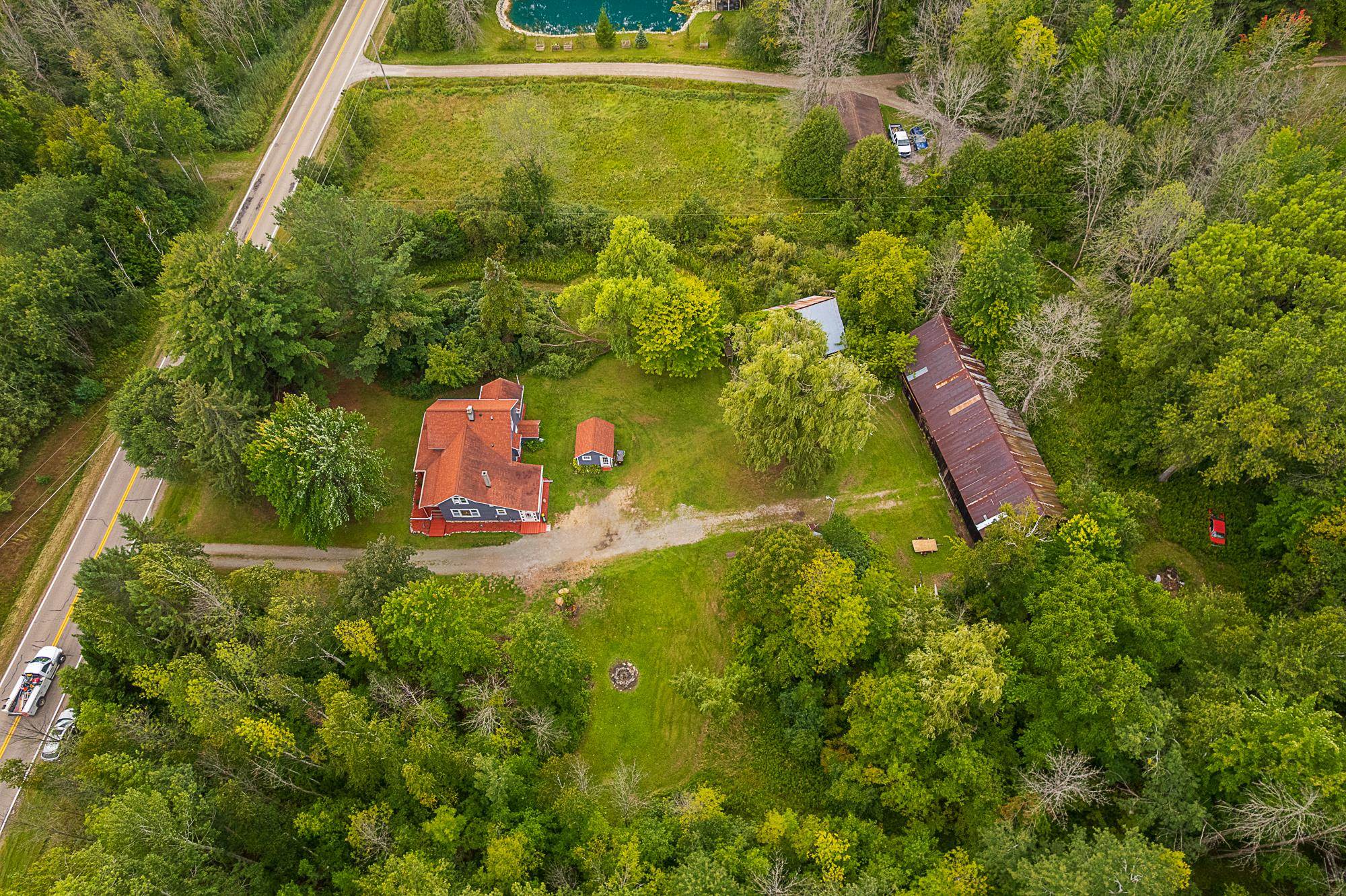 Country living at it's finest just minutes to all the amentities. Wonderfully kept and updated farmhouse near Suamico. Pride of ownership evident throughout with extensive updates. Home sits on 2.75 acres and has a detached garage and 3 additional outbuildings ready to be brought back to life. Walk into the tastefully updated country kitchen, with beaming daylight through the large picture windows. Master suite down the hall along with main level bathroom. Up the stairs you'll find 2 additional large bedrooms and another full bathroom. Hardwood floors throughout the entire first level. Outside there are 3 additional buildings just waiting for the perfect use. Lot is symmetrically shaped with quick access to the highway! Buyer to verify upstairs dimensions.