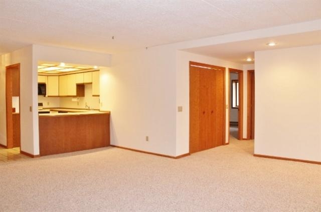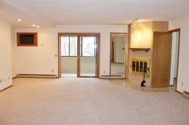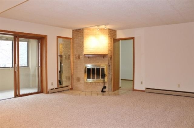 Ready for Occupancy!! Stunning move in ready 3rd floor 1445 sq foot 2 Bedroom, 2 Bath with HUGE walk in closets, BRAND NEW neutral carpet, and recent interior paint. Bonus storage or office area off the living room hidden behind mirrored door. Attractive wood burning fireplace. Relax in quaint 3 season sun filled porch or the corner jetted tub in master bath. Parking fee is $25 a month underground space #6 not actually heated but stays comfortable. Unit heat cost is added to condo fee during winter months.